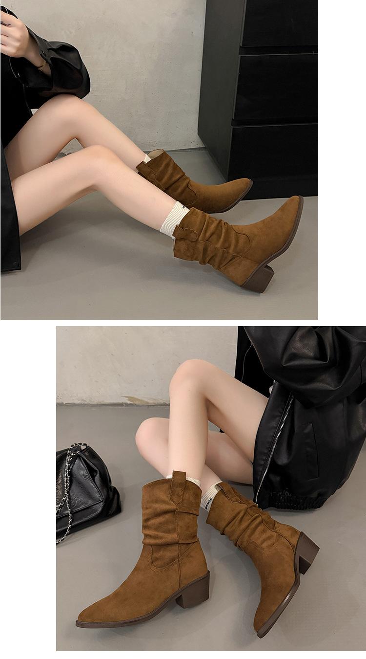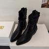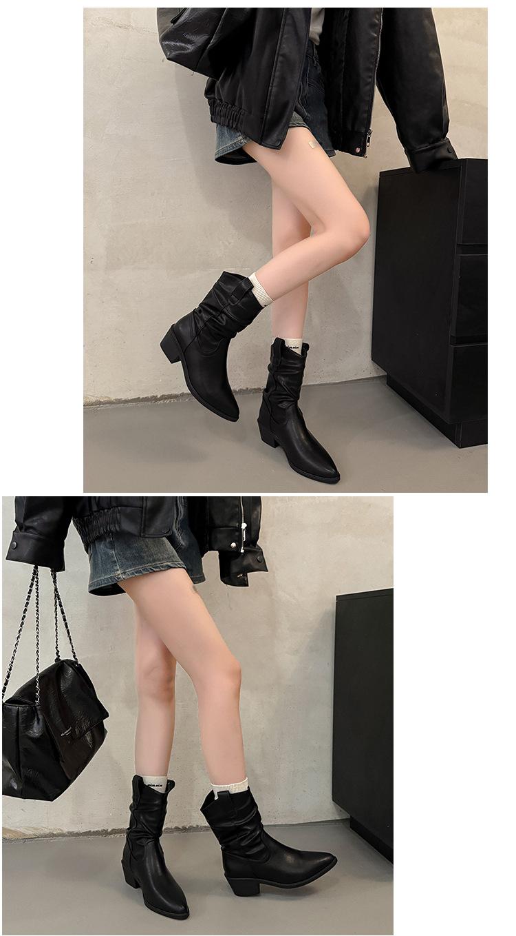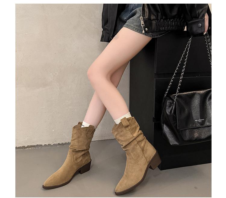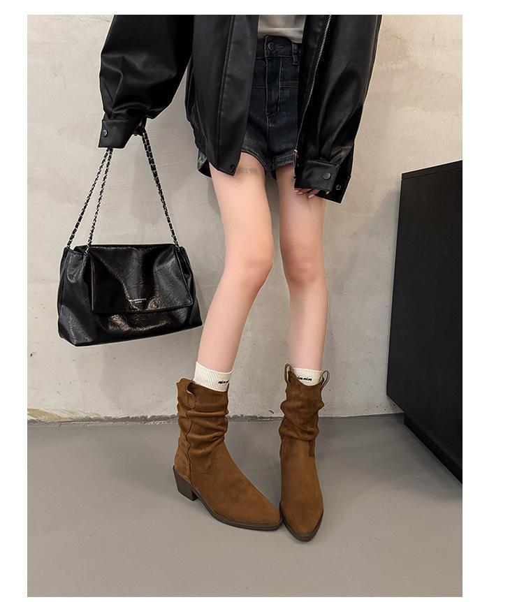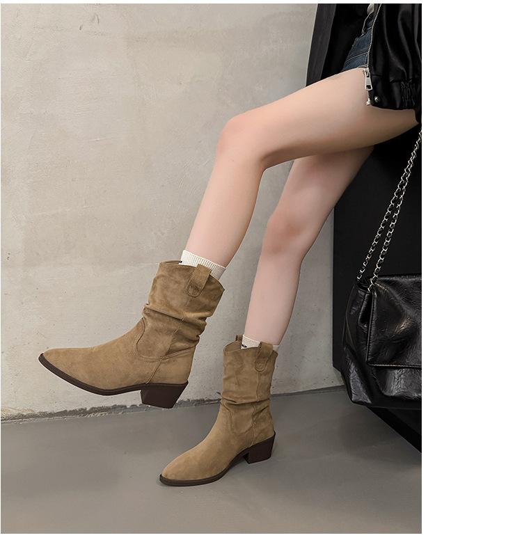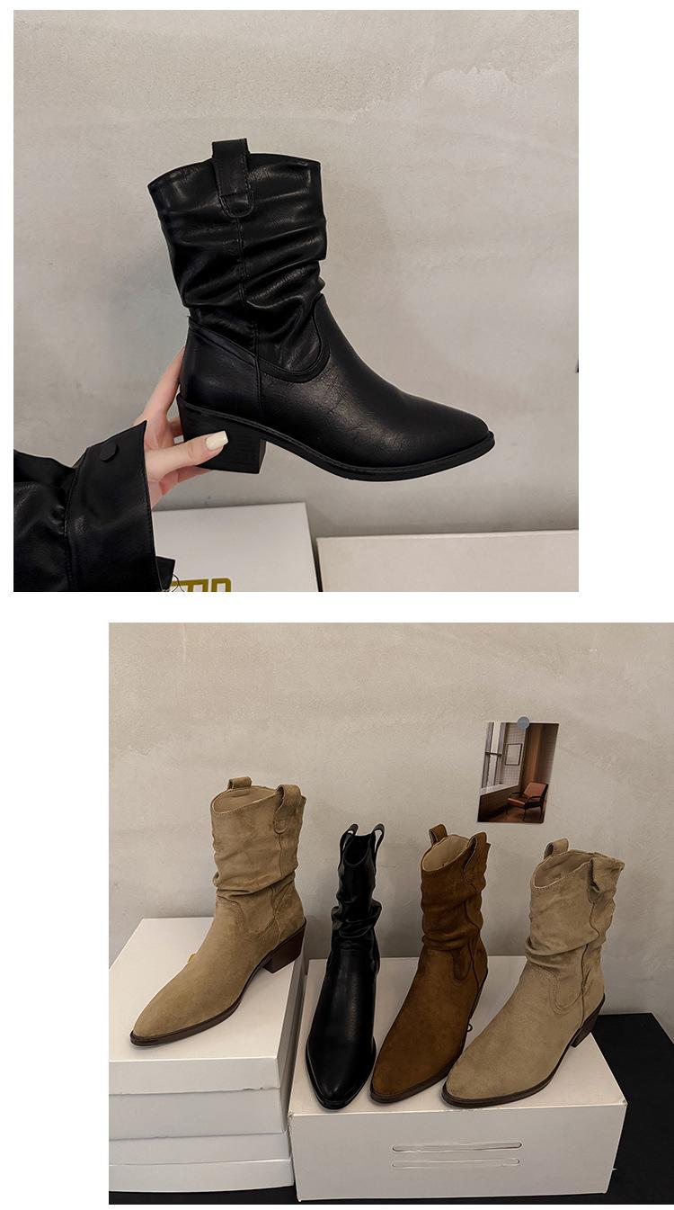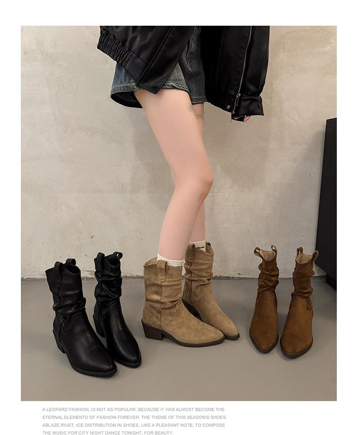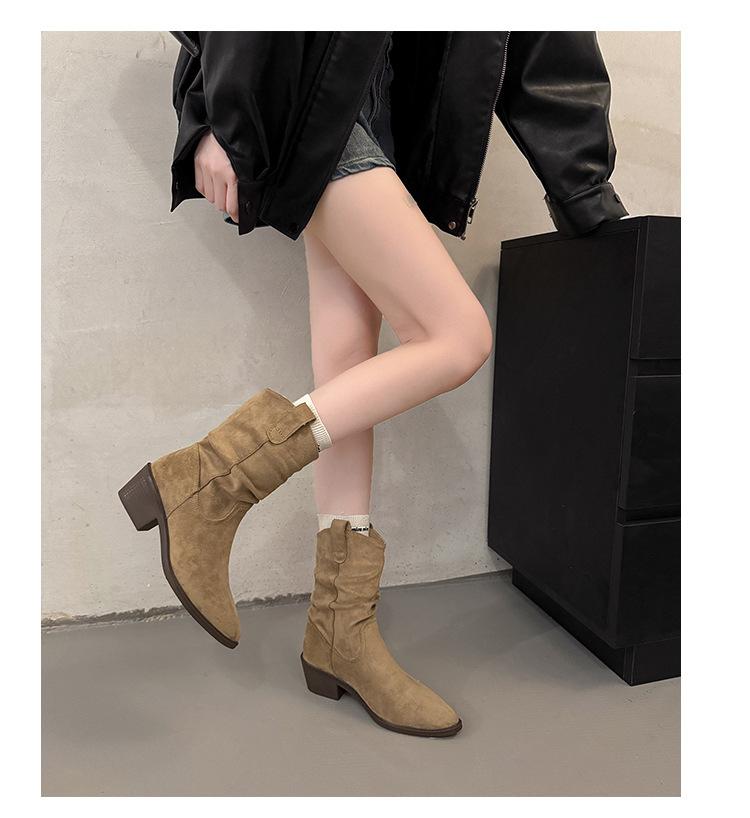 Otoño 2025 Nuevas Botas de Caballero Retro Media Caña Botas Apiladas Western Botas Skinny Mujer Tacón Chunky Botines Martin Botines