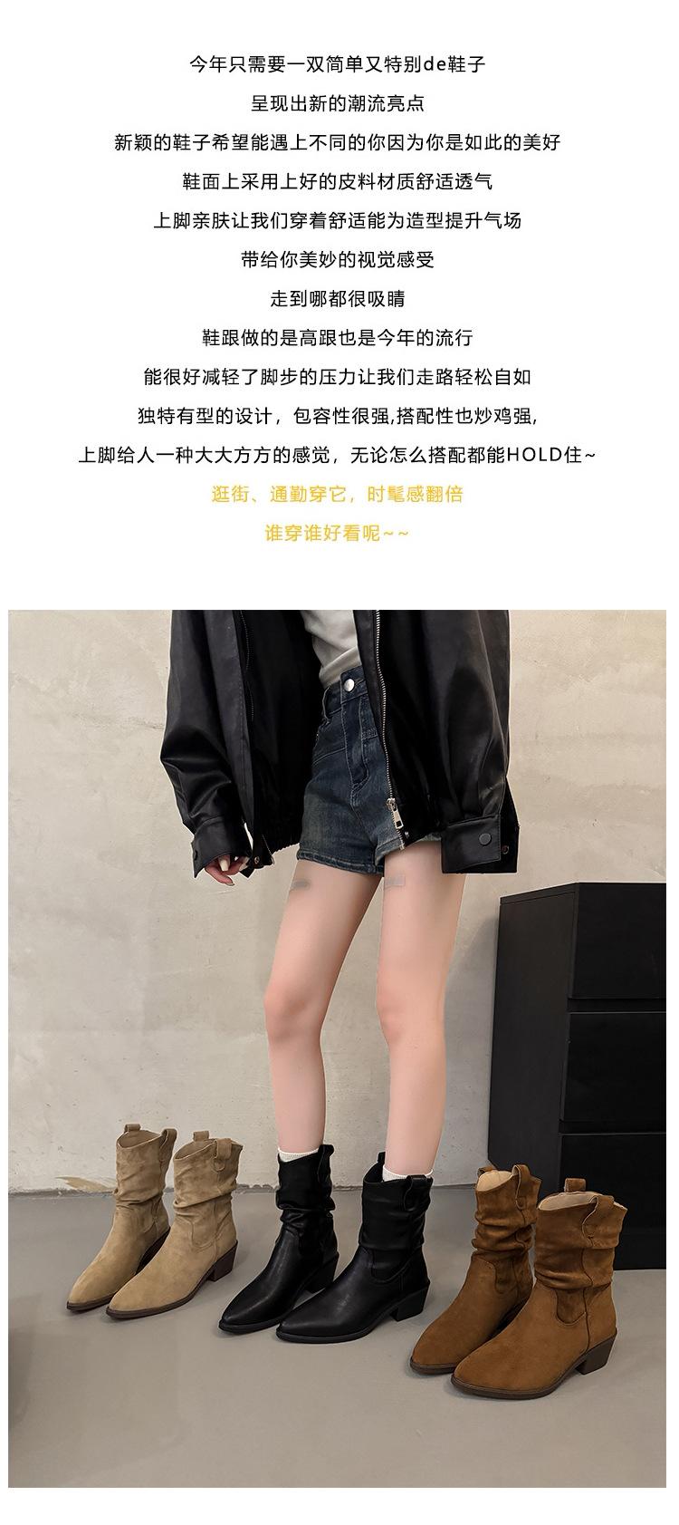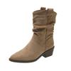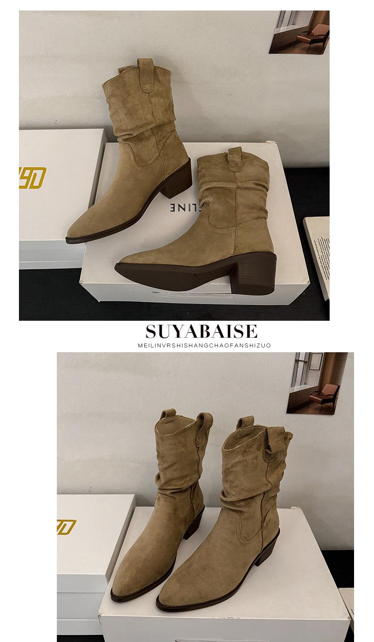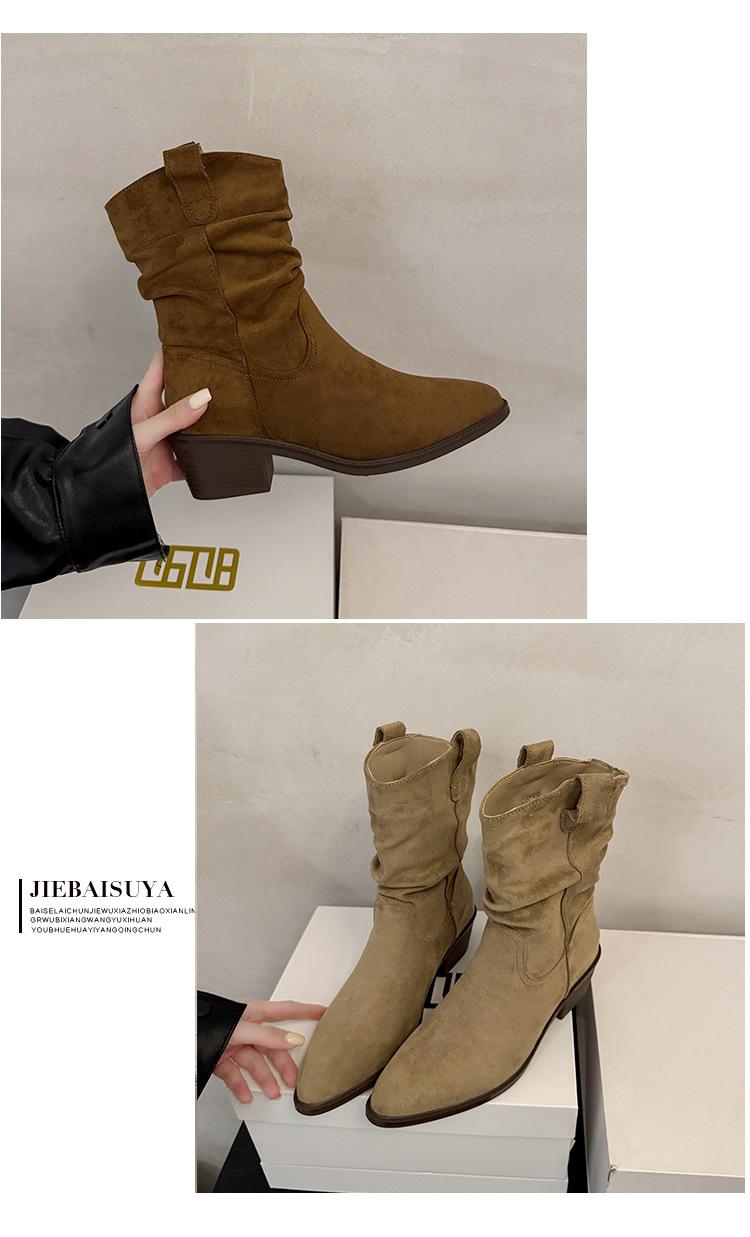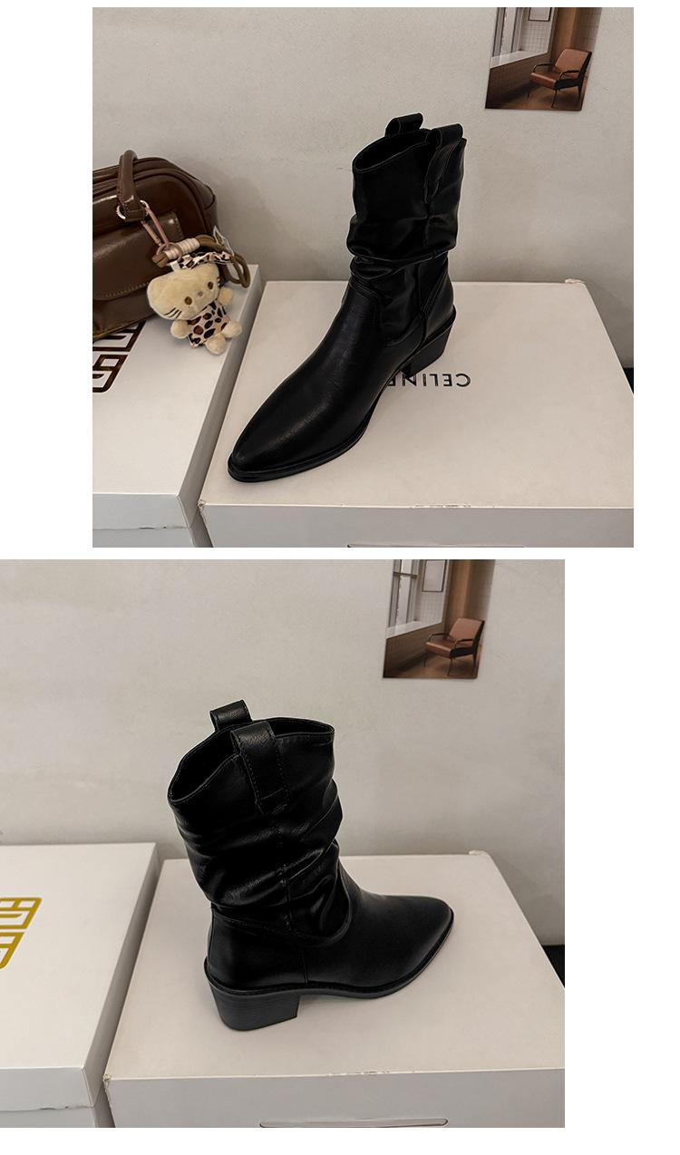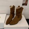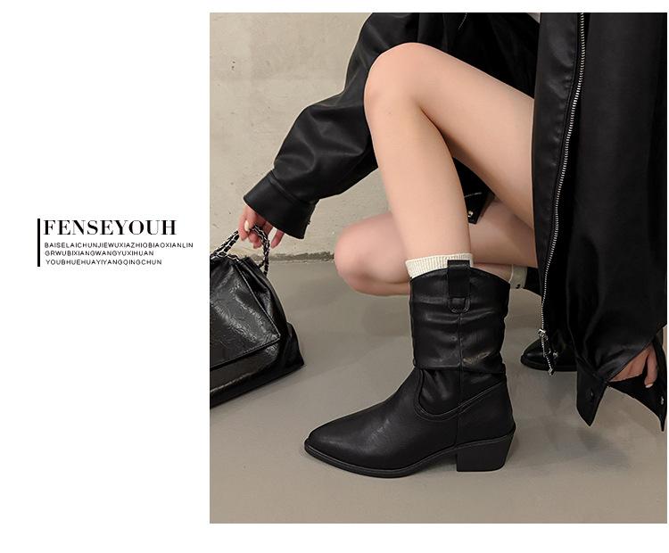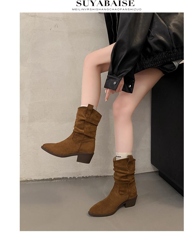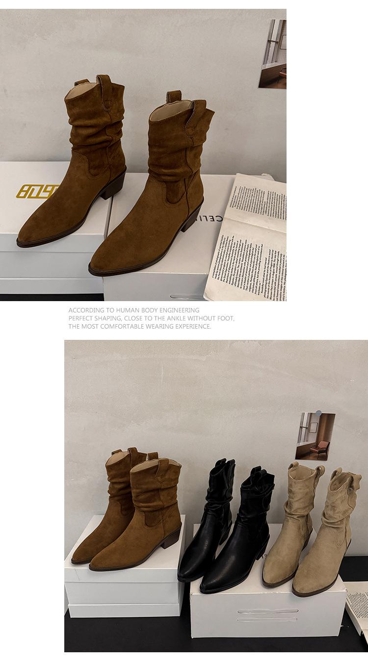 Otoño 2025 Nuevas Botas de Caballero Retro Media Caña Botas Apiladas Western Botas Skinny Mujer Tacón Chunky Botines Martin Botines