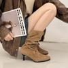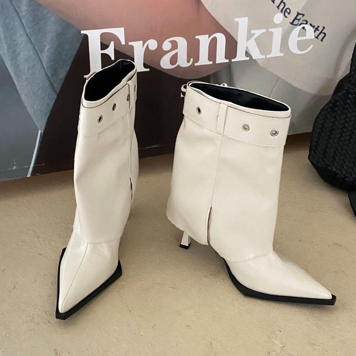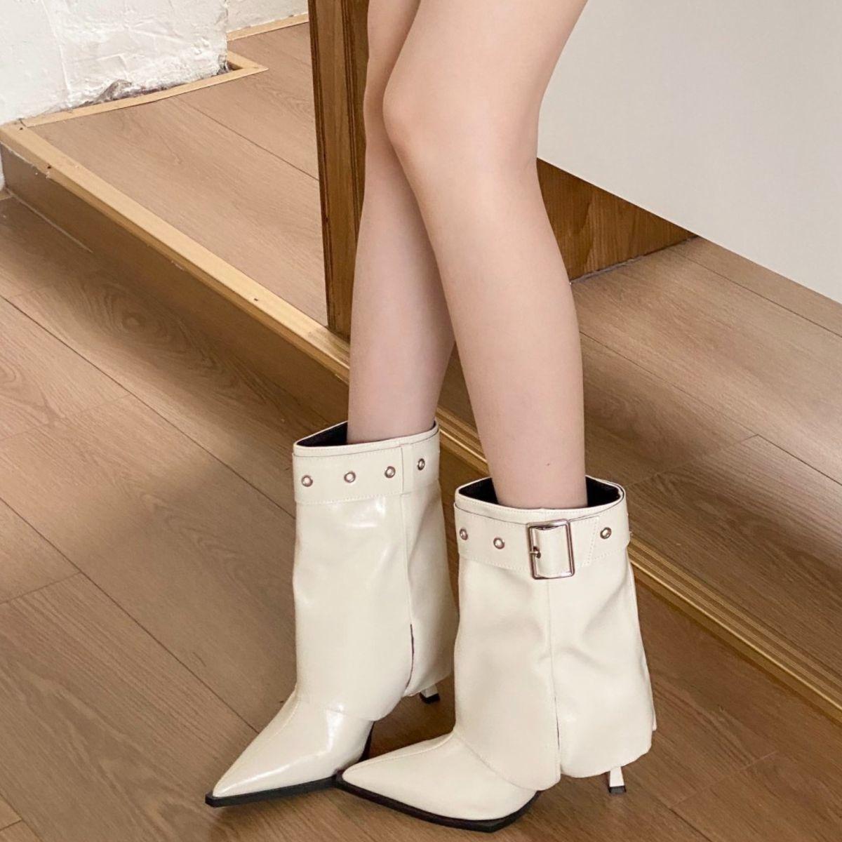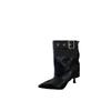 2025 nuevas botas pantalón de tacón de aguja con punta afilada y hebilla metálica para mujer otoño invierno botas de tacón alto caña corta botas ajustadas para dama