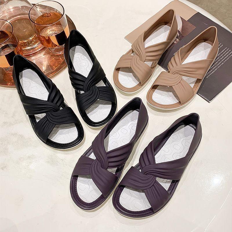 Sandalias de Mujer 2025 Primavera/Verano Nuevo Estilo Caliente Suela Plana de Goma Antideslizante Talón Cerrado Sandalias de Playa Ropa Exterior para Mujer