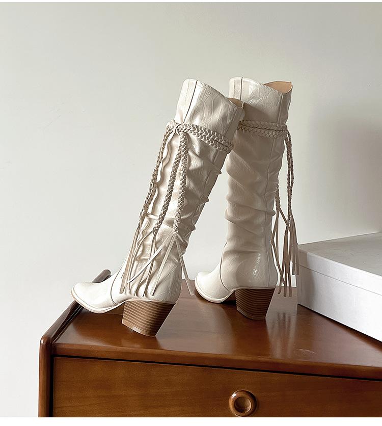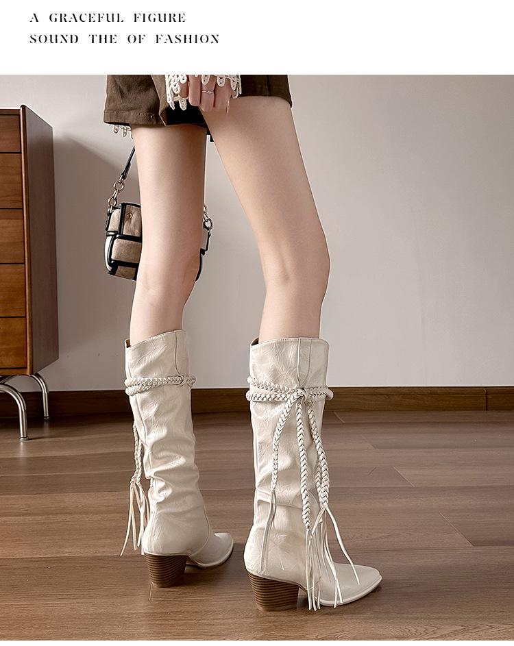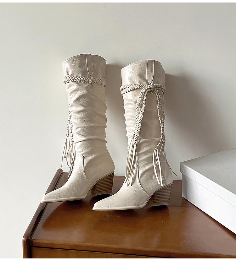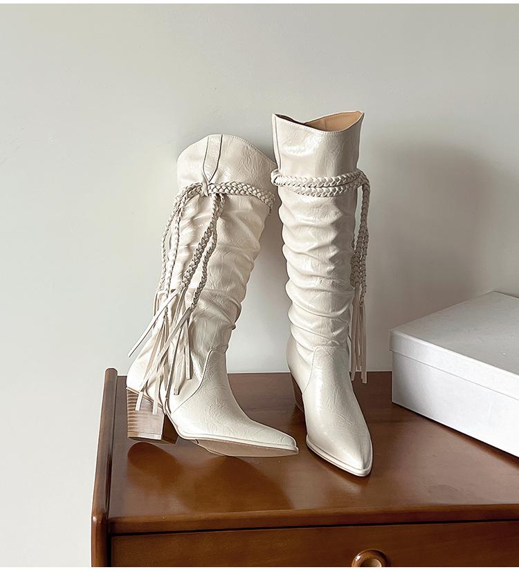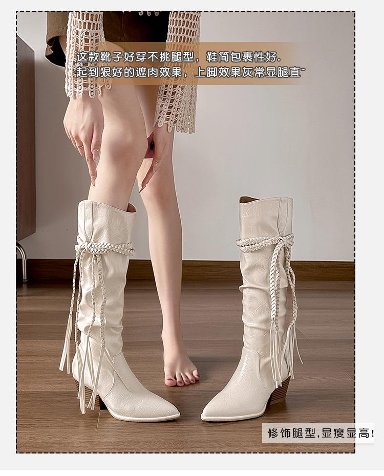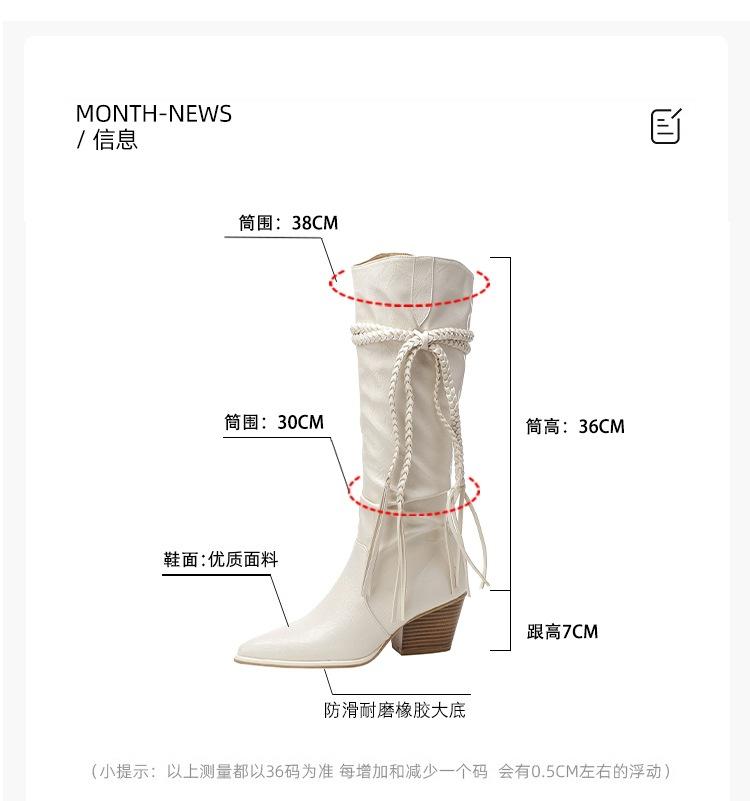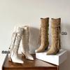 Moda Blanco Retro Punta Puntiaguda Tacón Alto Grueso Botas Cowboy Western Mujer 2025 Nuevo Verano Adelgazantes Botas de Caballero Botas Largas