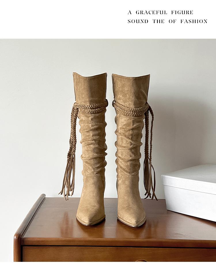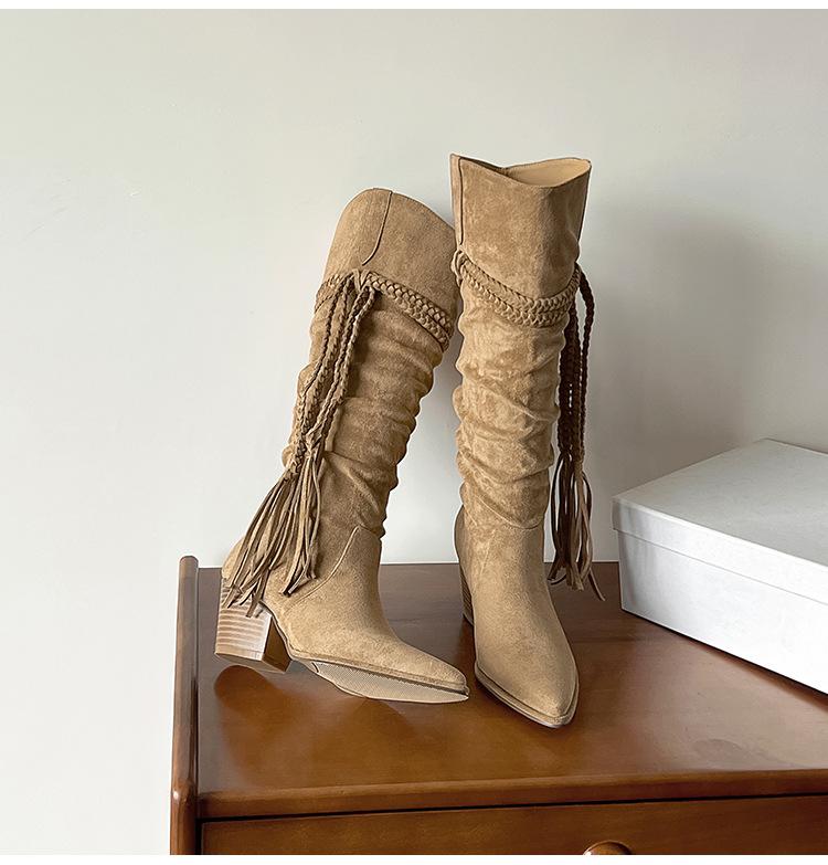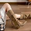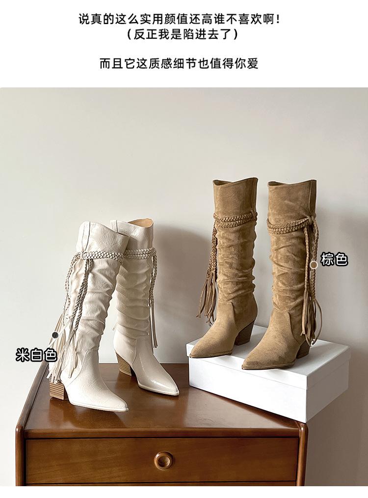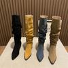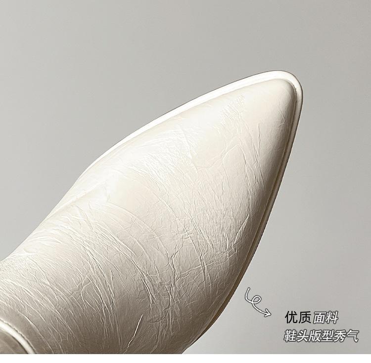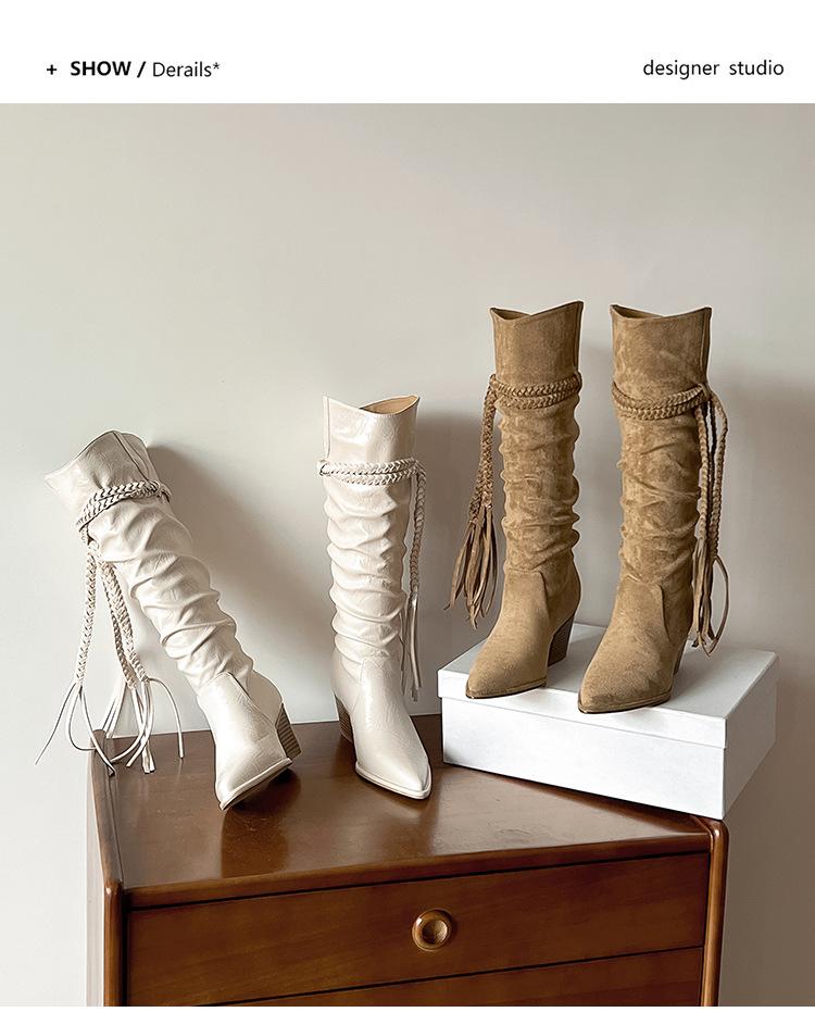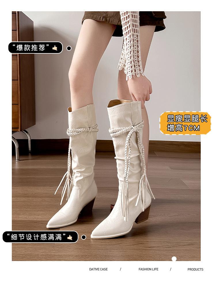 Moda Blanco Retro Punta Puntiaguda Tacón Alto Grueso Botas Cowboy Western Mujer 2025 Nuevo Verano Adelgazantes Botas de Caballero Botas Largas