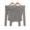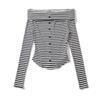 Camiseta de Manga Larga con Cuello Vuelto a Rayas con Bloque de Color Estilo Otoño 2025 para Mujer Estilo Coreano Temperamento Chica Picante Top Adelgazante