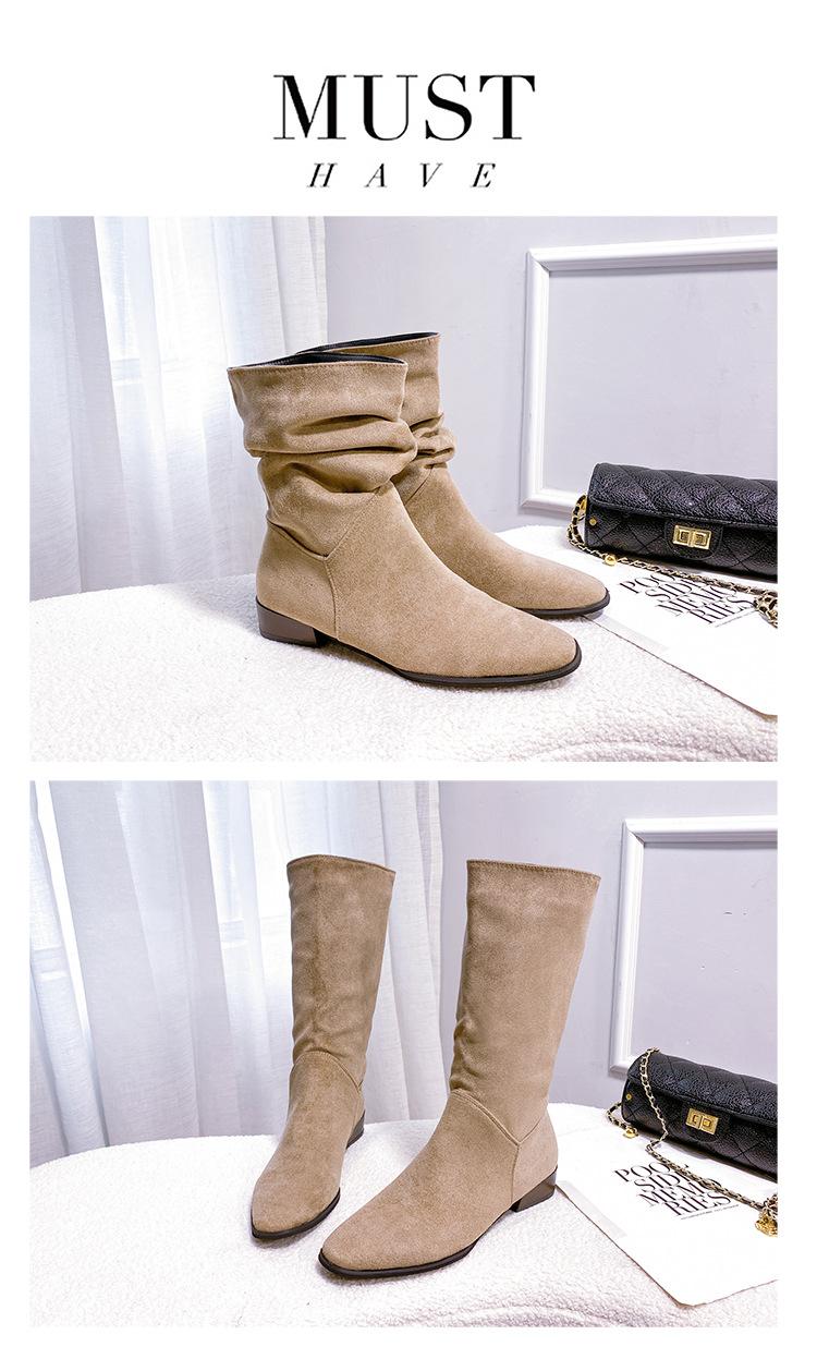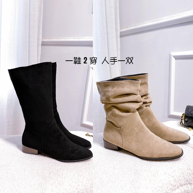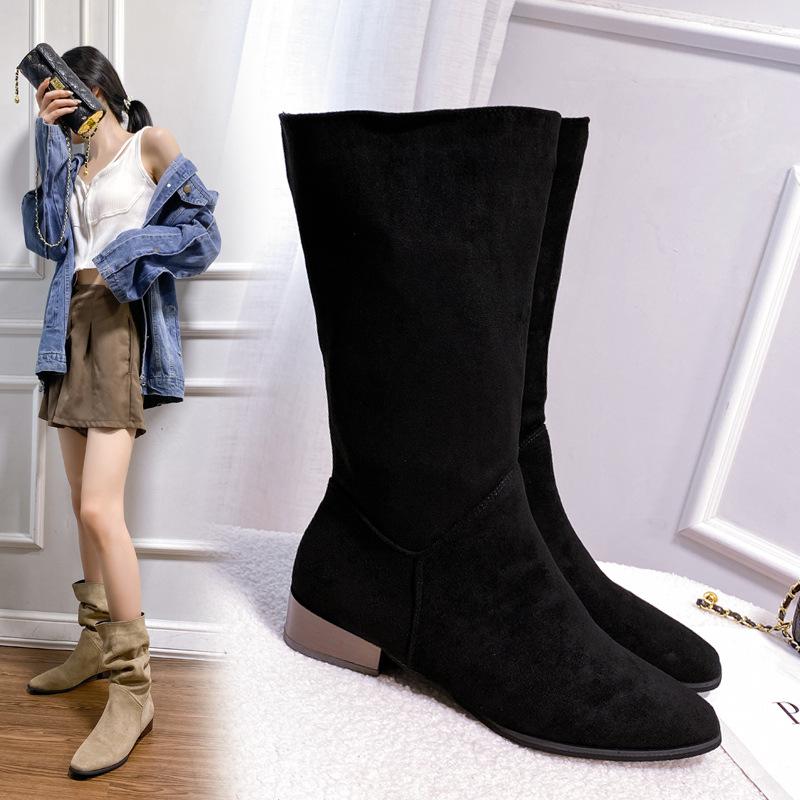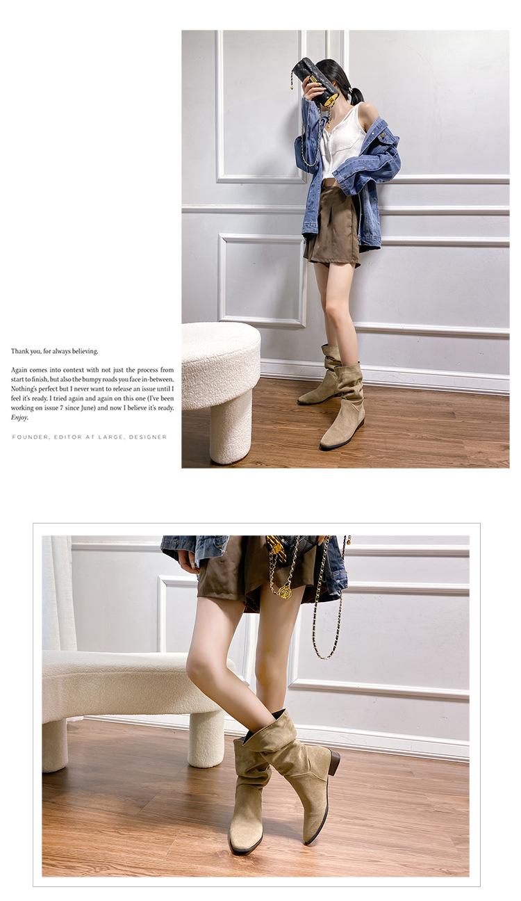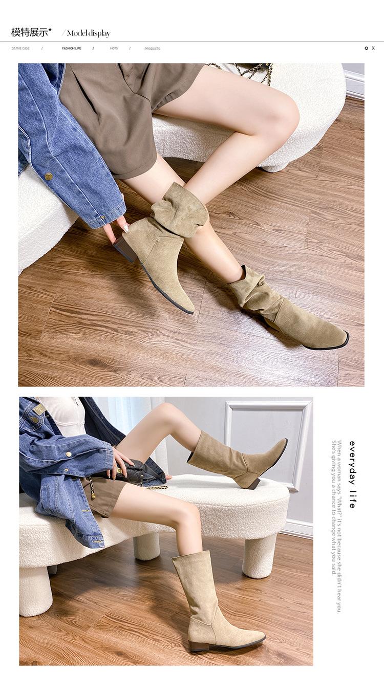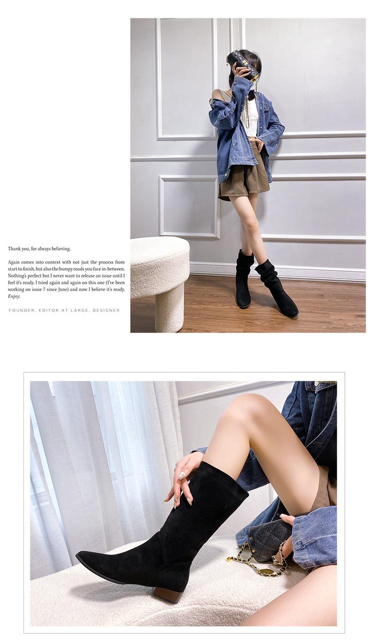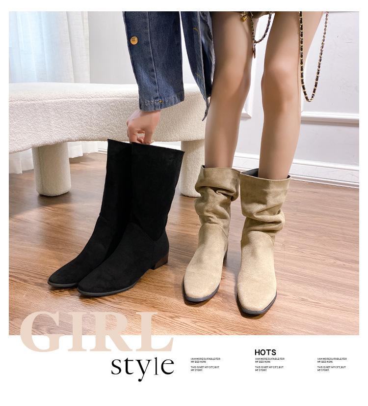 Temperamento Adelgazante Punta Cuadrada Botas de Tacón Grueso Mujer 2025 Botas de Moda Nueva Estilo Coreano Moda Ante Botas Holgadas