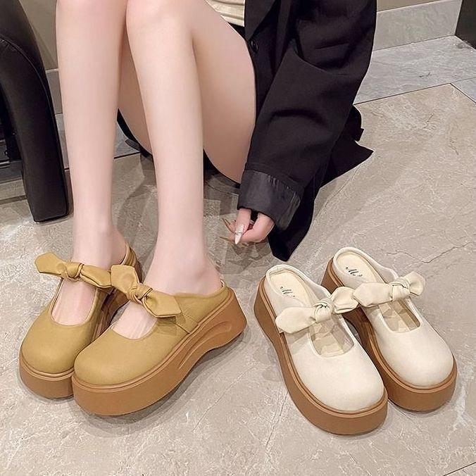 Pantuflas de Muffin con Punta Cerrada para Aumentar la Altura a la Moda para Mujer 2025 Verano Nuevo Versátil Nicho para Ir al Trabajo Pantuflas de Un Paso para Mujer