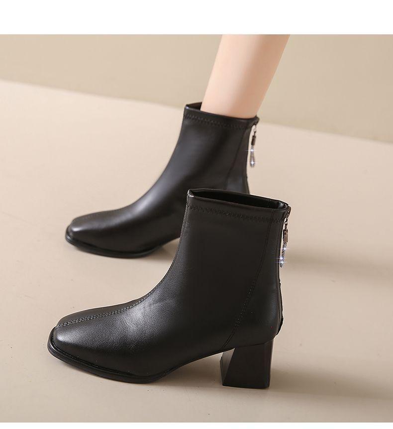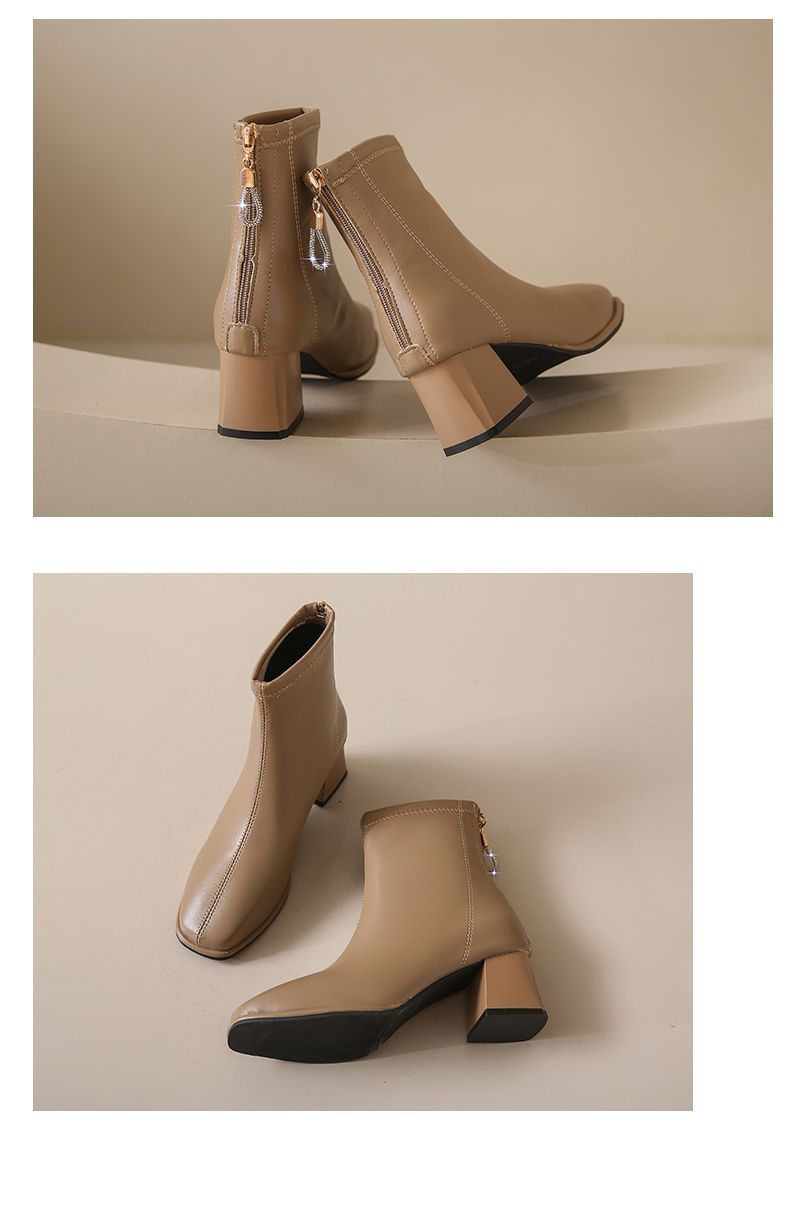 Botines de Tobillo Versátiles y Elegantes de Nicho para Mujer Punta Cuadrada Cierre Trasero Tacón Alto Tacón Grueso Botines de Tobillo para Mujer 2025 Otoño/Invierno Nuevo