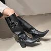 2025 Otoño Nuevo Talla Pequeña Tacón Alto Botas Largas Mujer Suela Gruesa Tacón Ancho Color Sólido Altura Hasta el Muslo Aumento de Altura Botas Largas Botas de Caballero