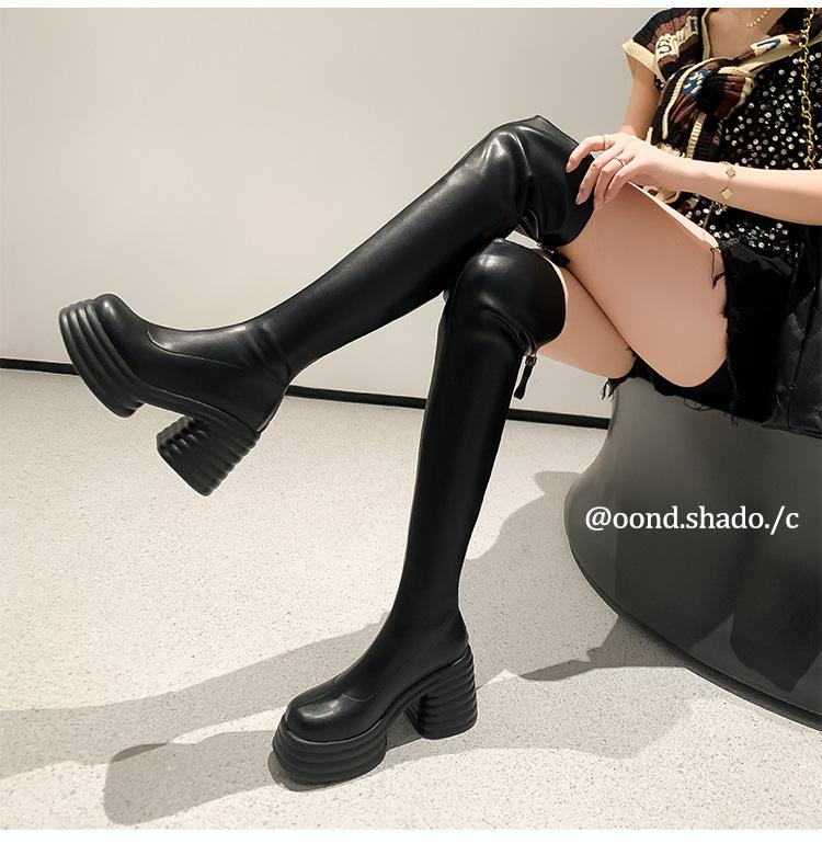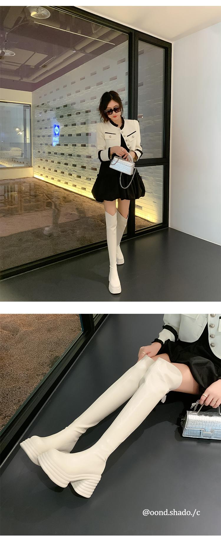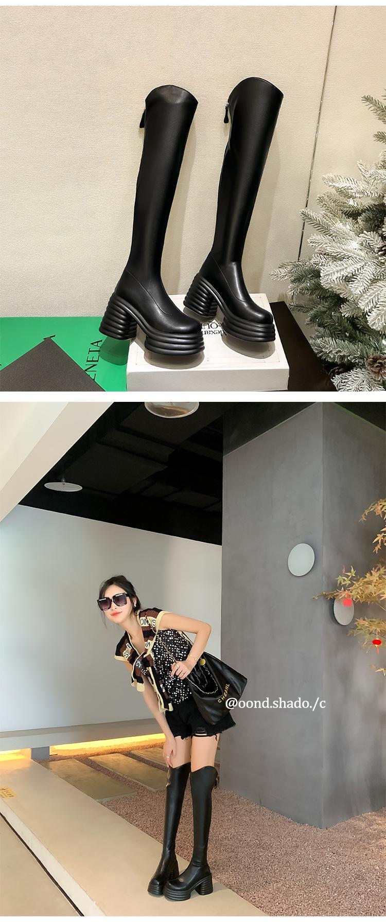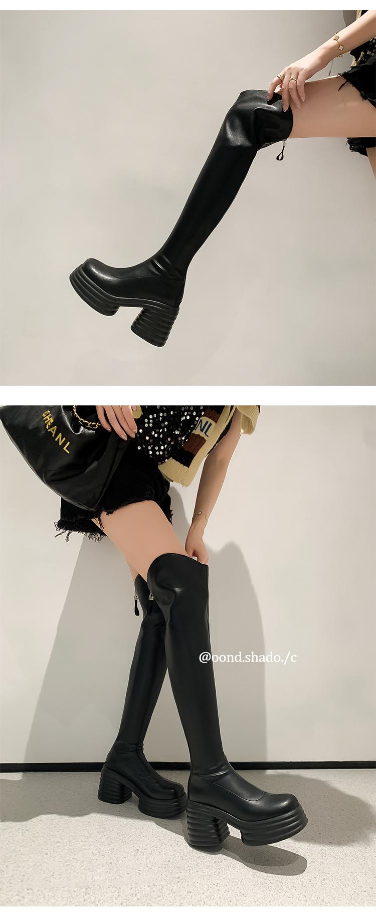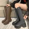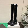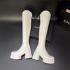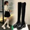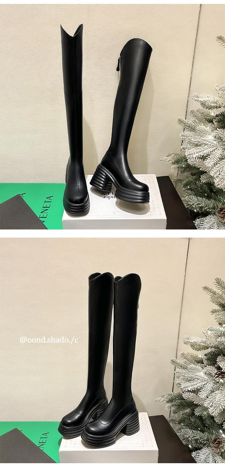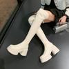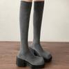 Moda de Estilo Coreano Botas de Caballero Simples con Cremallera Trasera 2025 Otoño e Invierno Nuevas Botas por Encima de la Rodilla con Suela Gruesa y Tacón Grueso para Aumentar la Altura