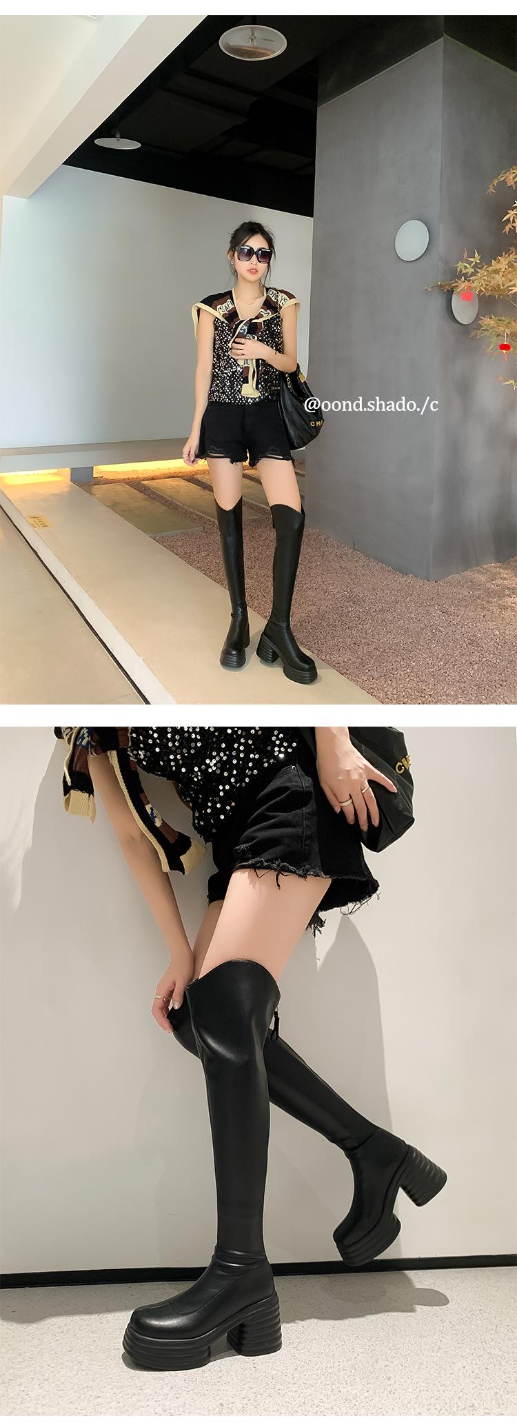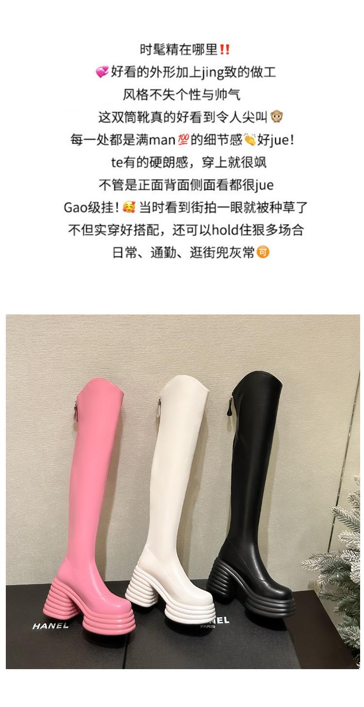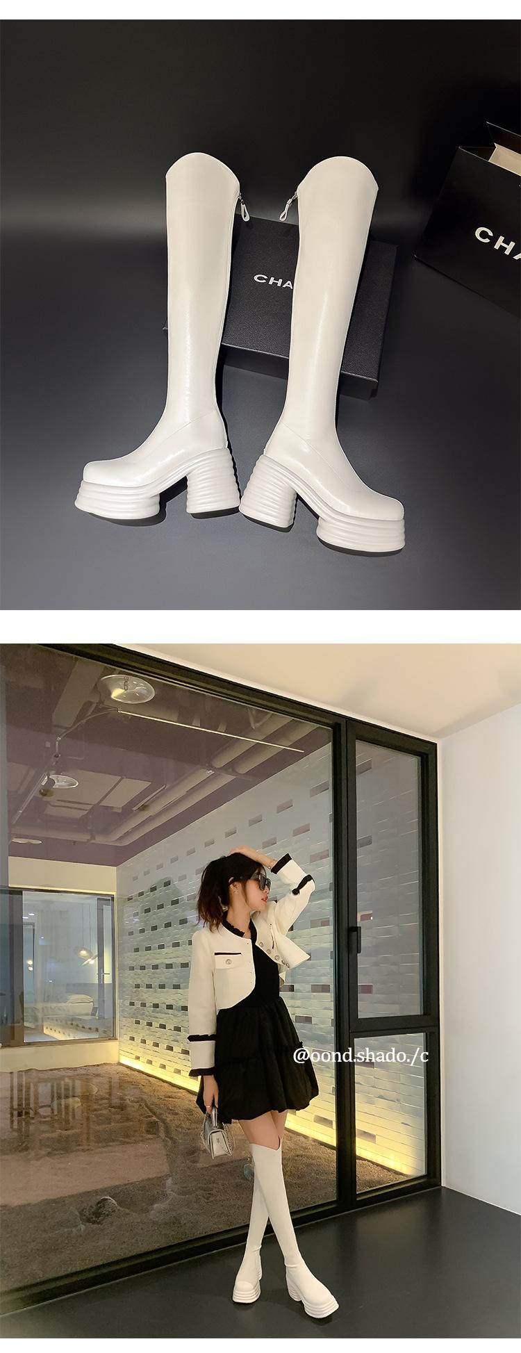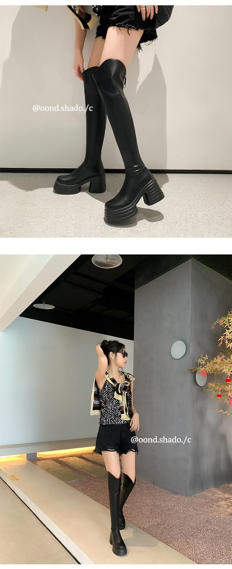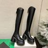 Moda de Estilo Coreano Botas de Caballero Simples con Cremallera Trasera 2025 Otoño e Invierno Nuevas Botas por Encima de la Rodilla con Suela Gruesa y Tacón Grueso para Aumentar la Altura