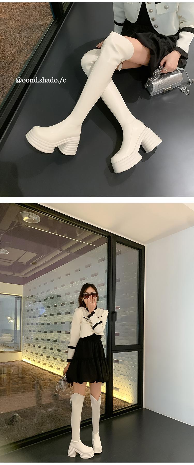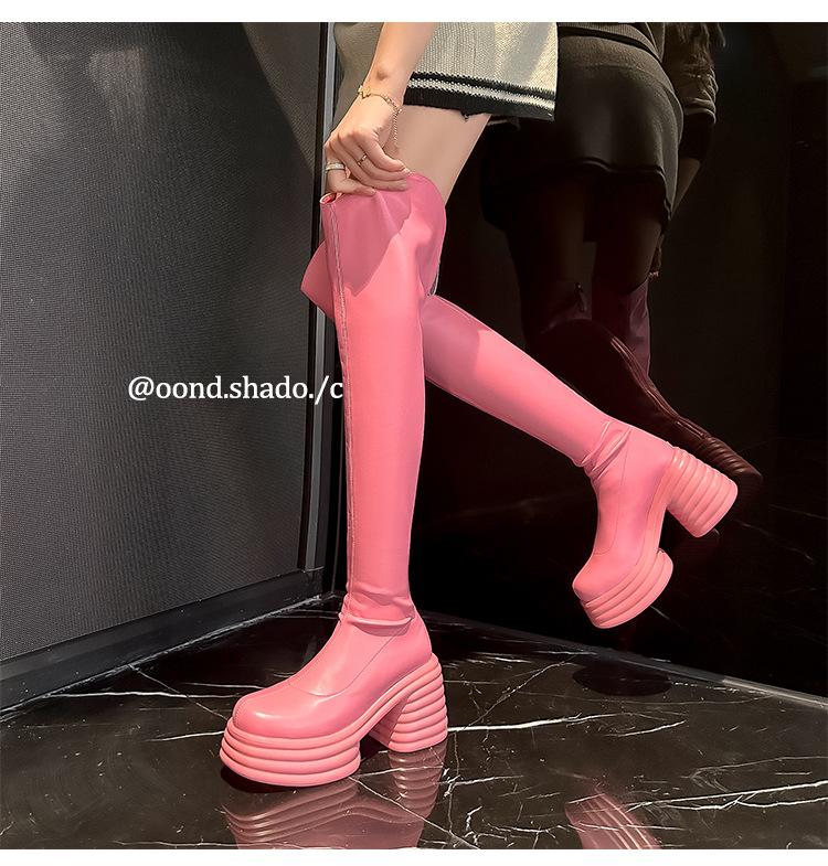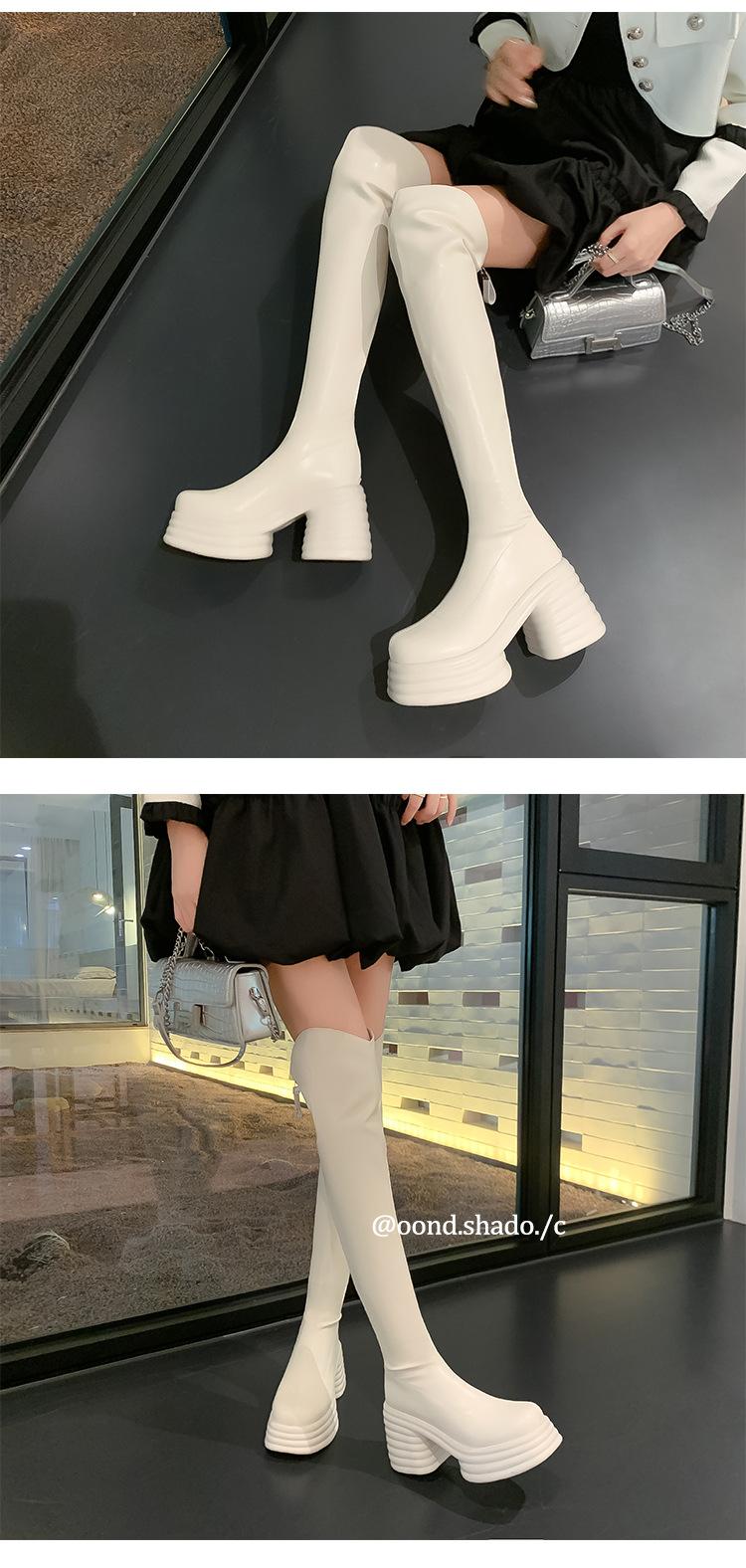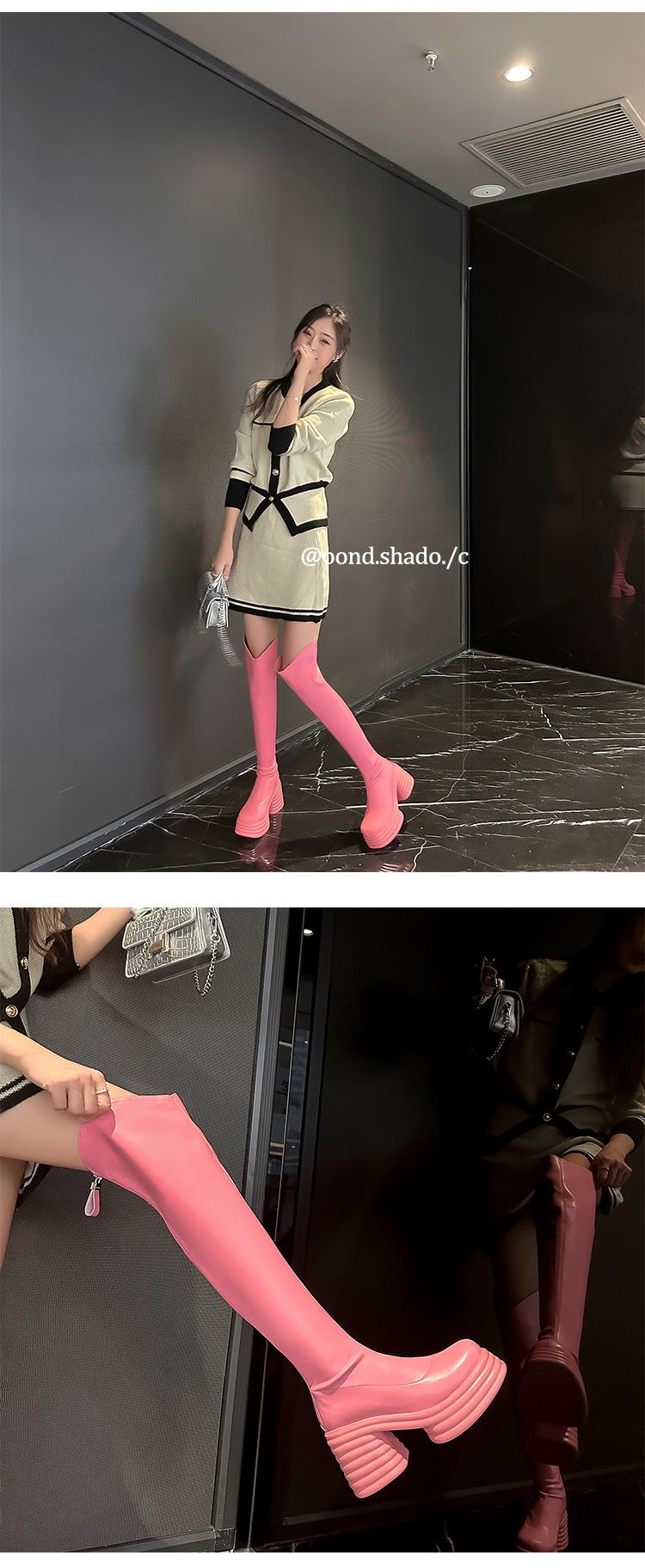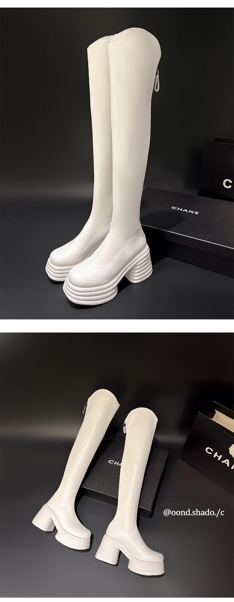 Moda de Estilo Coreano Botas de Caballero Simples con Cremallera Trasera 2025 Otoño e Invierno Nuevas Botas por Encima de la Rodilla con Suela Gruesa y Tacón Grueso para Aumentar la Altura