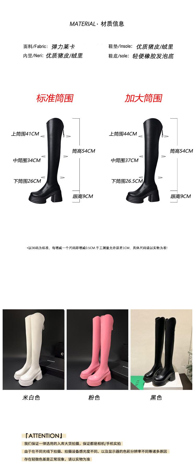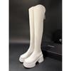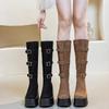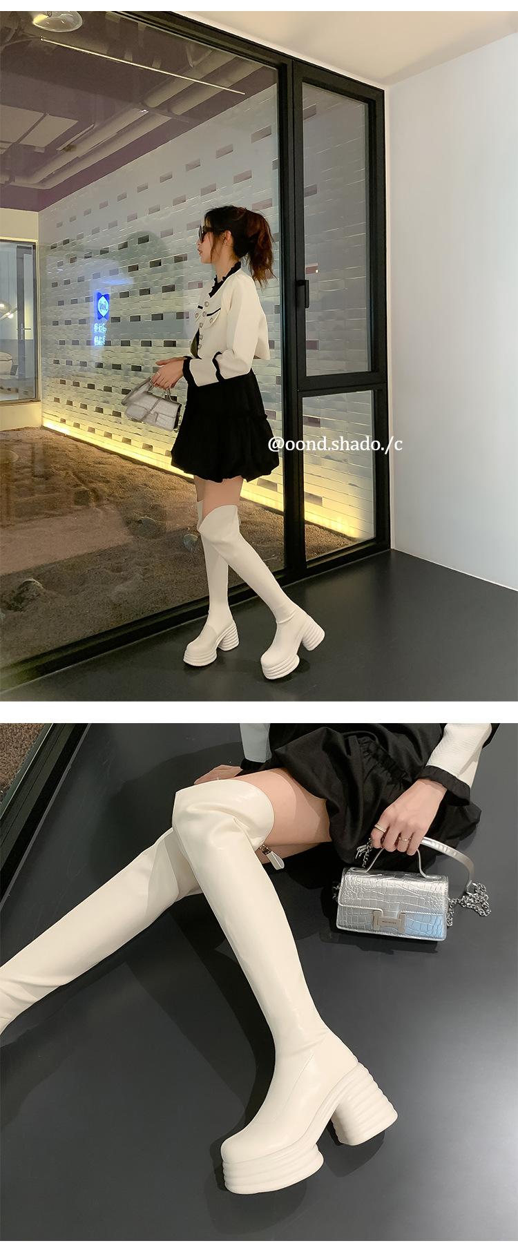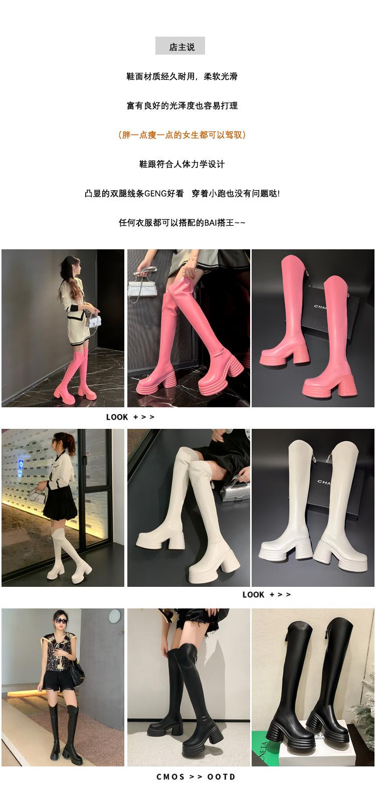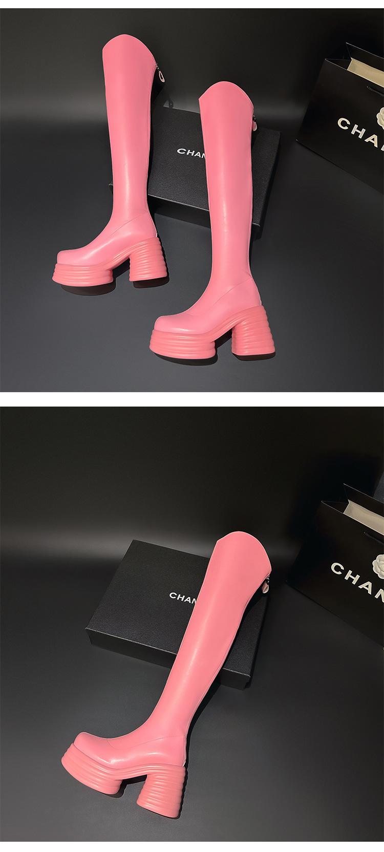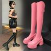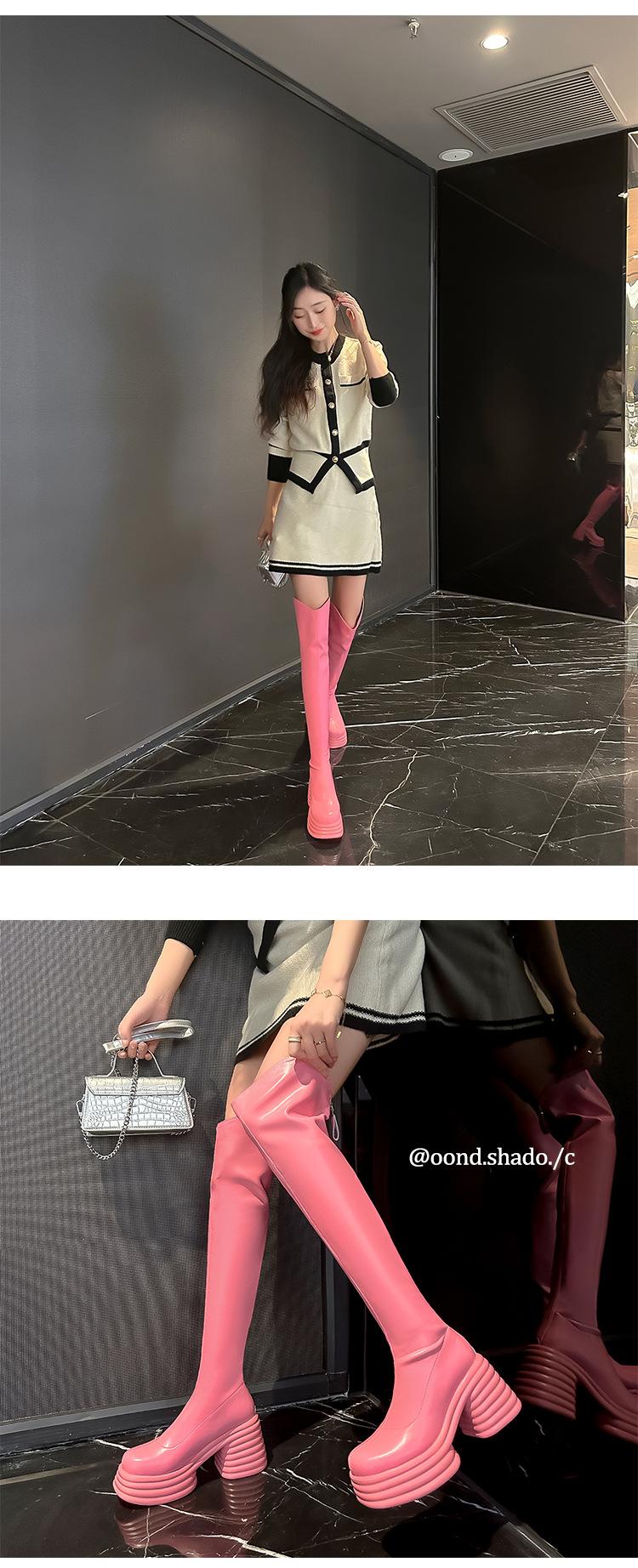 Moda de Estilo Coreano Botas de Caballero Simples con Cremallera Trasera 2025 Otoño e Invierno Nuevas Botas por Encima de la Rodilla con Suela Gruesa y Tacón Grueso para Aumentar la Altura