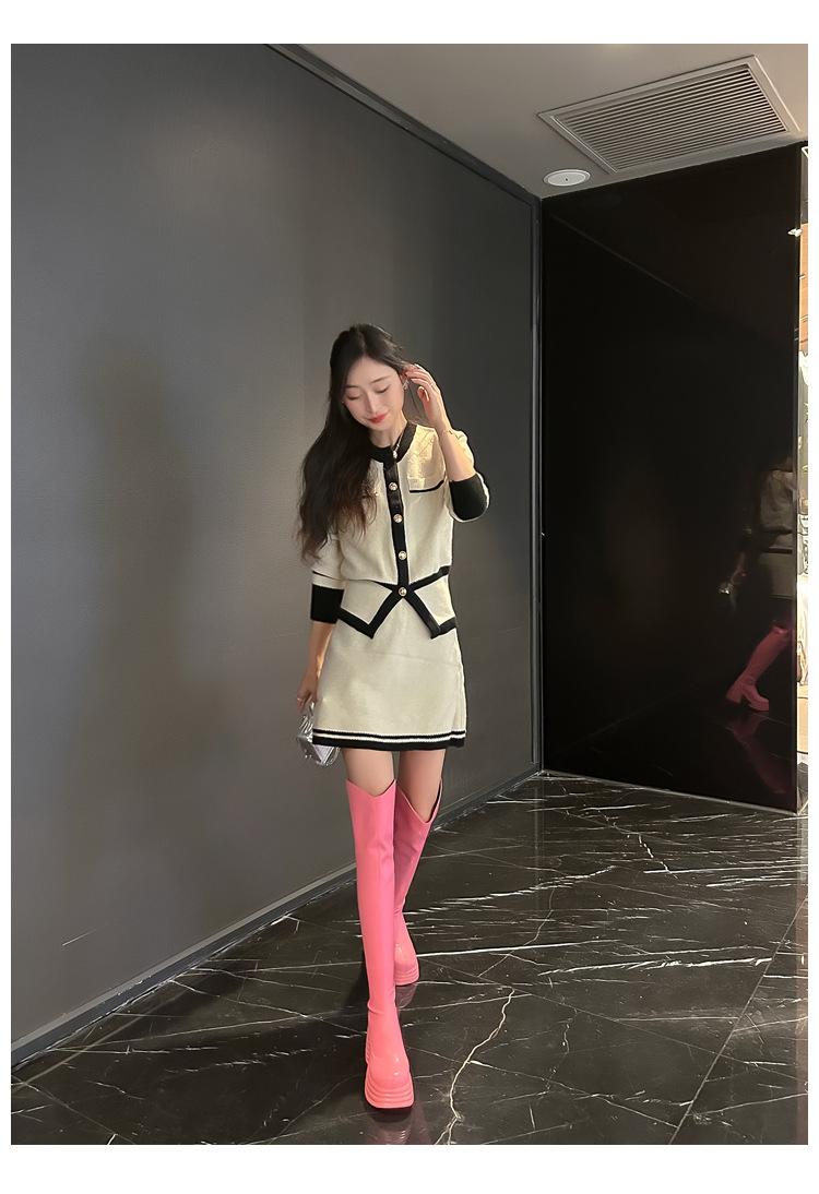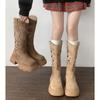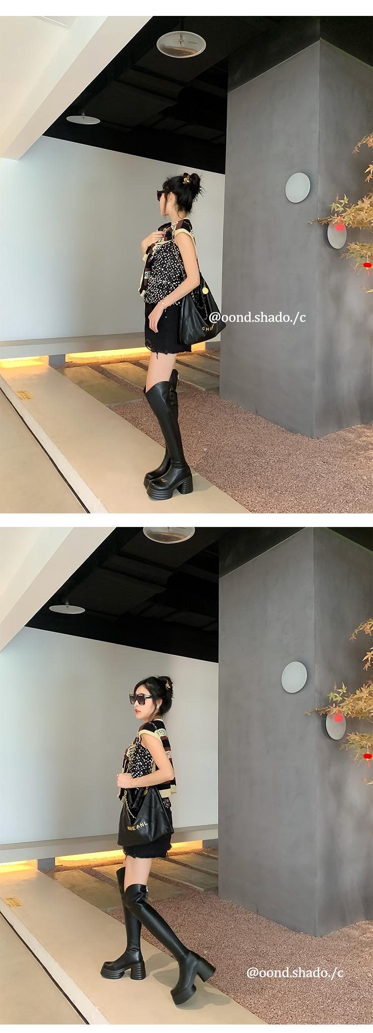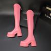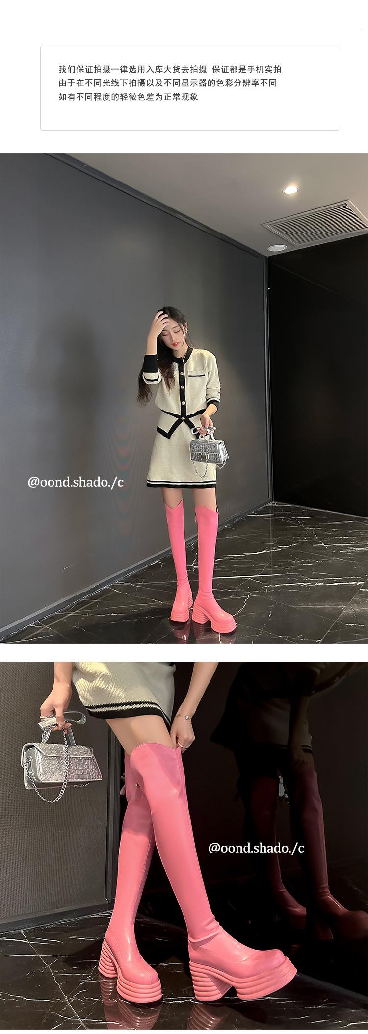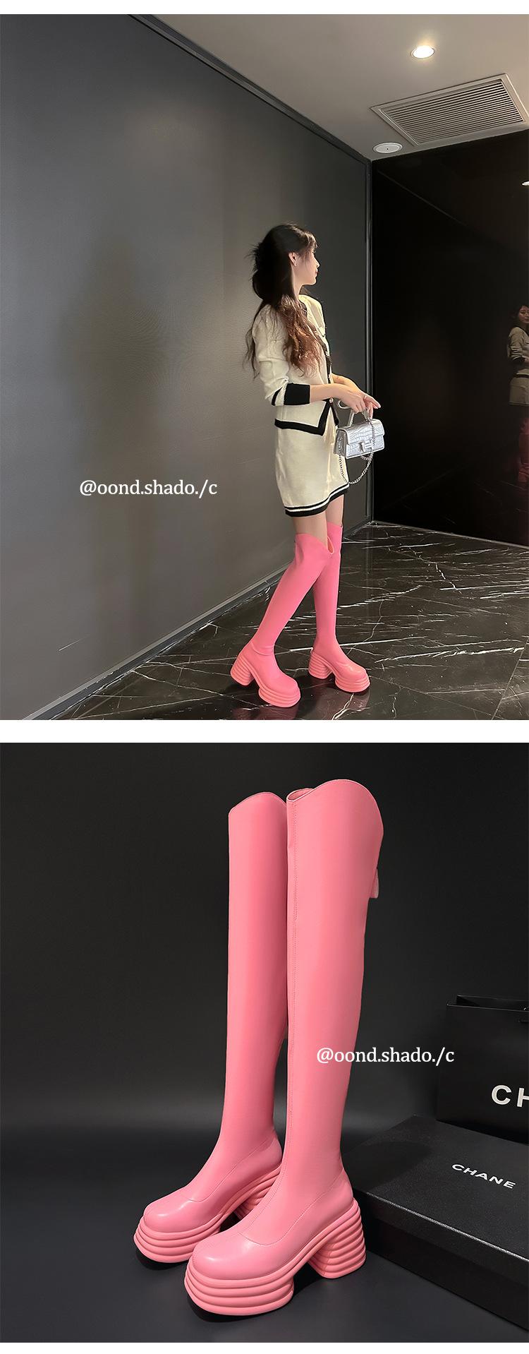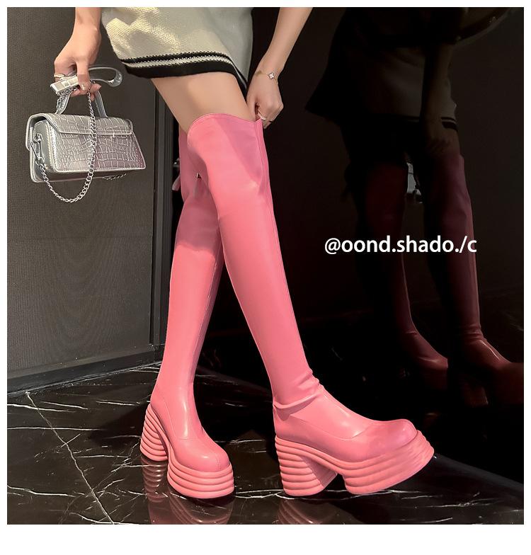 Moda de Estilo Coreano Botas de Caballero Simples con Cremallera Trasera 2025 Otoño e Invierno Nuevas Botas por Encima de la Rodilla con Suela Gruesa y Tacón Grueso para Aumentar la Altura