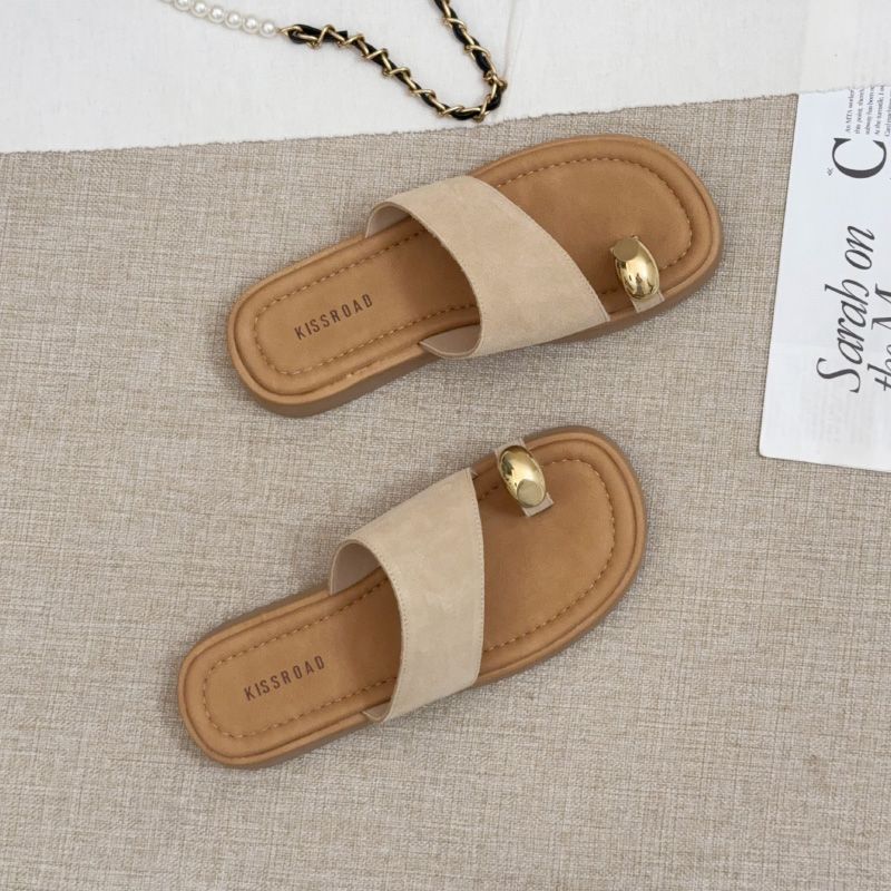 Chanclas francesas de dedo para mujer ropa exterior 2025 verano nuevo versátil plano zapatos de playa moda combinar falda zapatillas medias