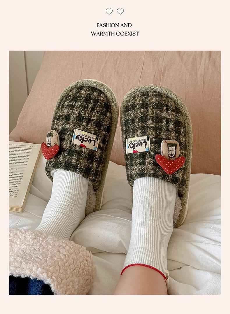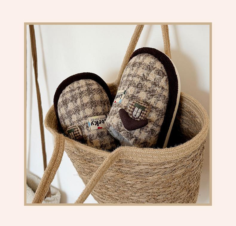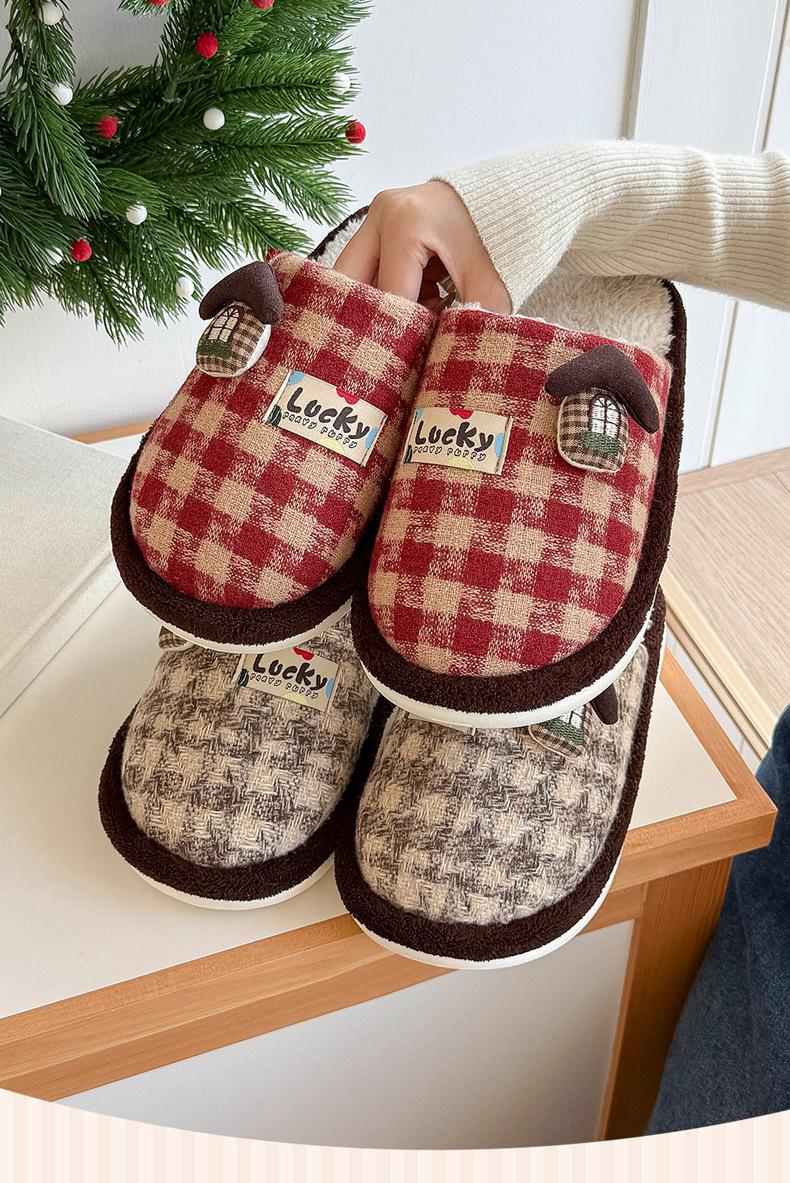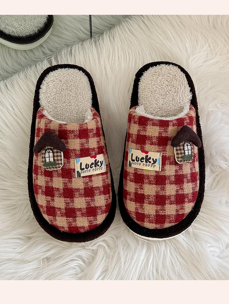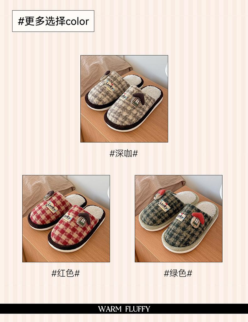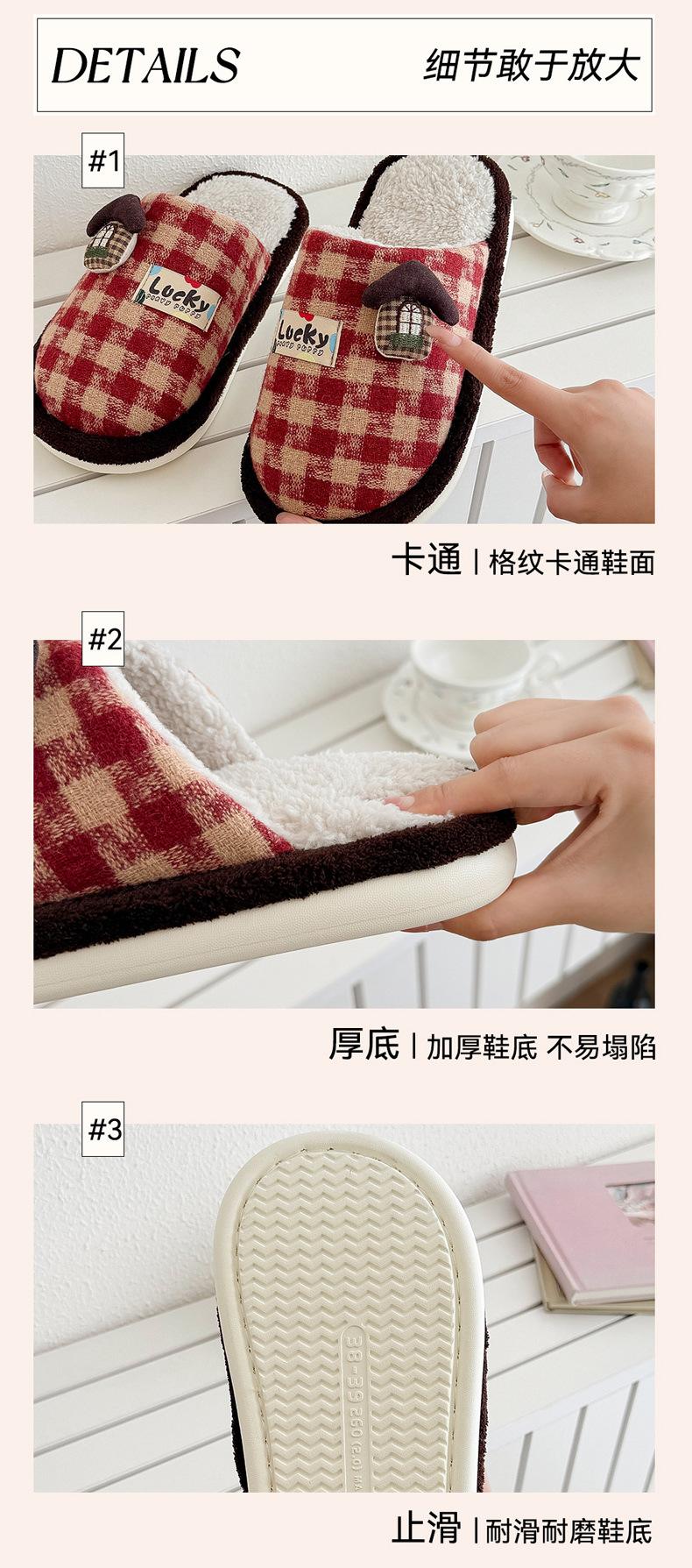 Pantuflas de Algodón de Dibujos Animados para el Hogar para Mujer Invierno Lindas a Cuadros Casa Felpa Cálidas para Hombre Interior Hogar Pantuflas de Algodón para Hombre