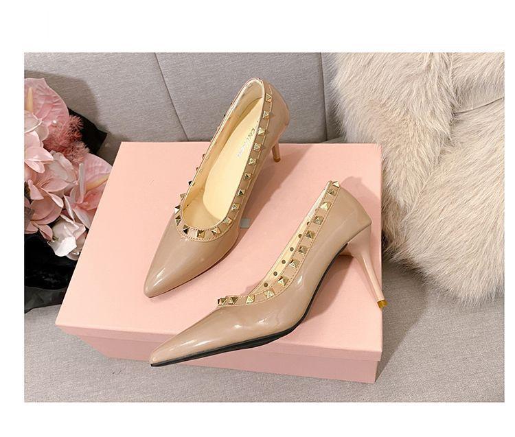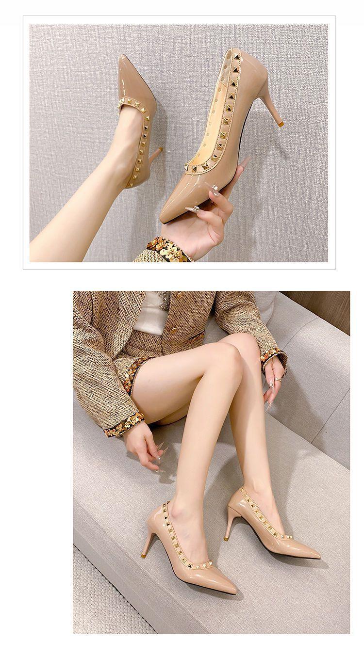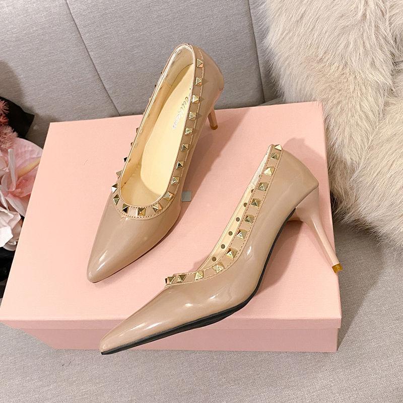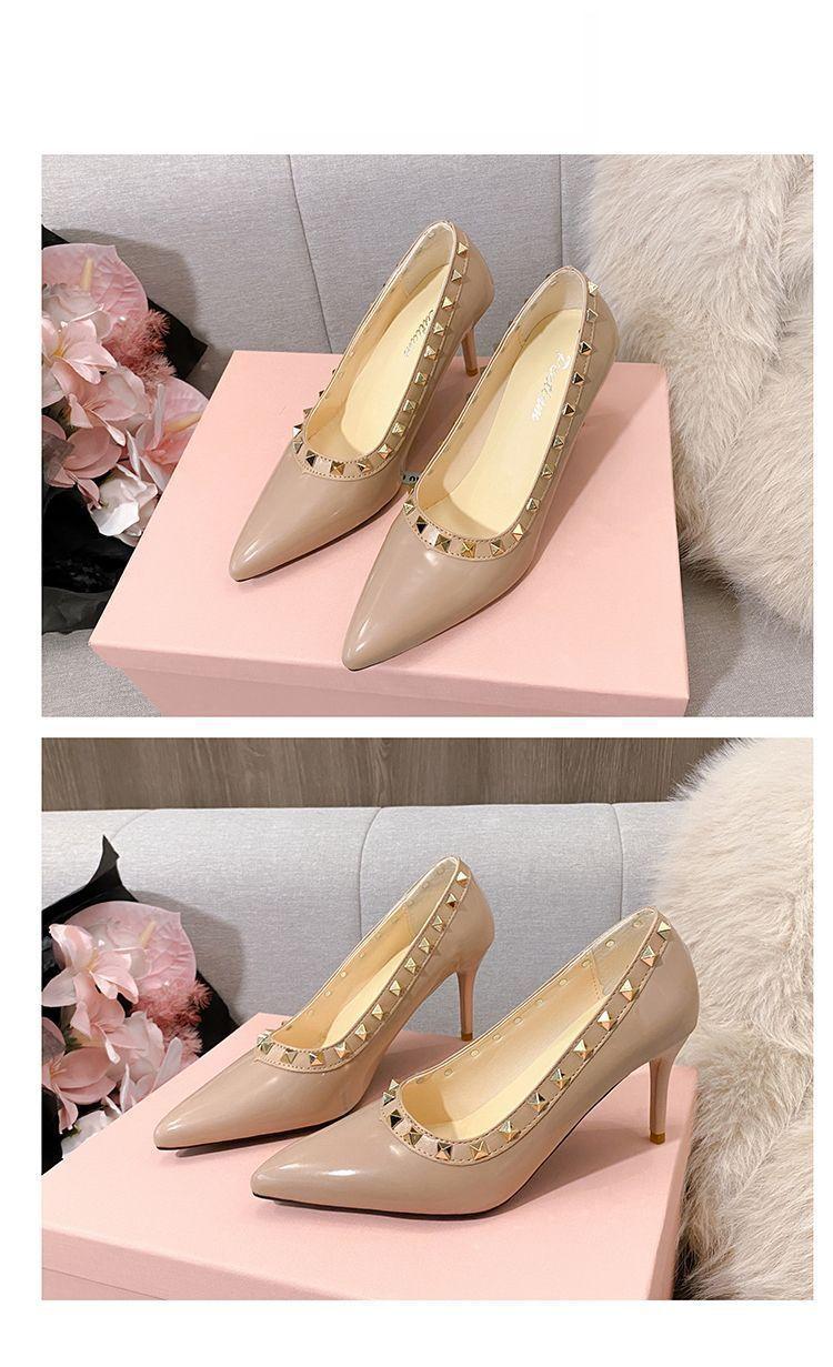 Compra Zapatos de Salón de Verano 2025 Diseño Francés Nude Tacones Altos de Aguja con Remaches Impresionantes para Mujer Zapatos de Punta Estilo Europeo y Americano al por mayor en Joom.pro