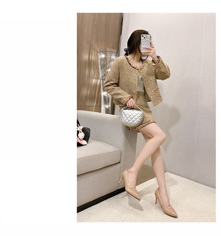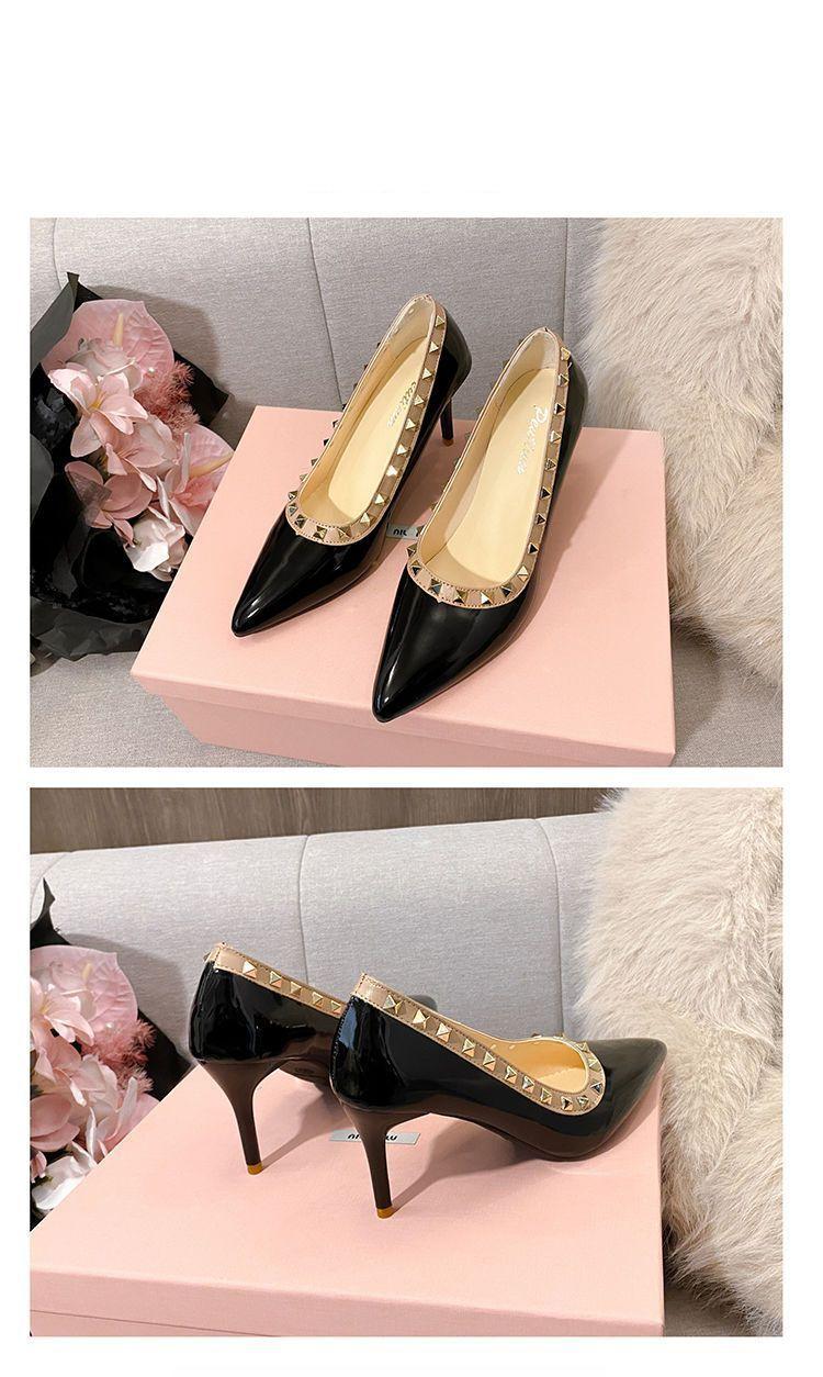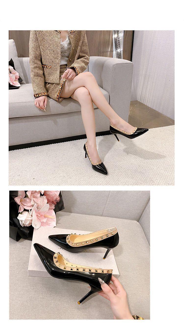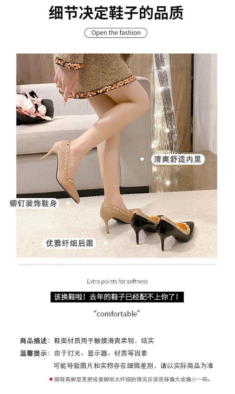 Compra Zapatos de Salón de Verano 2025 Diseño Francés Nude Tacones Altos de Aguja con Remaches Impresionantes para Mujer Zapatos de Punta Estilo Europeo y Americano al por mayor en Joom.pro