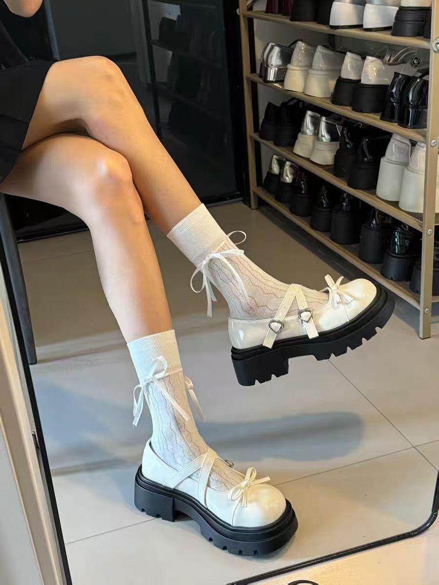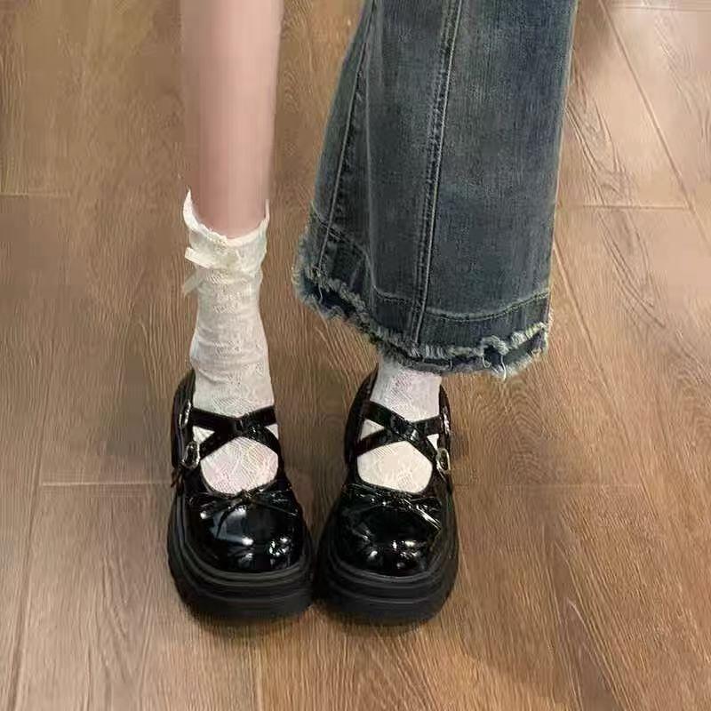 Zapatos de Piel Pequeños Retro de Estilo Japonés Superventas de Suela Gruesa Primavera/Verano 2025 Nuevo Nicho Tacón Grueso Aumentadores de Altura Mary Jane Zapatos Individuales