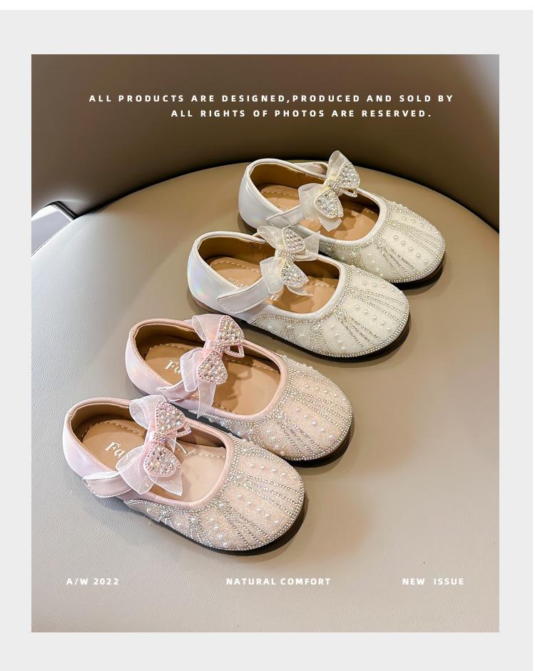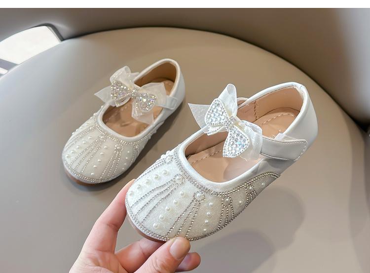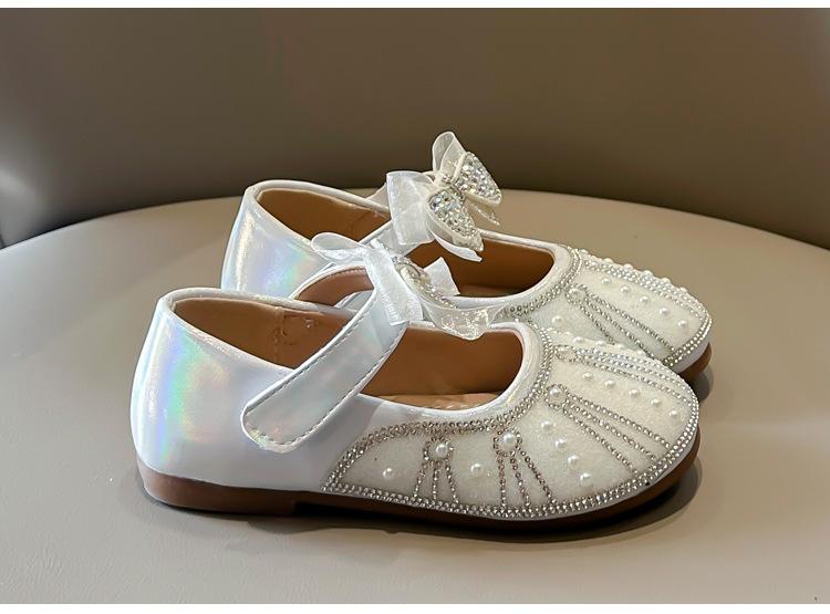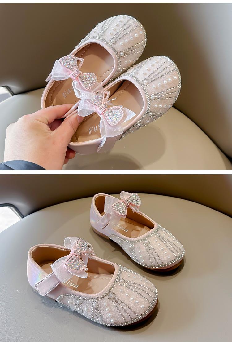 Zapatos de Princesa para Niñas Zapatos Individuales de Cristal 2024 Nuevos Suela Suave Pedrería a la Moda Primavera y Otoño Zapatos de Cuero Zapatos Infantiles para Niña