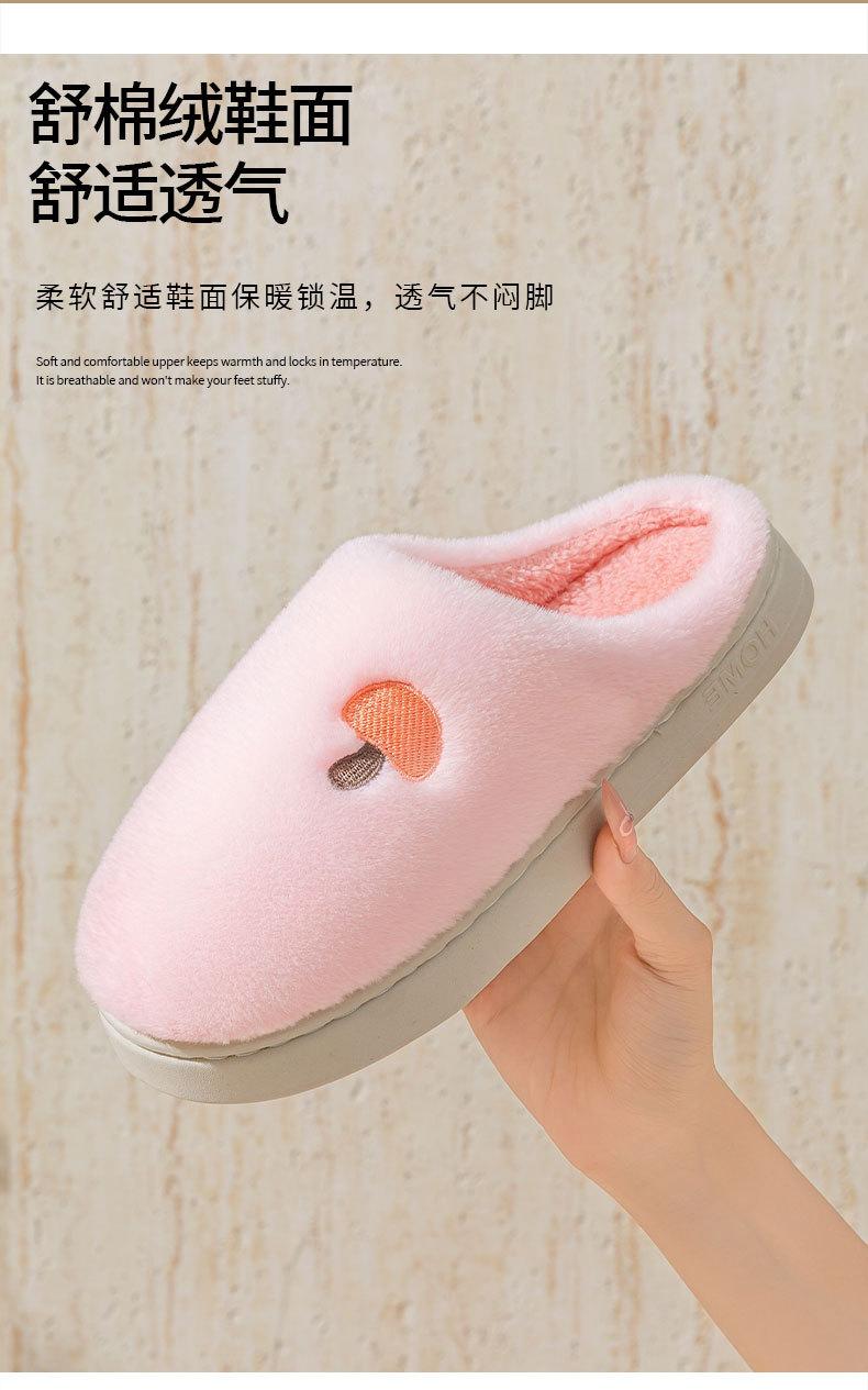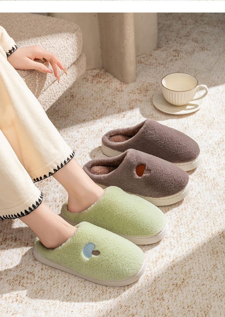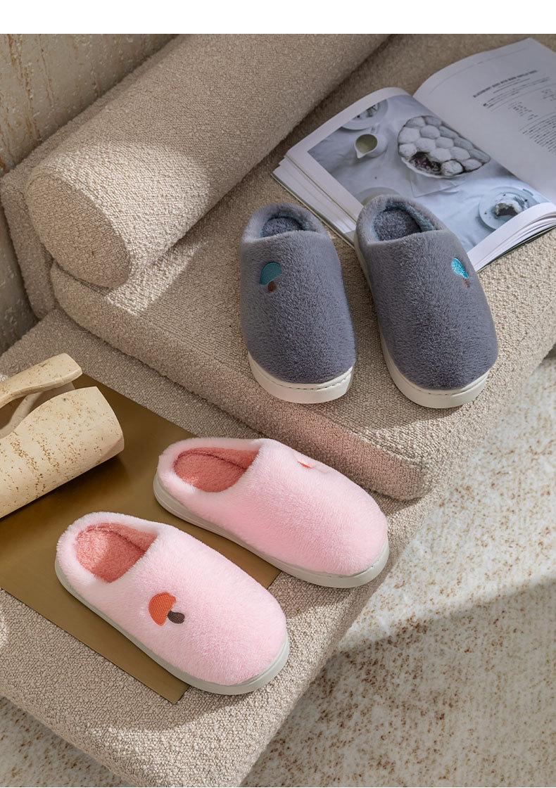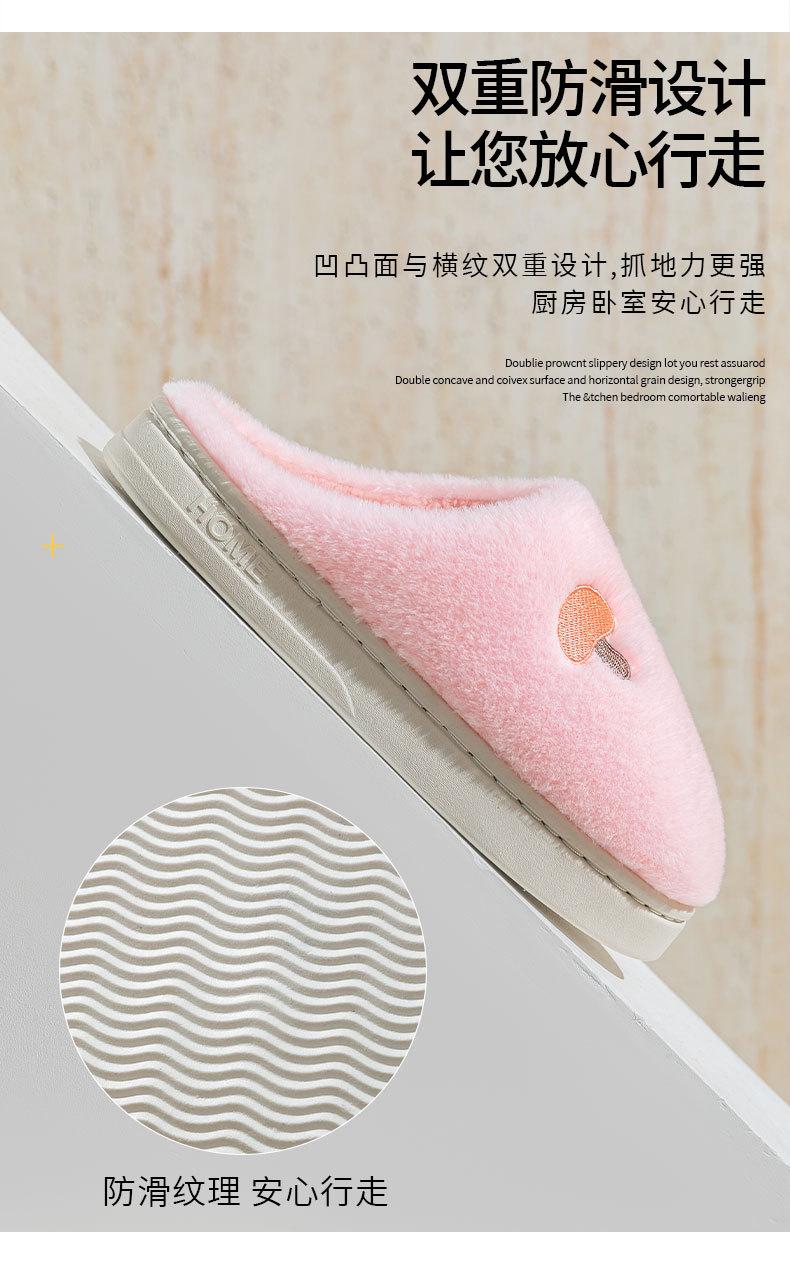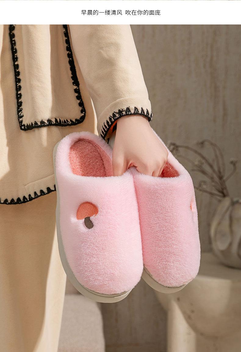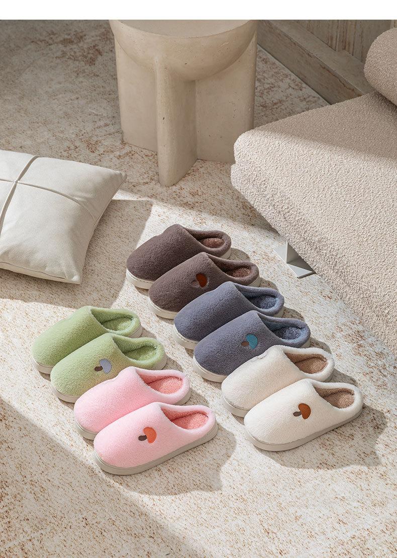 Pantuflas de Algodón Bordadas con Cabeza de Hongo para Hombre Otoño Invierno Interior Hogar Suela Gruesa Cálidas de Felpa Pareja Confinamiento Mujeres