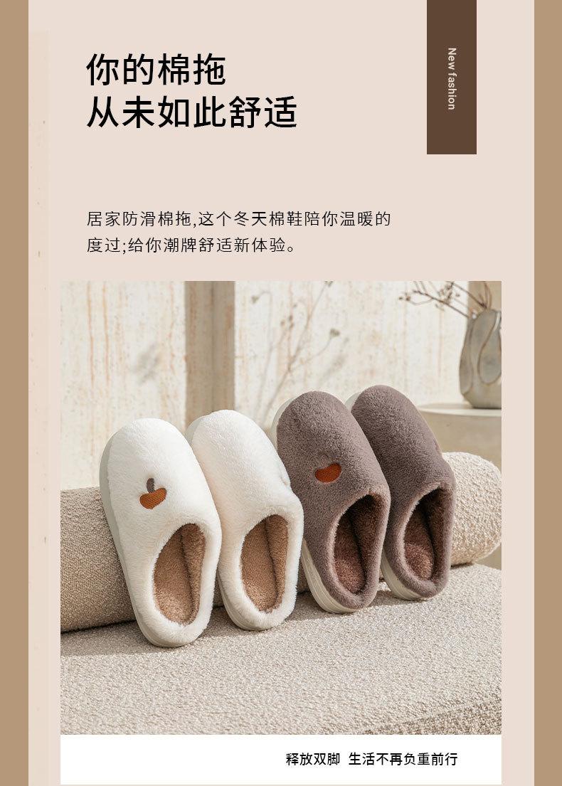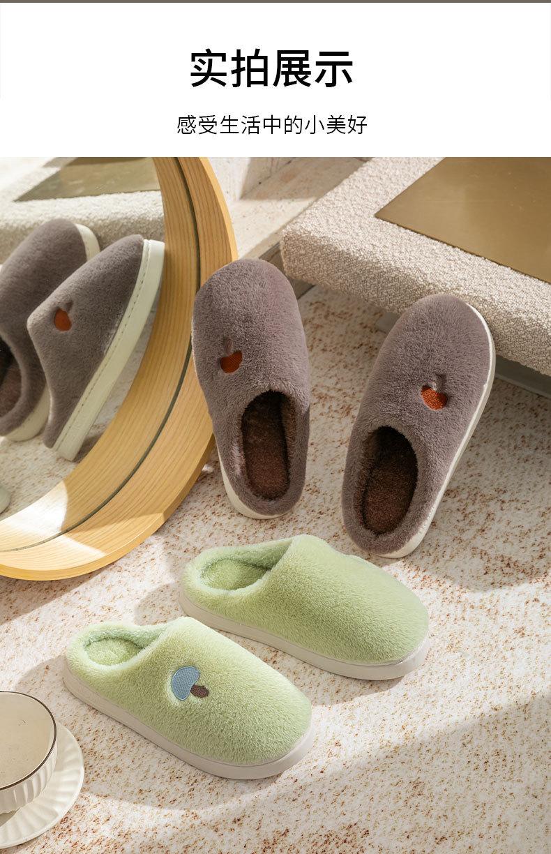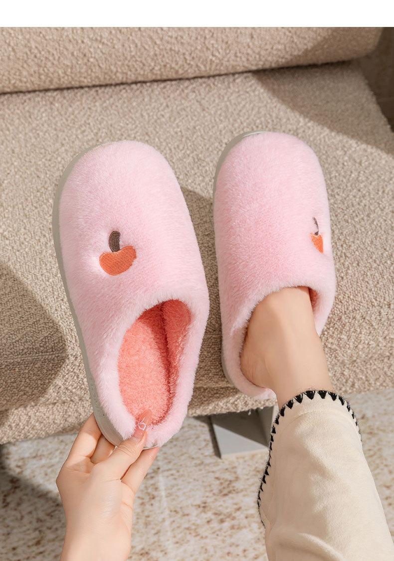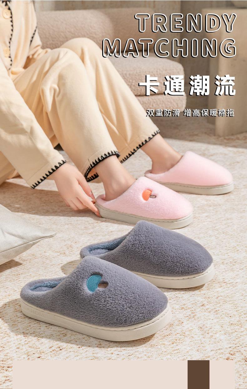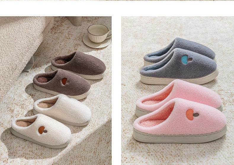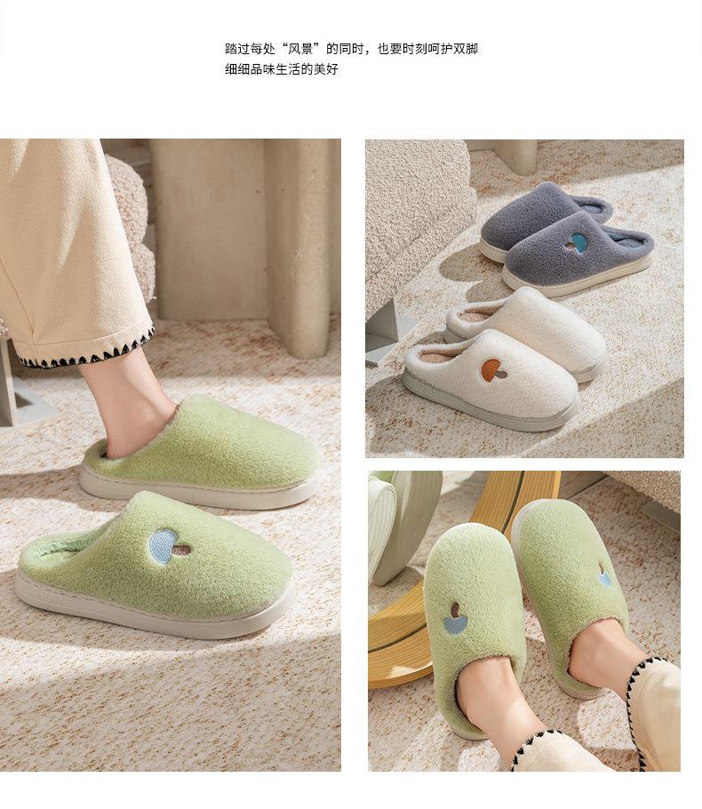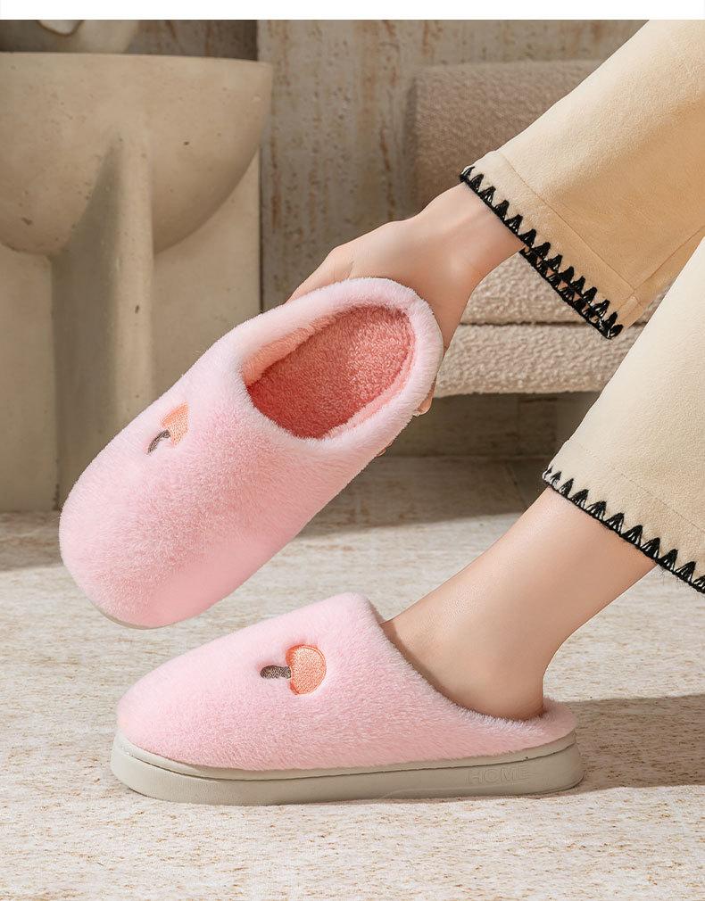 Pantuflas de Algodón Bordadas con Cabeza de Hongo para Hombre Otoño Invierno Interior Hogar Suela Gruesa Cálidas de Felpa Pareja Confinamiento Mujeres