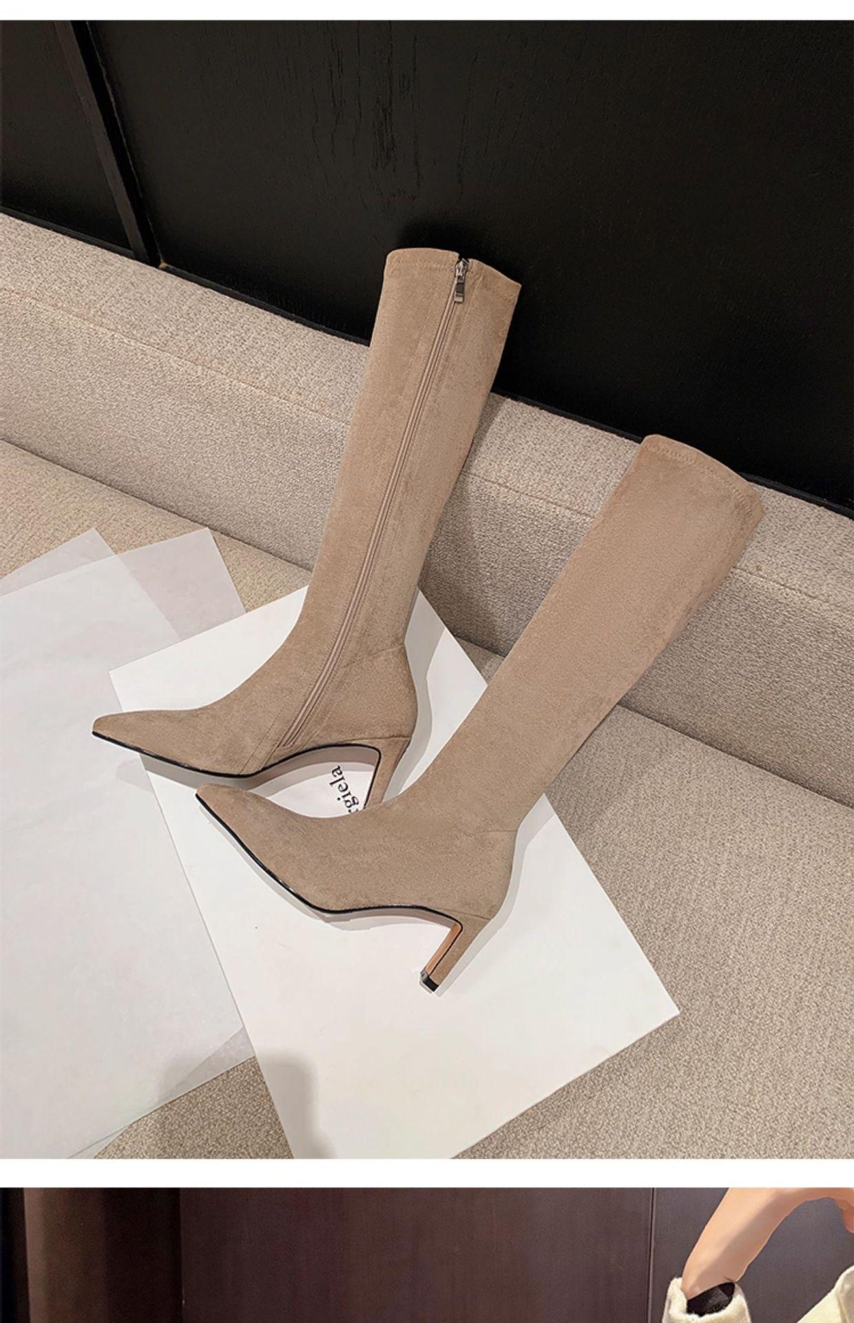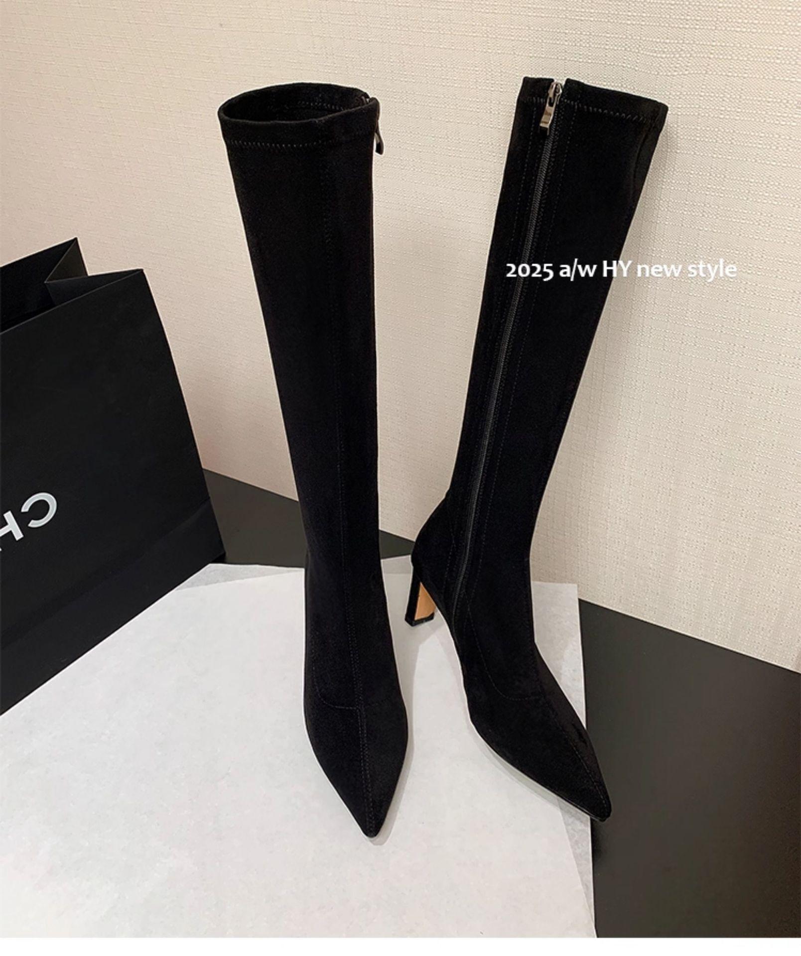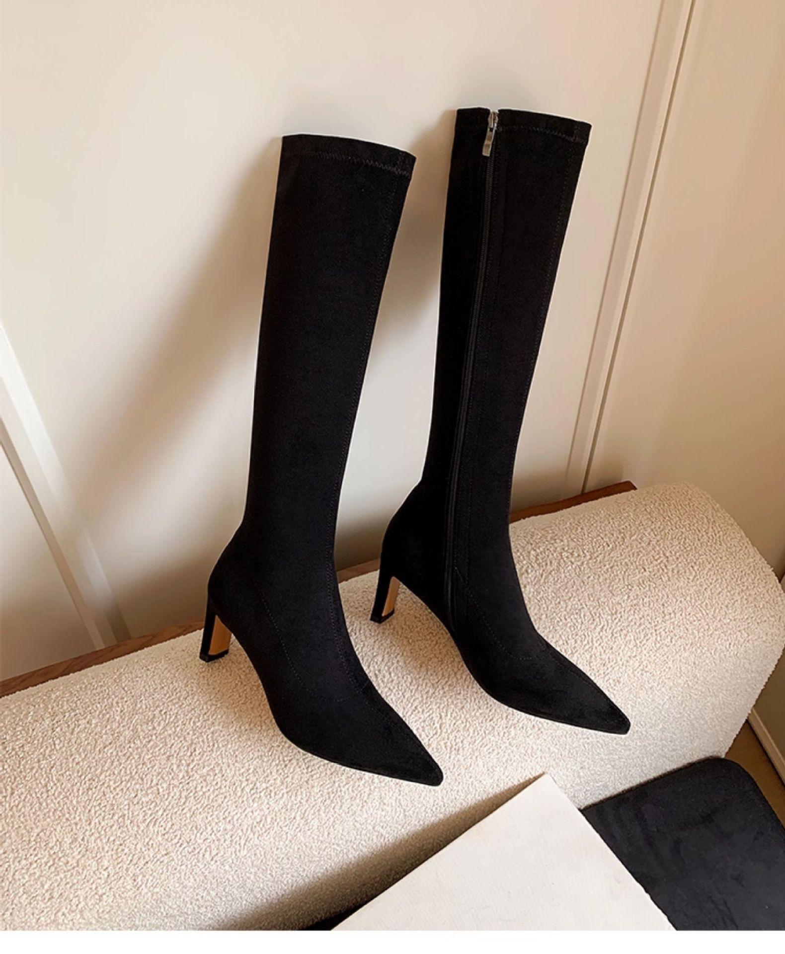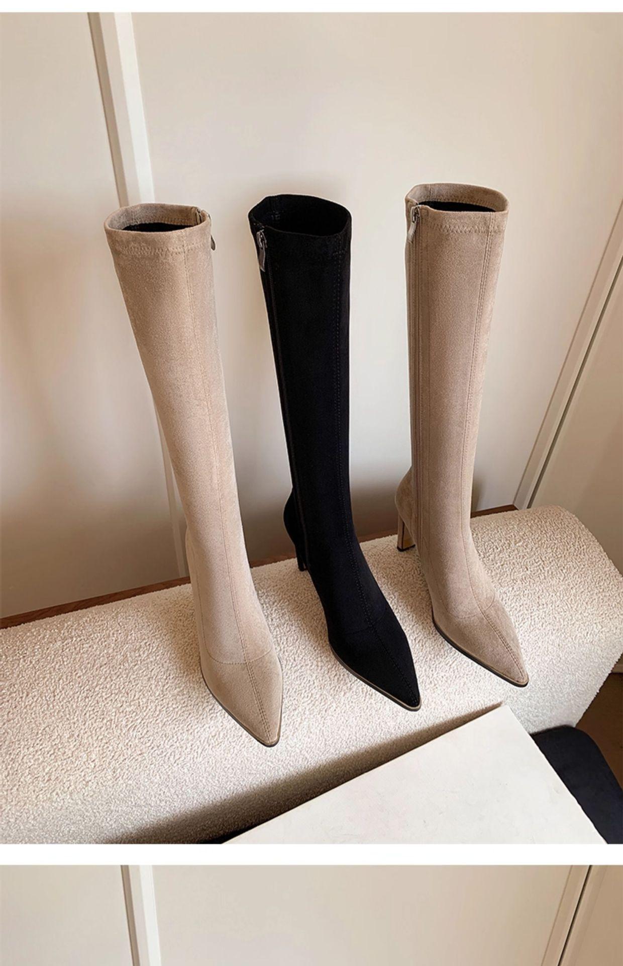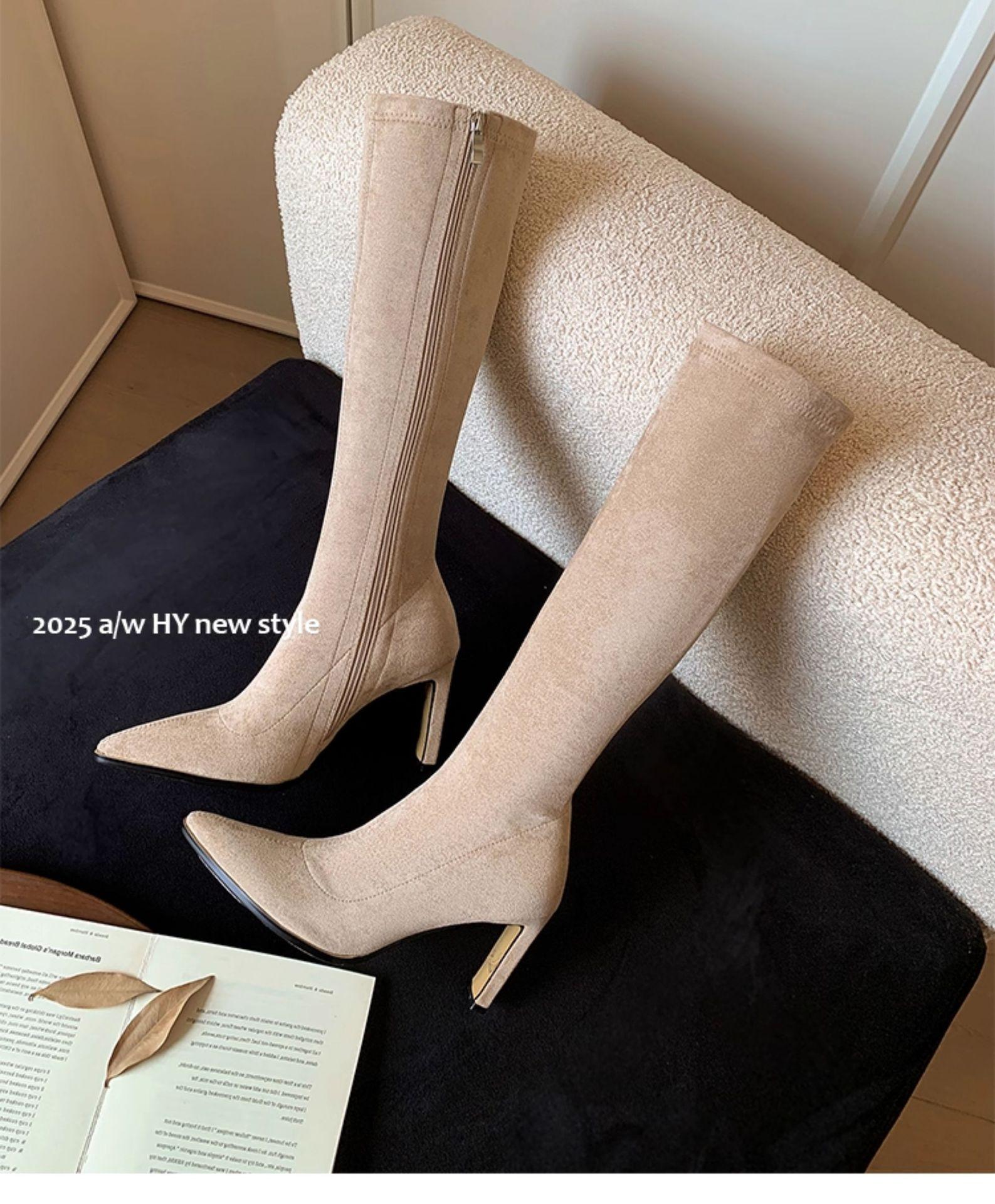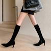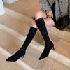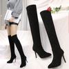 Punta Puntiaguda Tacón de Aguja Tacón Alto Botas Largas Mujer 2025 Otoño/Invierno Nuevo Elástico Moda Versátil Gamuza Botas Ajustadas Sobre la Rodilla