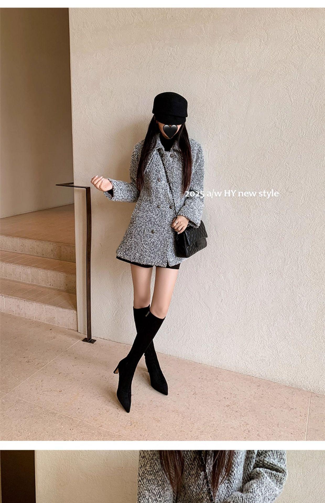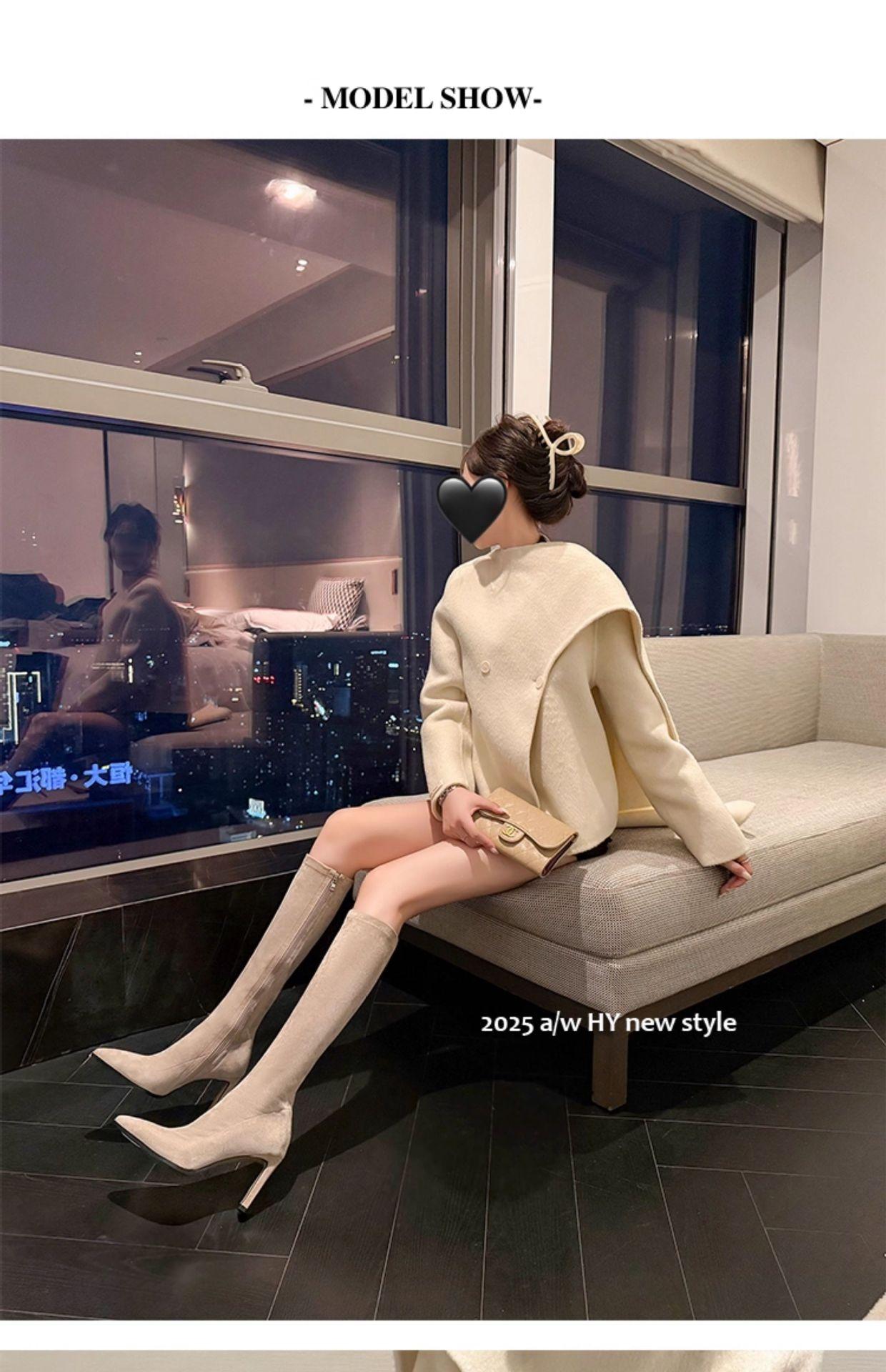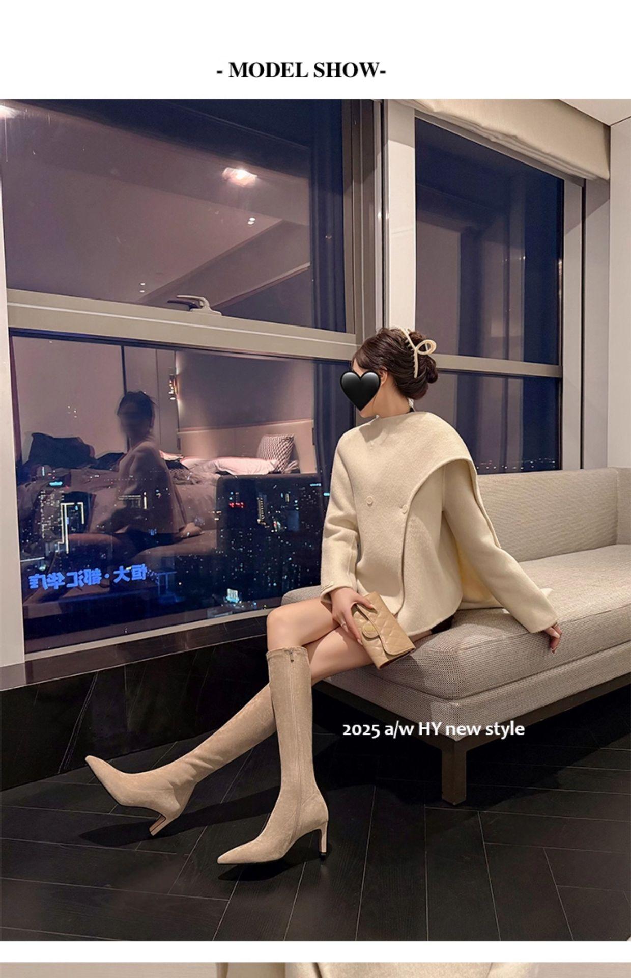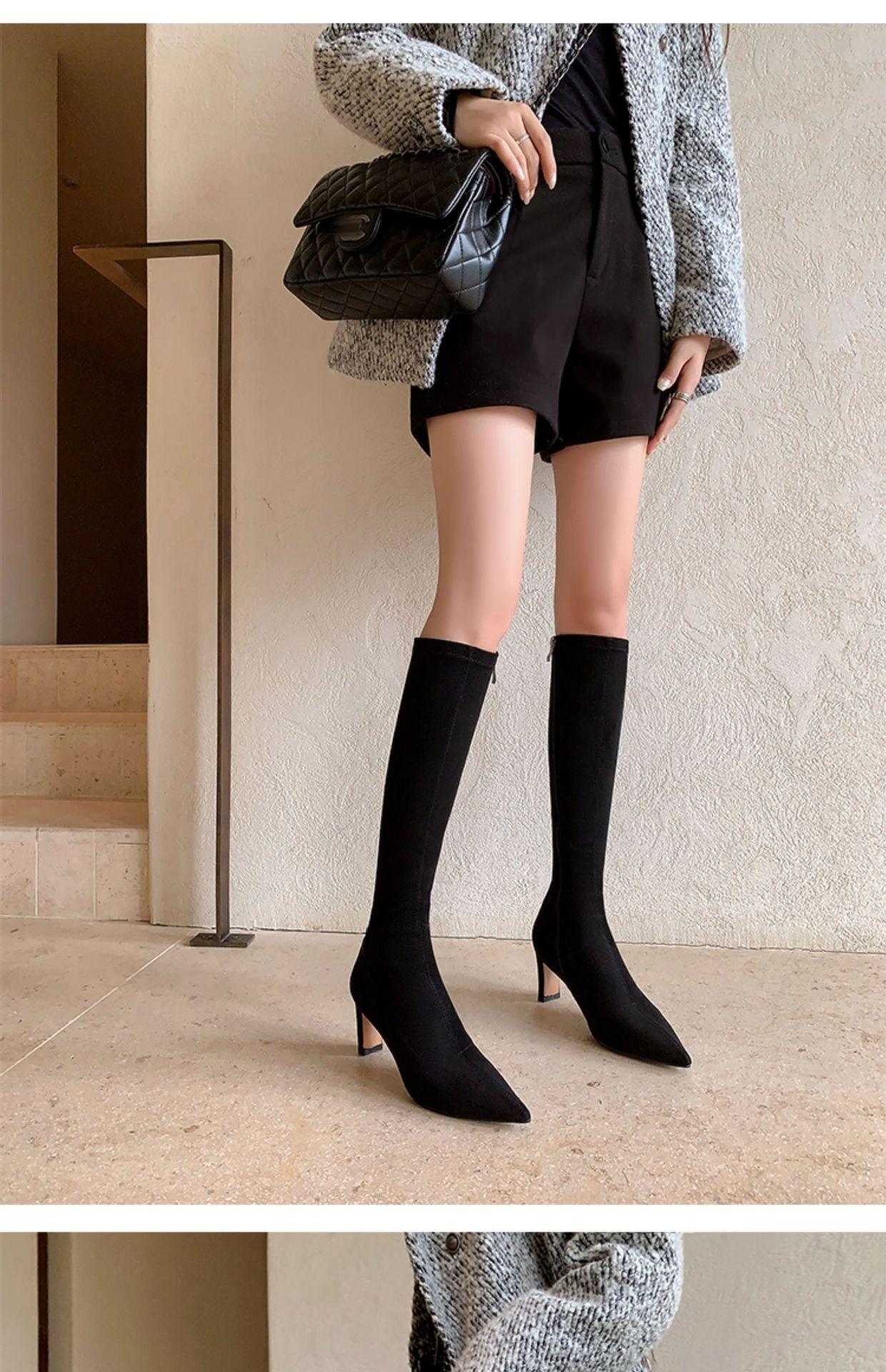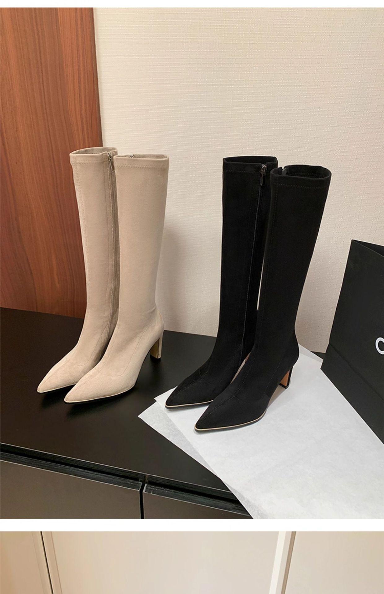 Punta Puntiaguda Tacón de Aguja Tacón Alto Botas Largas Mujer 2025 Otoño/Invierno Nuevo Elástico Moda Versátil Gamuza Botas Ajustadas Sobre la Rodilla