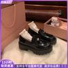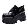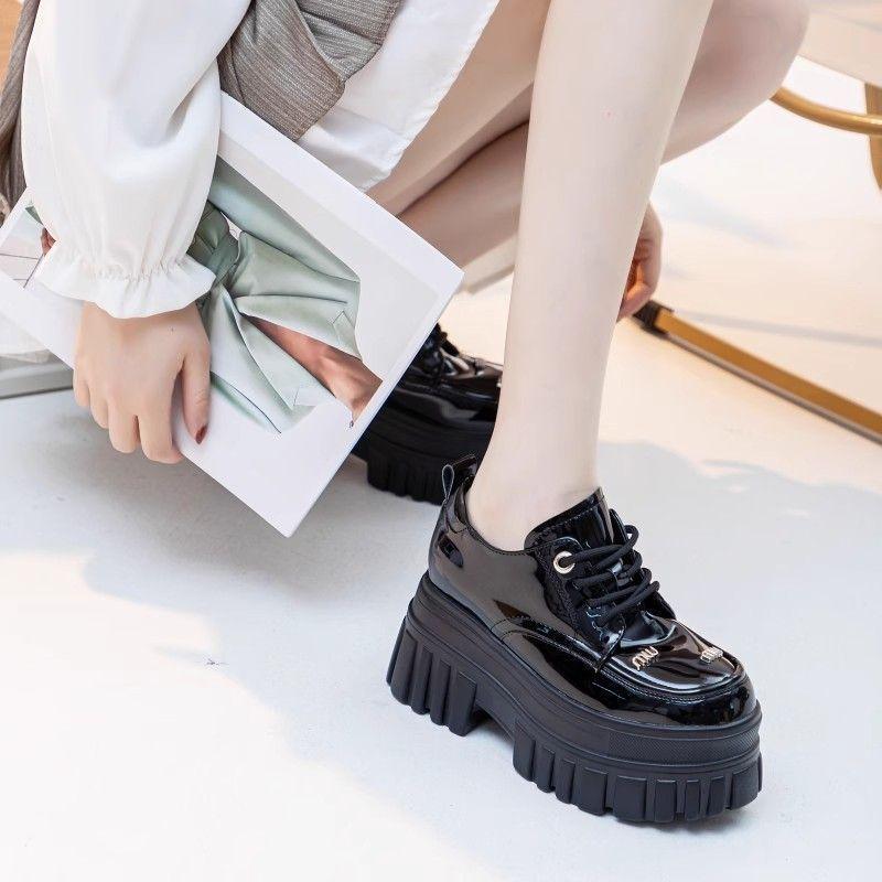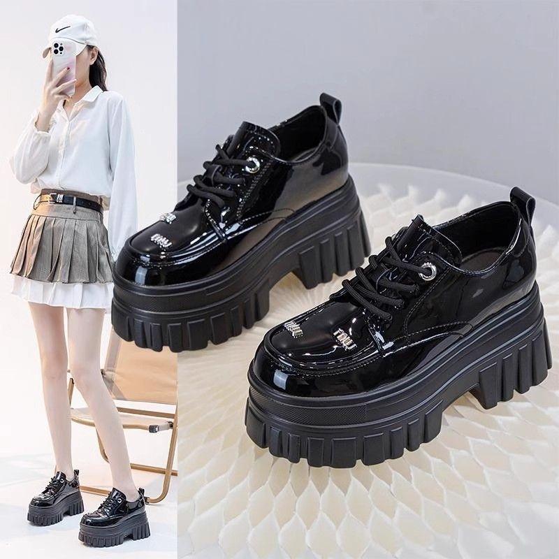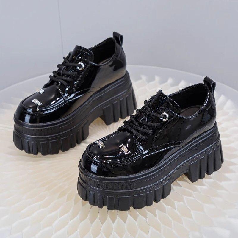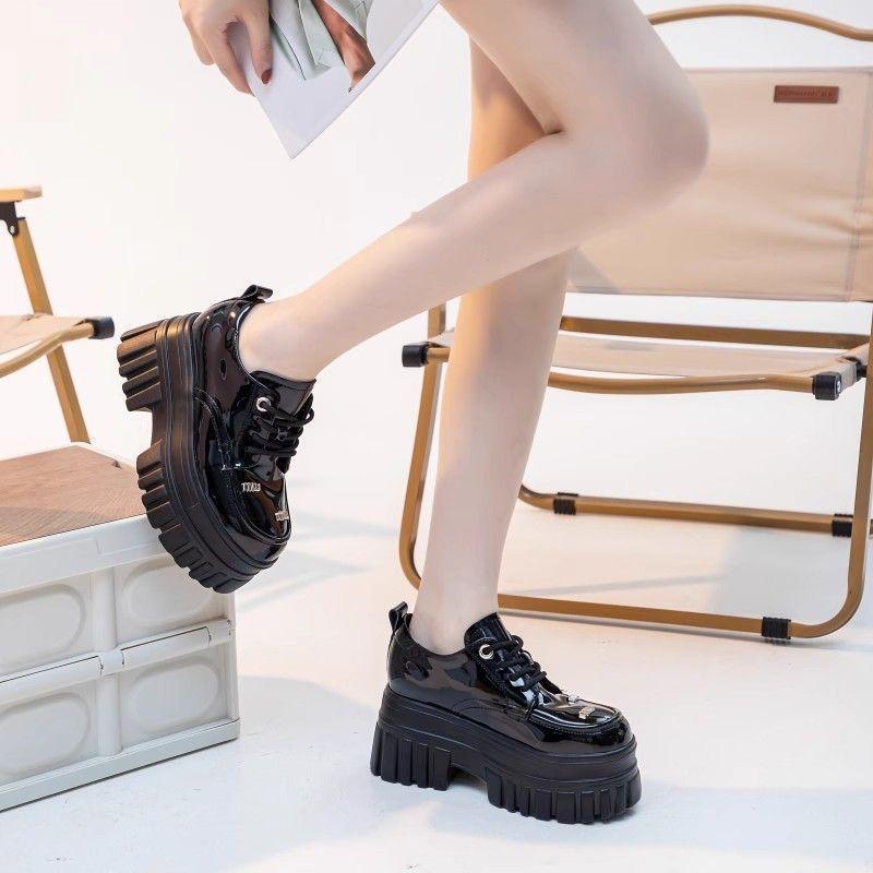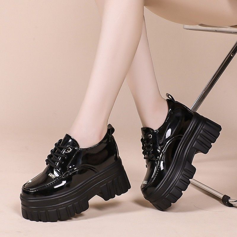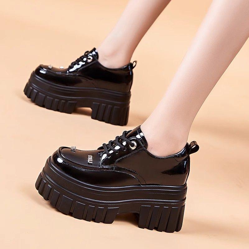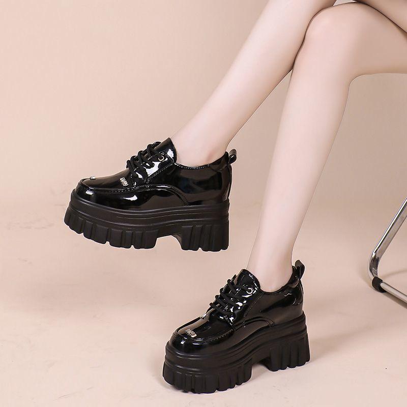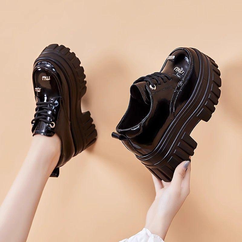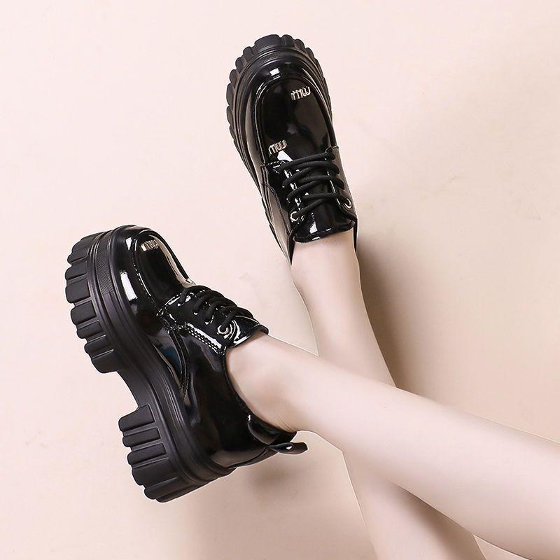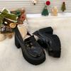 Mocasines negros para mujer, primavera 2025, nuevos zapatos de mujer con suela gruesa y aumento de altura, zapatos de cuero pequeños de estilo universitario que combinan con todo.