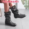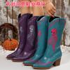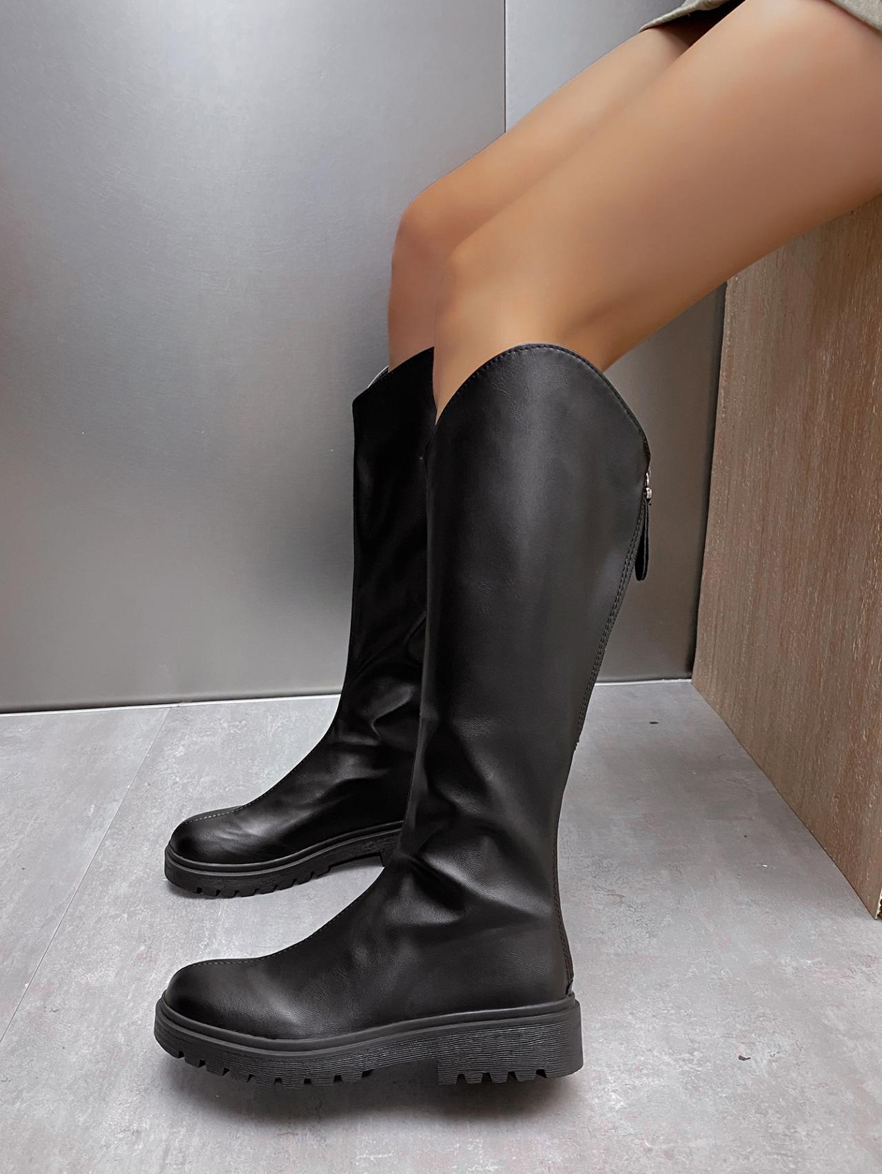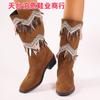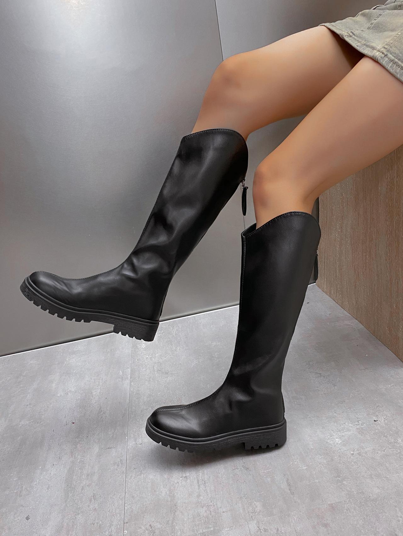 2025 Otoño/Invierno Nuevas Botas de Mujer de Tacón Medio de Tacón Cuadrado de Punta Redonda por Encima de la Rodilla Moda Europea y Americana Cierre Trasero Botas de Mujer de Comercio Exterior