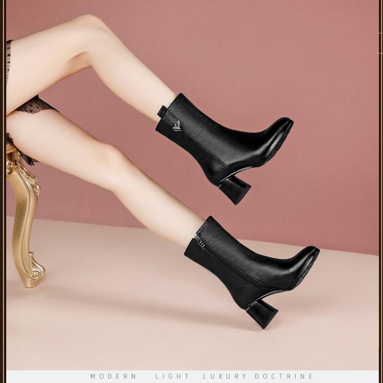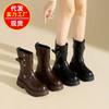 Otoño/Invierno 2025 Nuevo Estilo Británico Botas de Media Caña para Mujer de Tacón Grueso Botas Versátiles de Moda que Adelgazan Botas Martin de Media Caña para Mujer