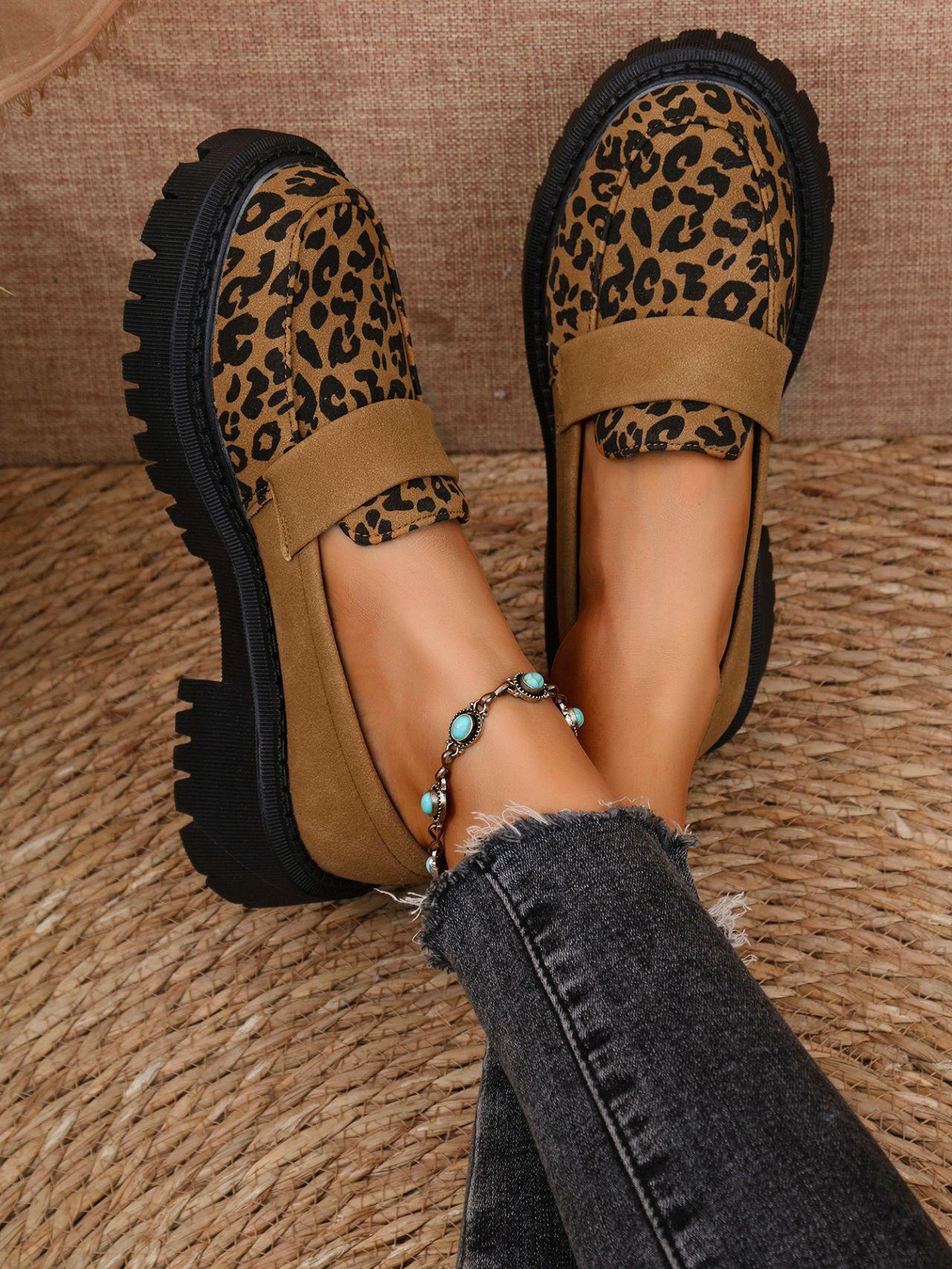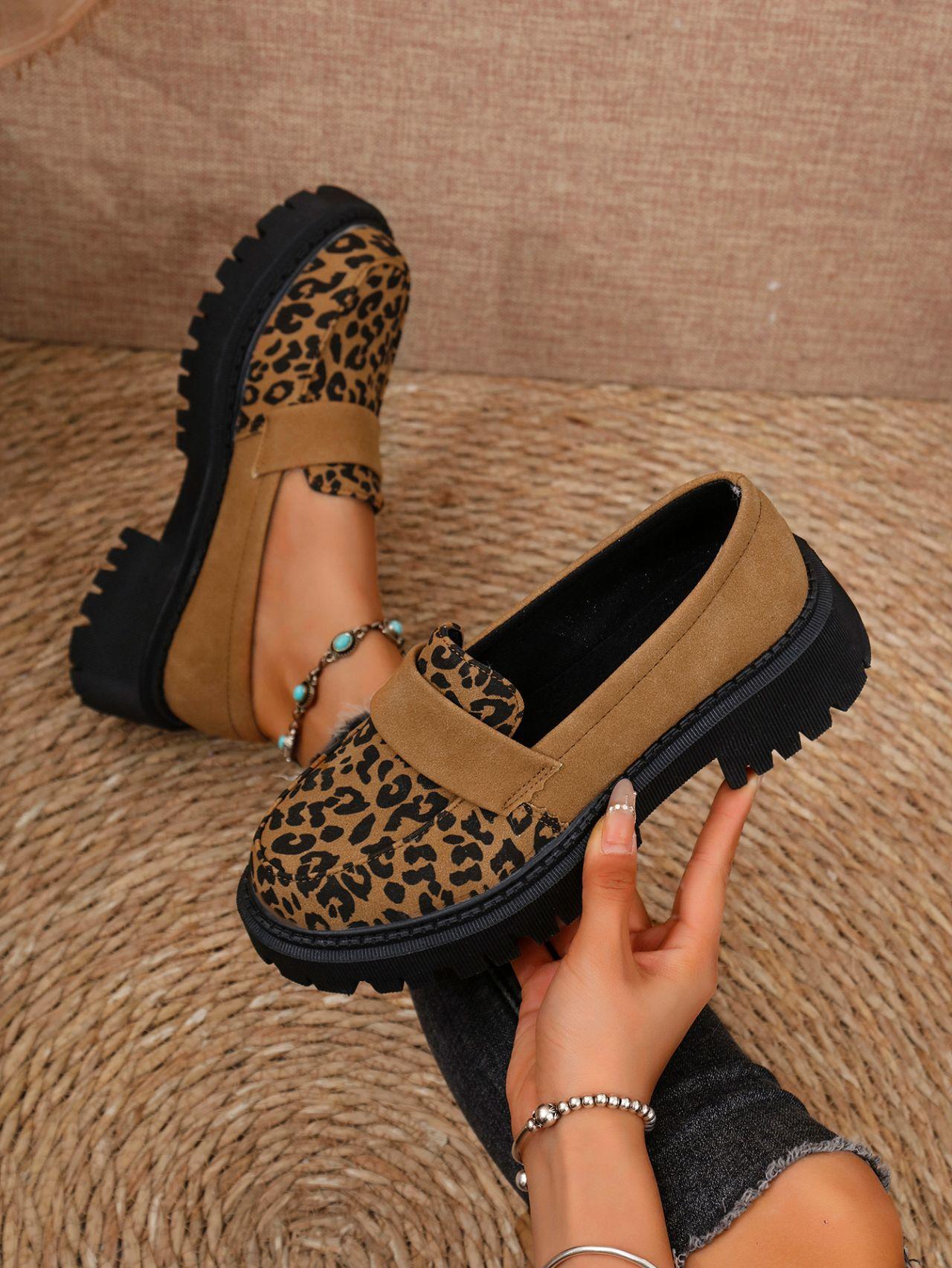 Mocasines de Leopardo Talla Grande Transfronterizos Otoño 2025 Nuevos Zapatos Individuales Mocasines Estilo Británico Zapatos Perezosos Slip-on Mujer