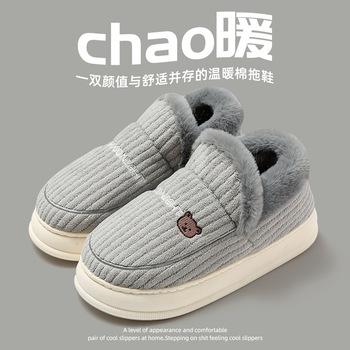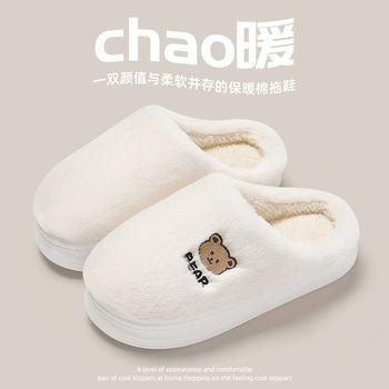 Lindas Pantuflas de Algodón para Padres e Hijos para Mujer Invierno Hogar Interior Dibujos Animados Zapatos de Algodón para Niños Gatito Cálidas Pantuflas de Algodón de Felpa Venta al por Mayor