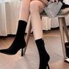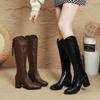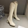 Botas largas de tacón alto botas elásticas versátiles adelgazantes temperamento botas ajustadas por encima de la rodilla 2025 otoño e invierno nuevo punta cuadrada suela gruesa