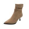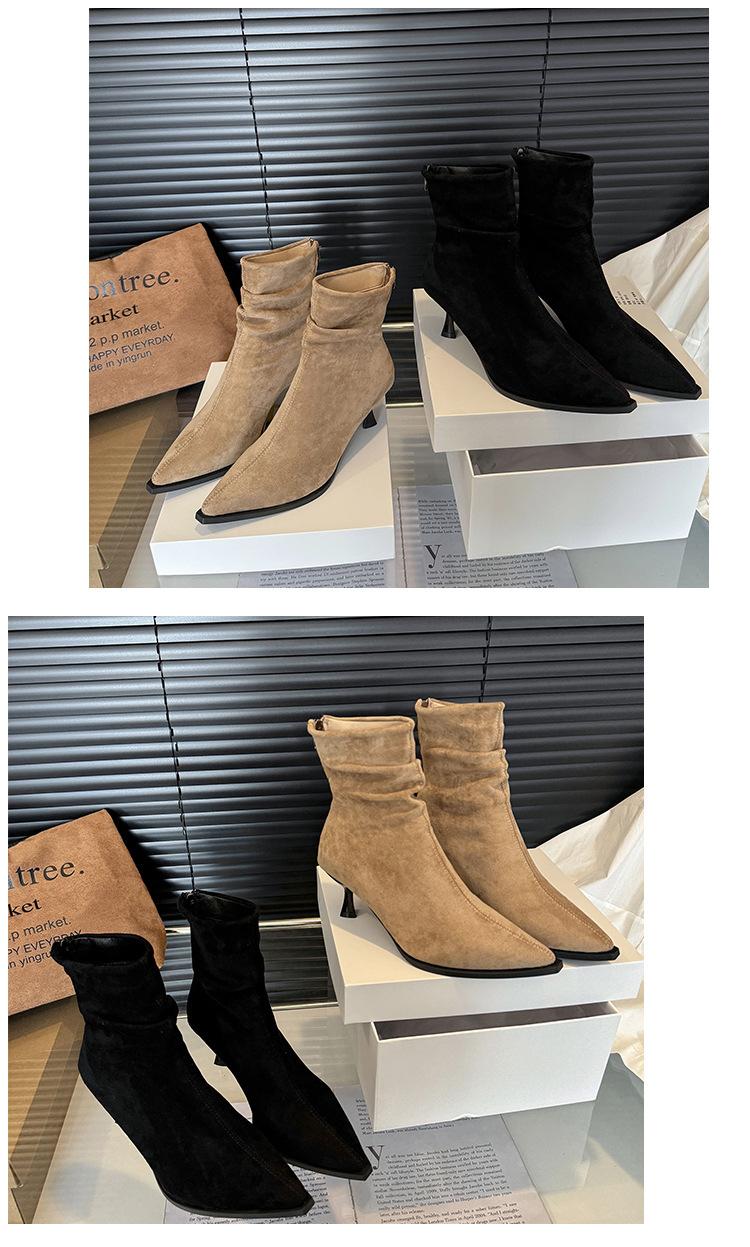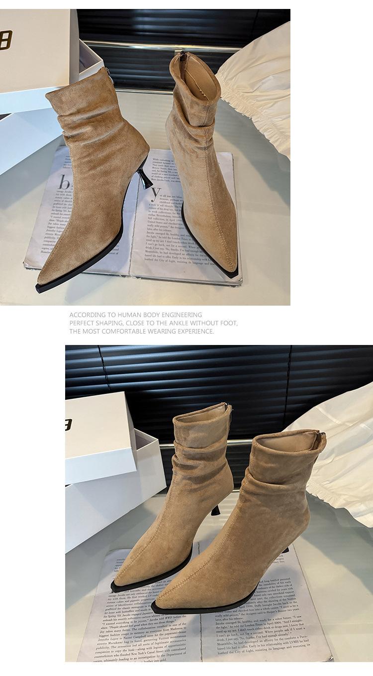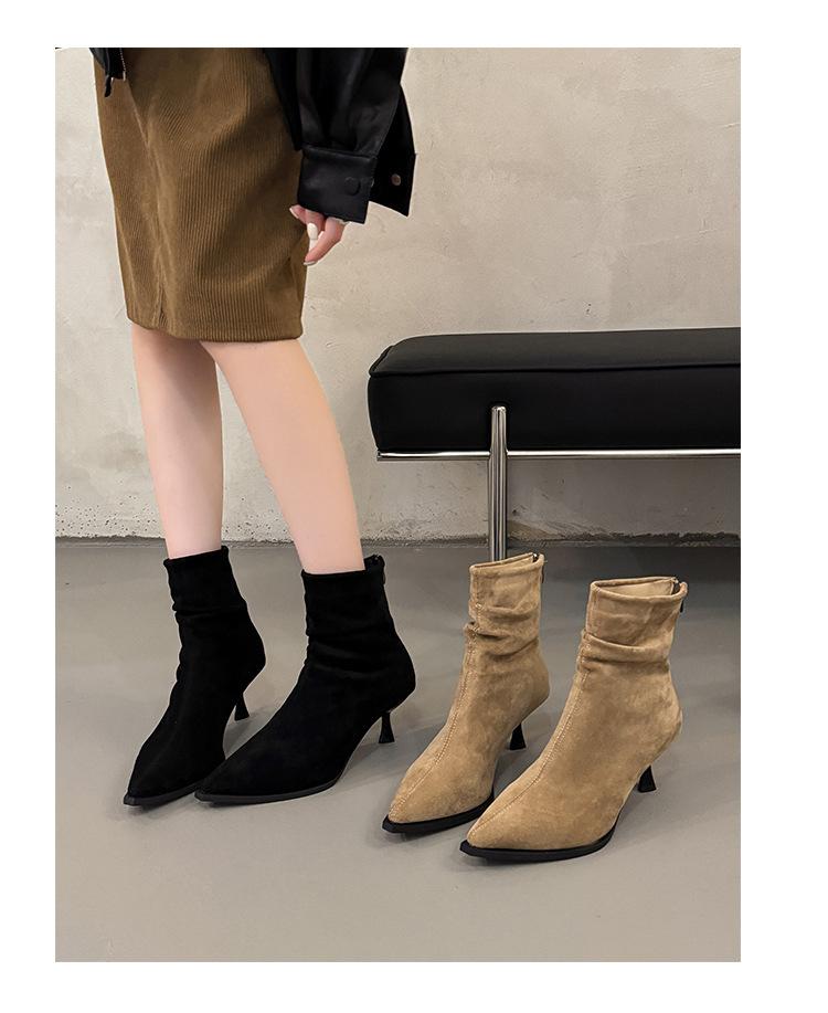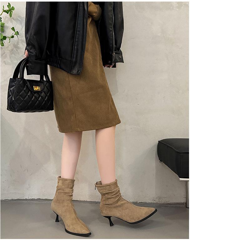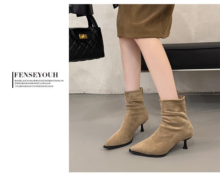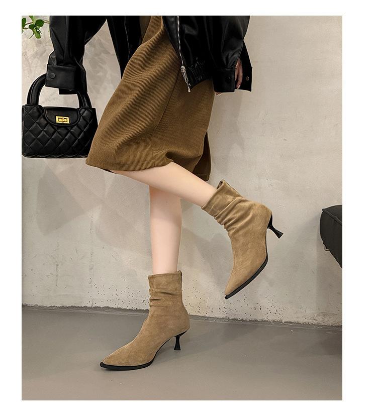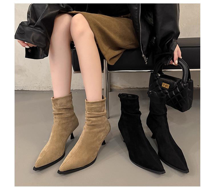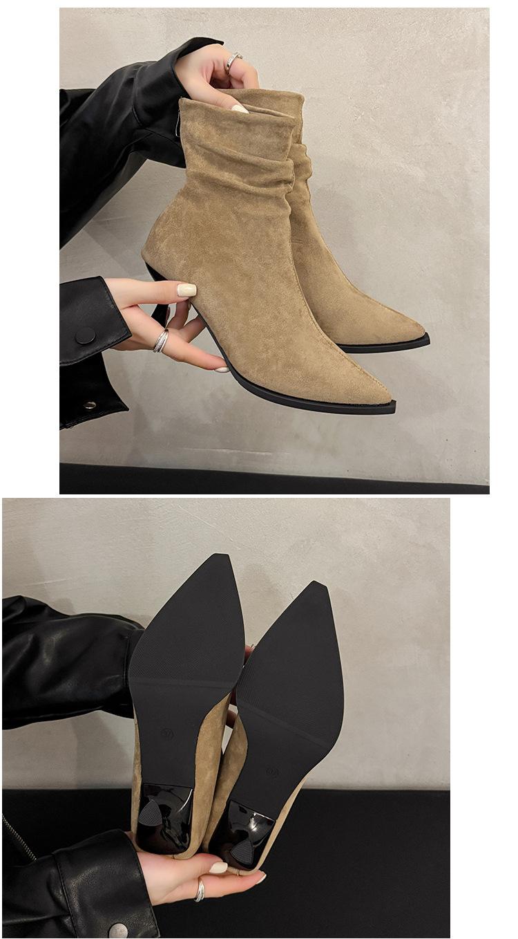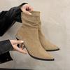 2025 Otoño Nuevo Retro Gamuza Fruncido Apiladas Botas Mujer Otoño Invierno Punta Afilada Tacón Alto Adelgazantes Botines Botas Finas de Media Caña