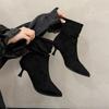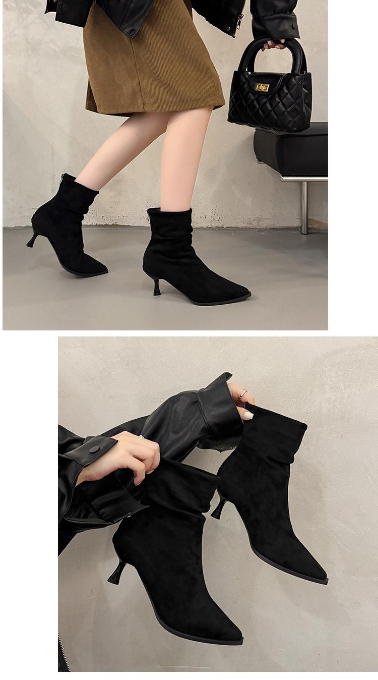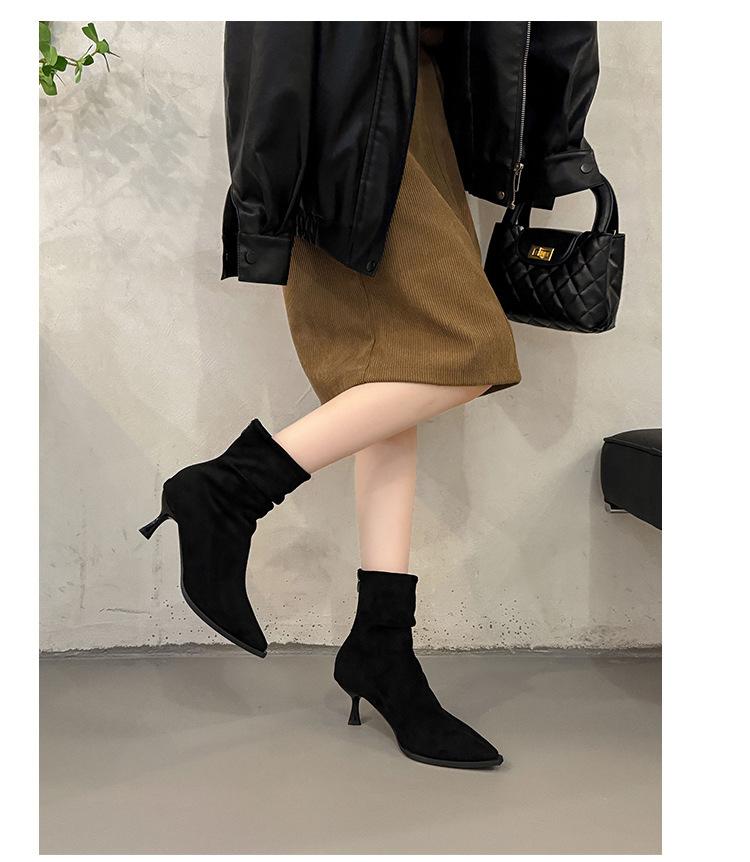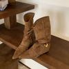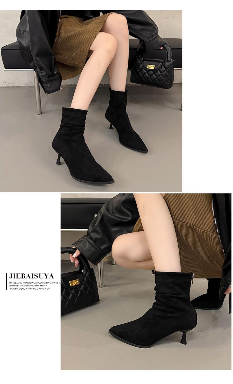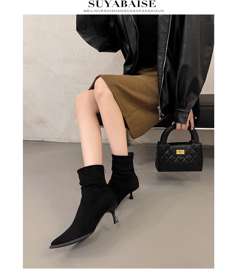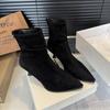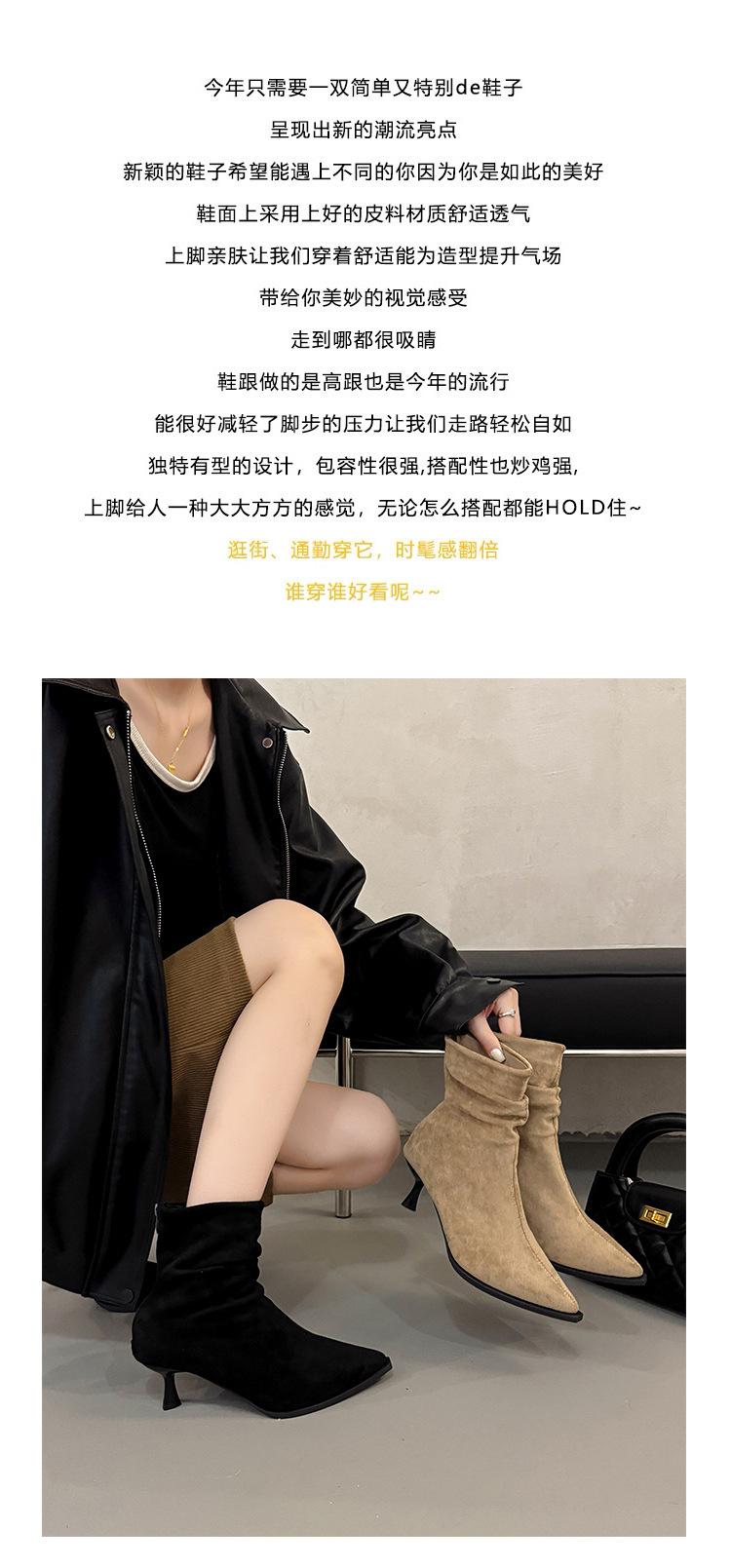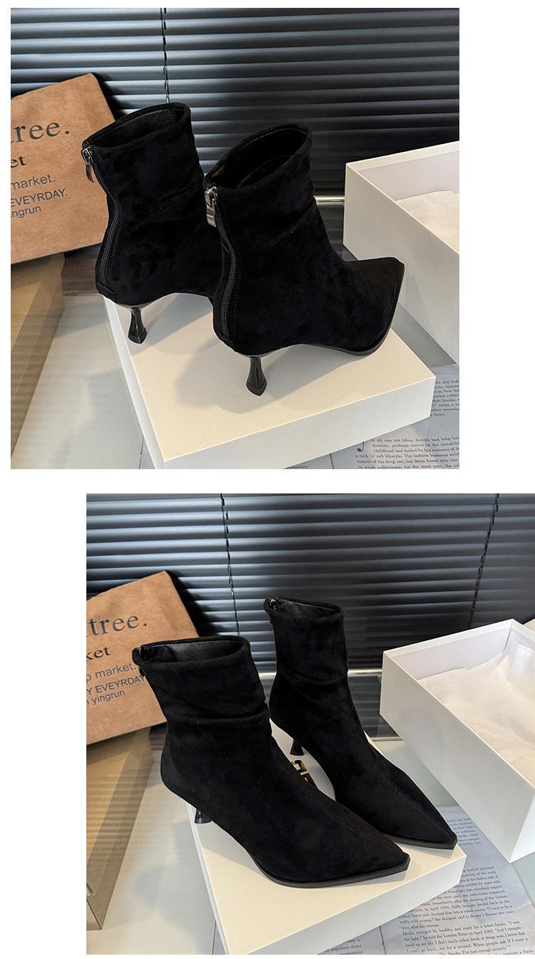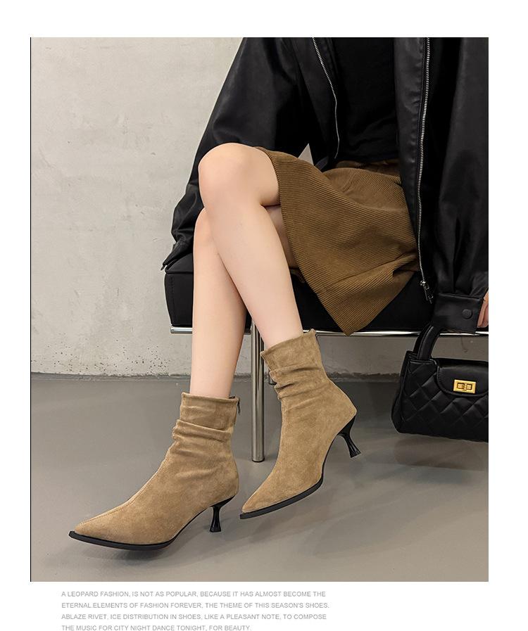 2025 Otoño Nuevo Retro Gamuza Fruncido Apiladas Botas Mujer Otoño Invierno Punta Afilada Tacón Alto Adelgazantes Botines Botas Finas de Media Caña