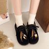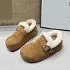 Procesamiento personalizado invierno nuevo zapatos de canguro antideslizantes suela blanda cálidos moda versátil borla Birkenstock con cuentas zapatos de algodón para mujer
