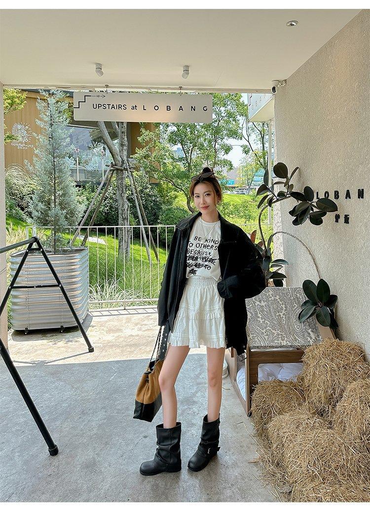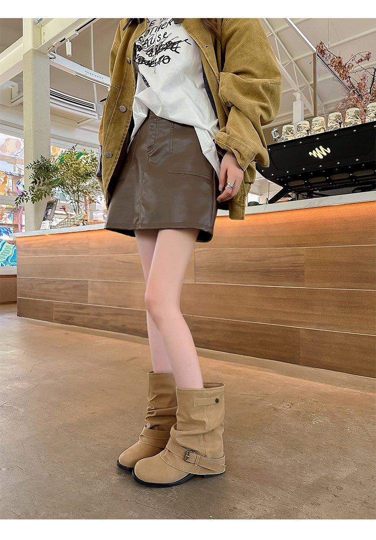 Moda Retro Botas Apiladas Fruncidas Mujer 2025 Otoño Nuevo Versátil Suela Gruesa Botas Pantalón Botas Martin Botas Vaqueras Occidentales