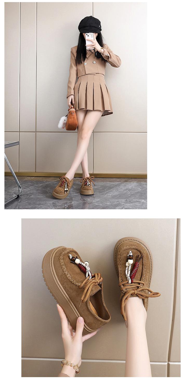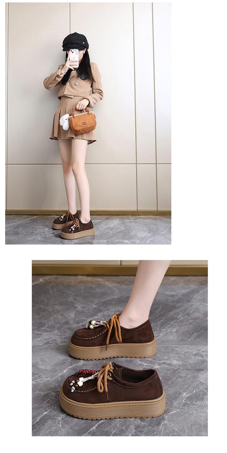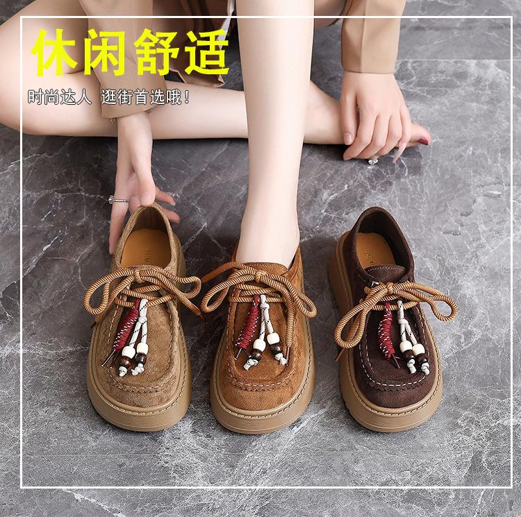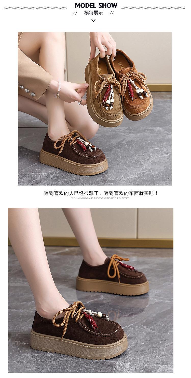 Mocasines Retro con Borlas y Cuentas para Mujer Otoño 2025 Nuevos Gamuza Cómodos Suaves Plataforma Zapatos Casuales