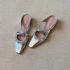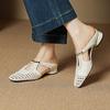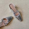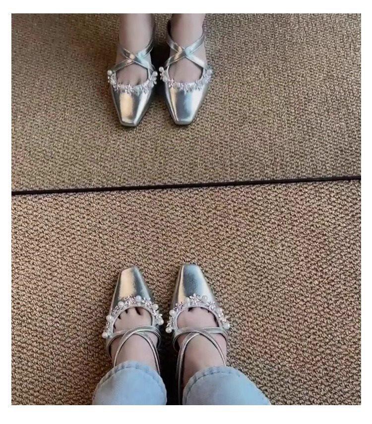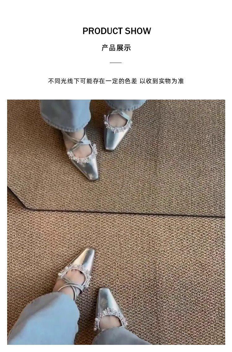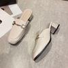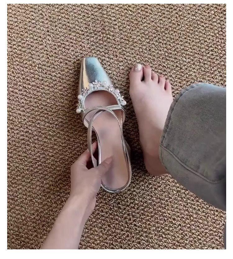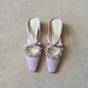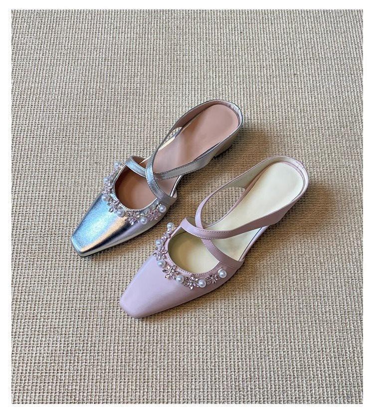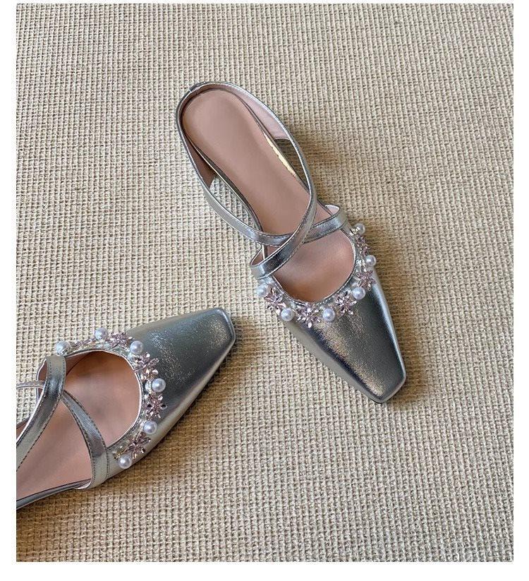Pantuflas francesas de punta cuadrada con correa cruzada de perlas y punta cerrada para mujer 2025 nuevo primavera/verano que aumentan la altura, pantuflas medias sin cordones