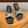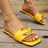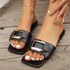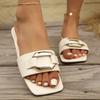 Zapatillas de Verano 2025 de Talla Grande Transfronterizas Europeas y Americanas Hebilla Metálica Zapatillas de Tira Única Zapatos Planos de Mujer Sandalias de Playa