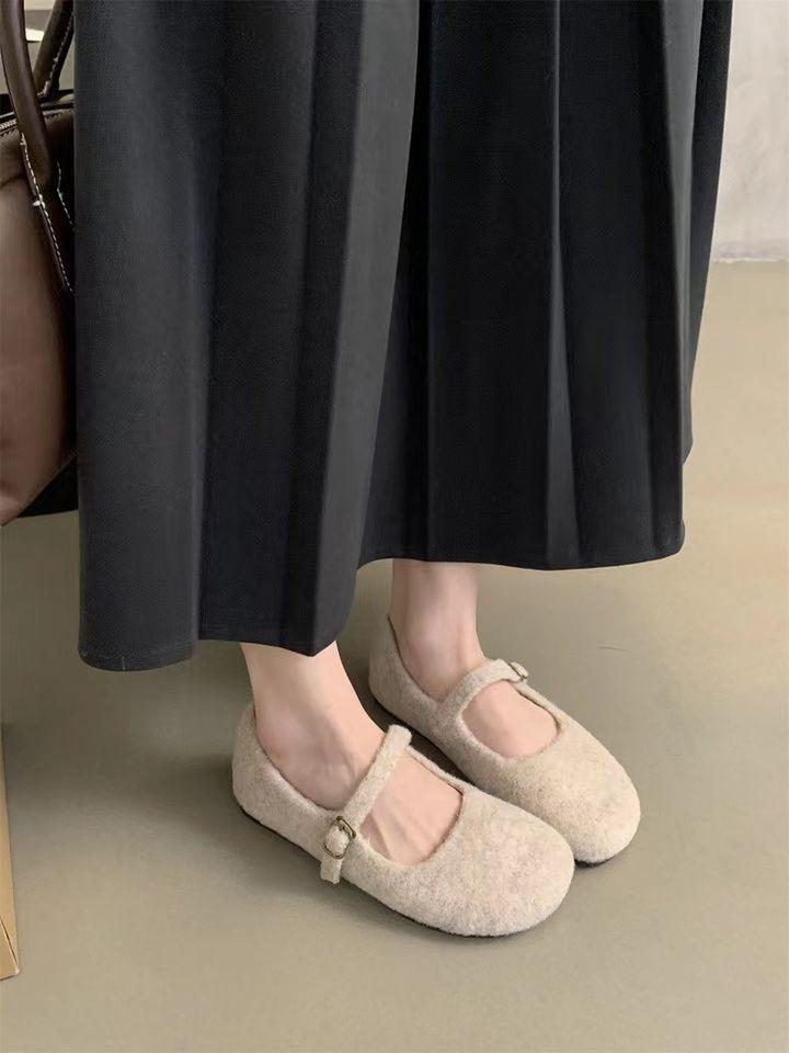 Zapatos Retro Mary Jane Peludos Zapatos de Mujer 2025 Otoño/Invierno Nuevo Estilo Ropa Exterior Absolutamente Asombrosos Zapatos de Frijol Más Terciopelo Zapatos Individuales