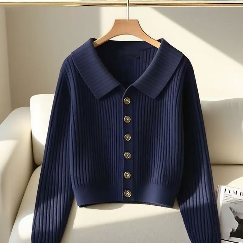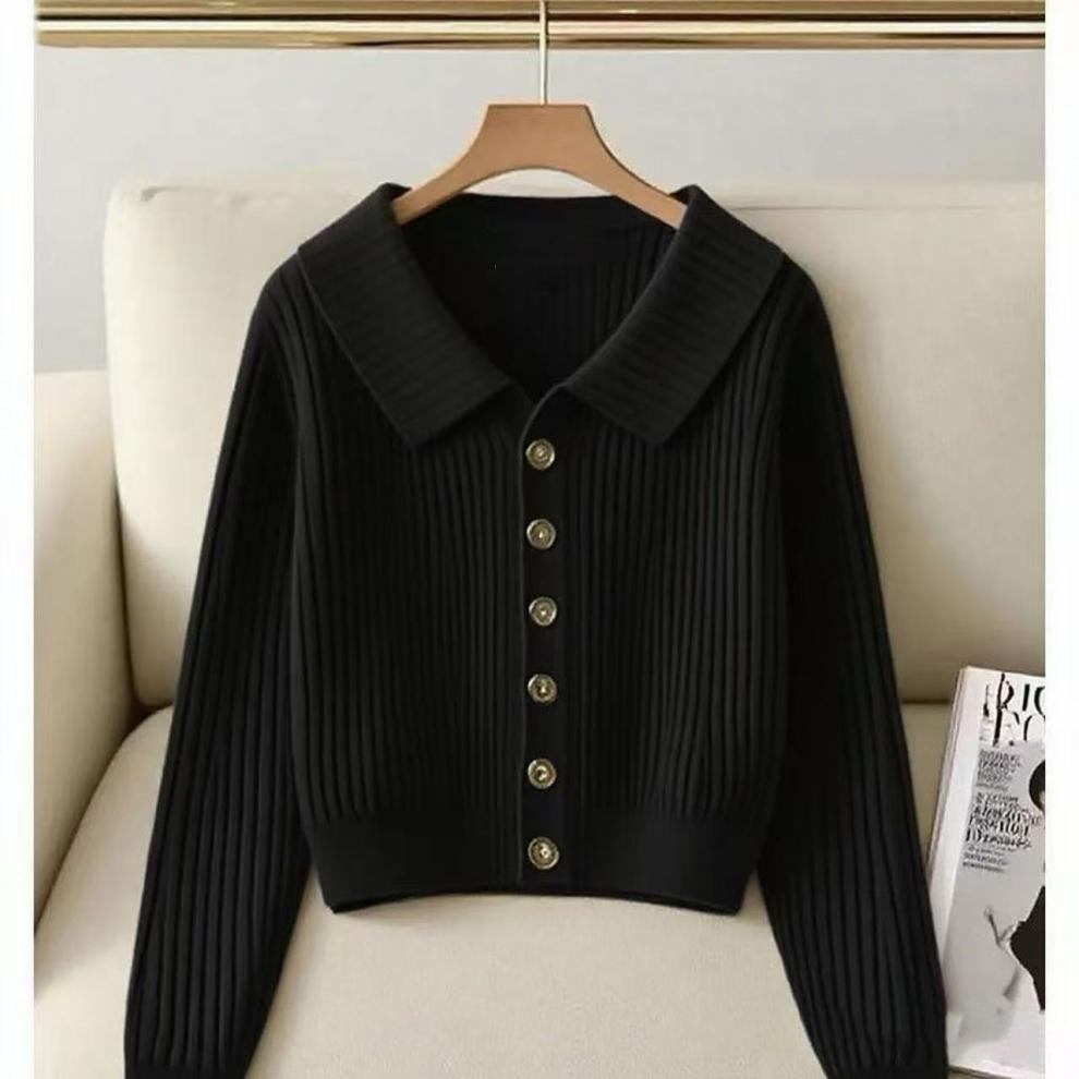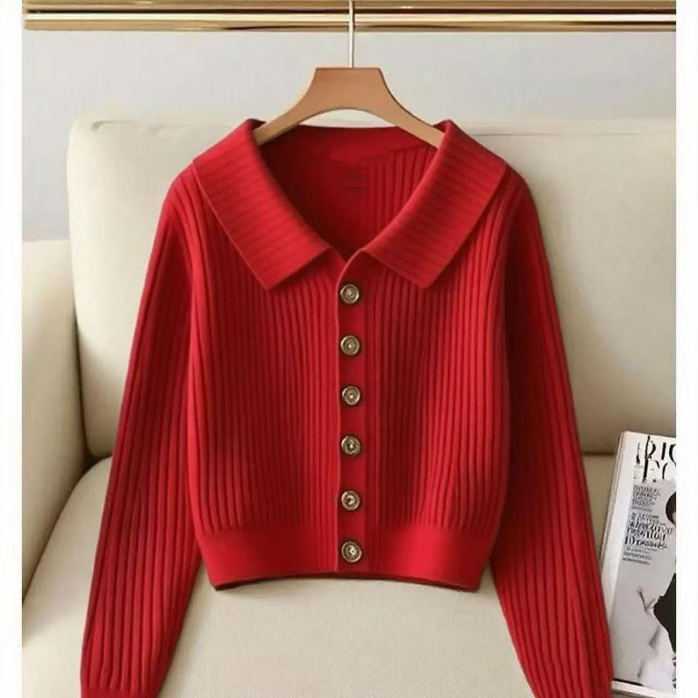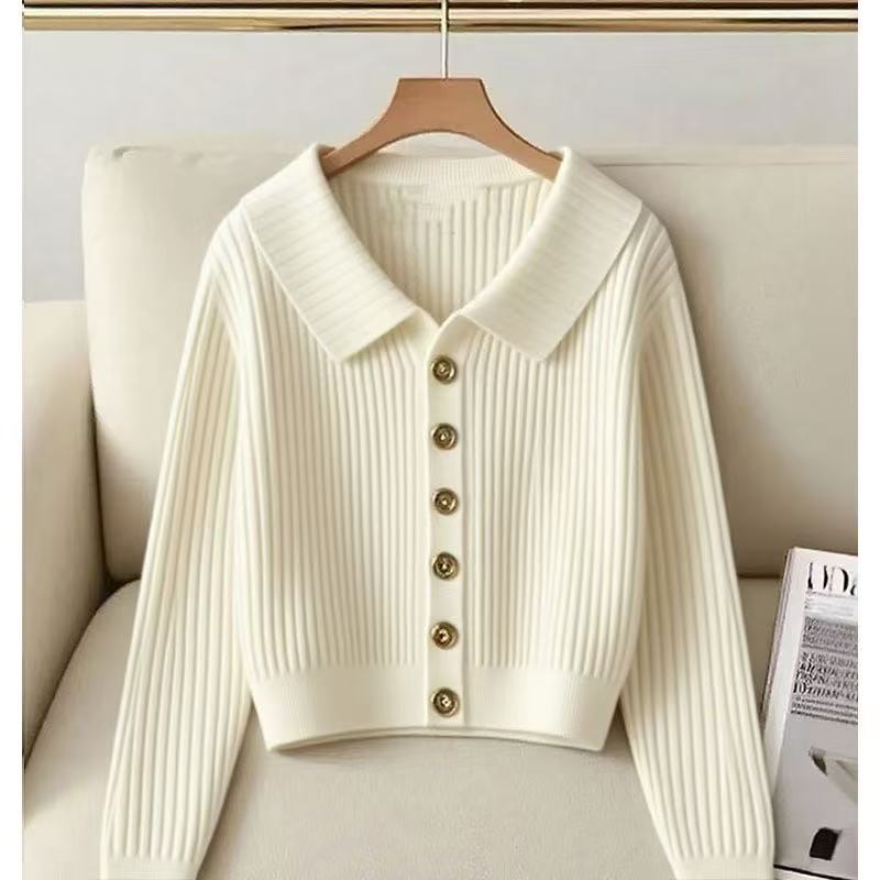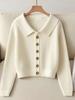 Otoño/Invierno 2025 Nuevo Estilo Suave Inspirado en Chanel Sentido del Diseño Cuello Vuelto Reductor de Edad Manga Larga Cárdigan de Punto para Mujer
