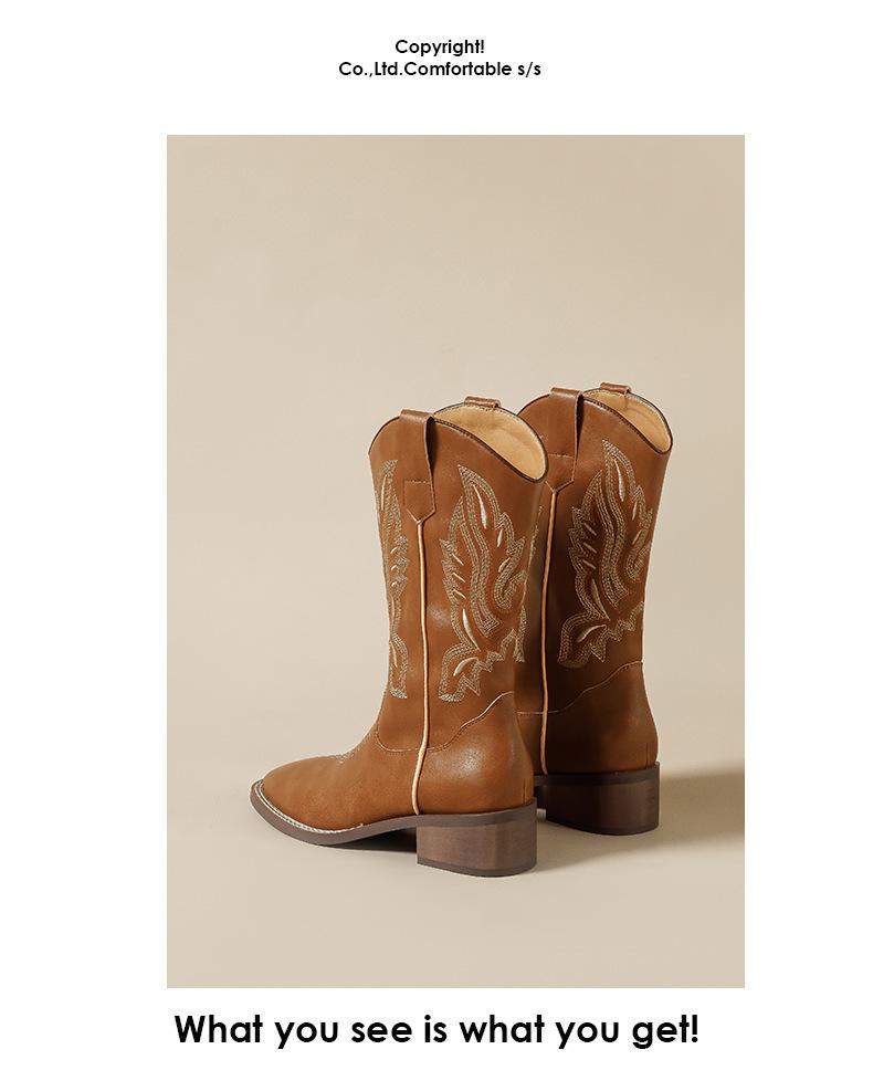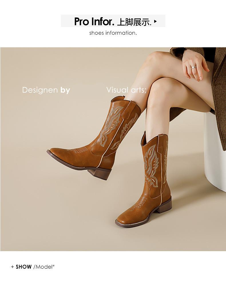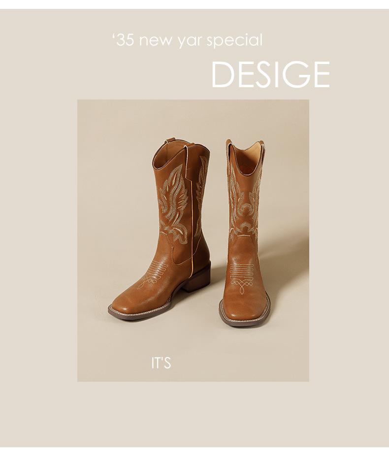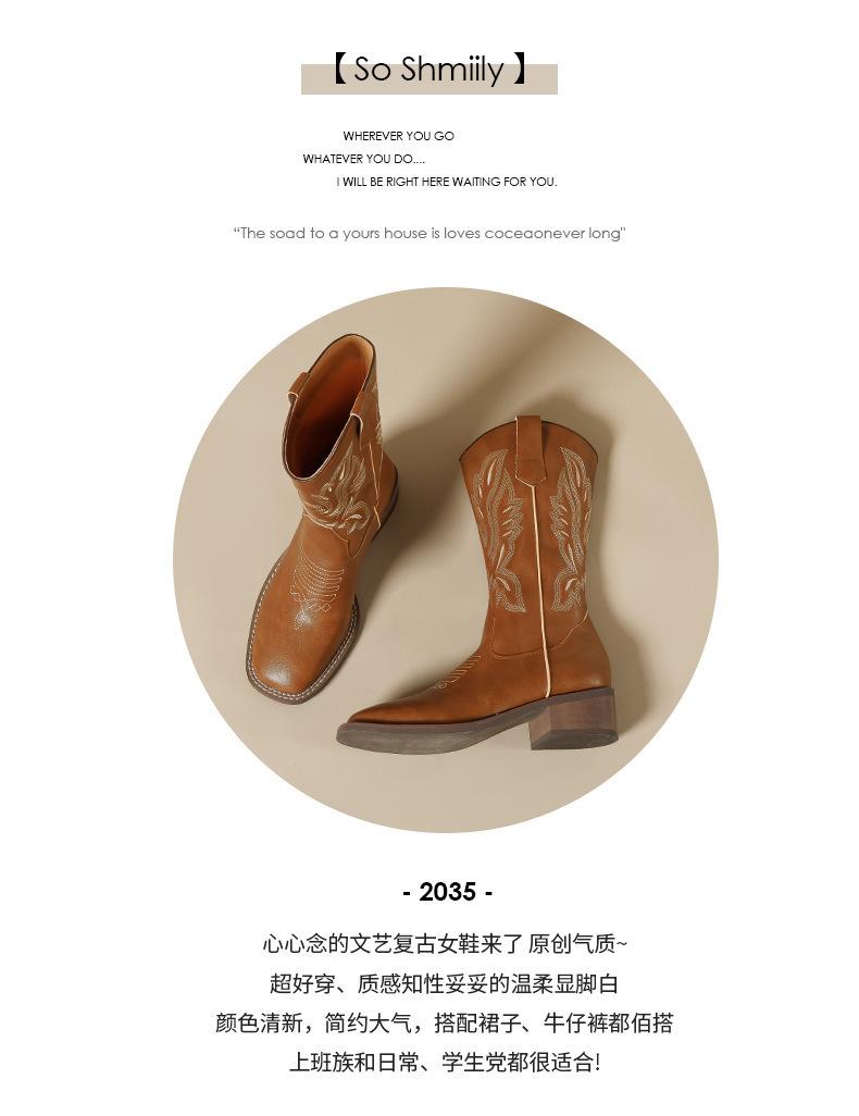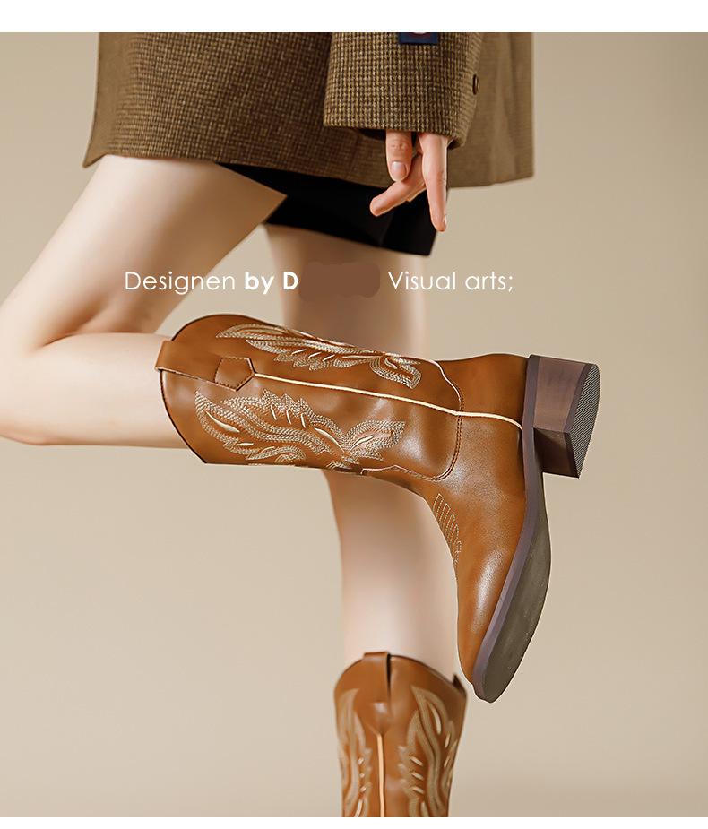 Nuevas Botas Vaqueras Retro de Estilo Británico Transfronterizo Bordado Botas de Caballero Mujer 2025 Millard Otoño Botas Martin
