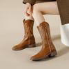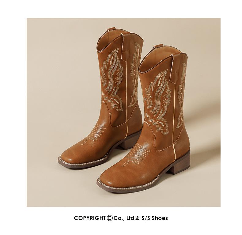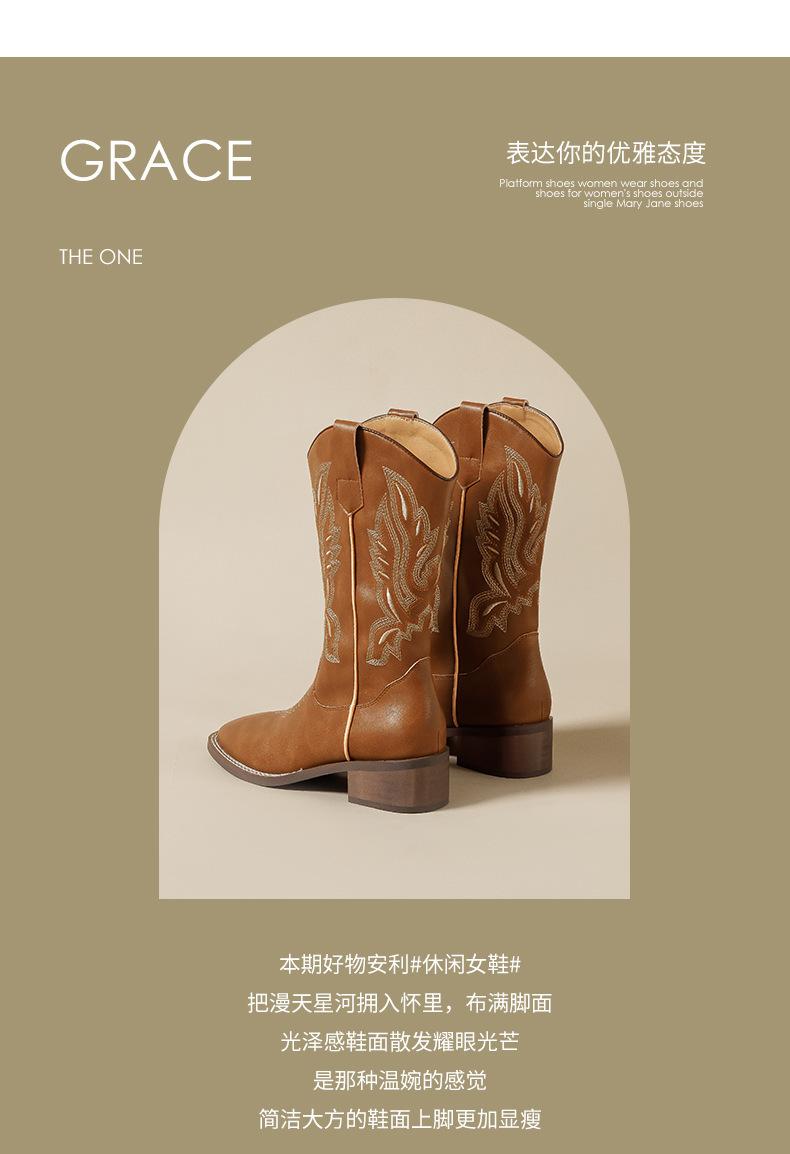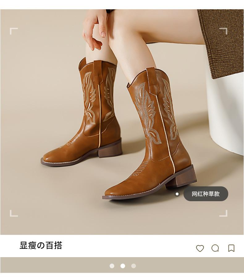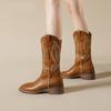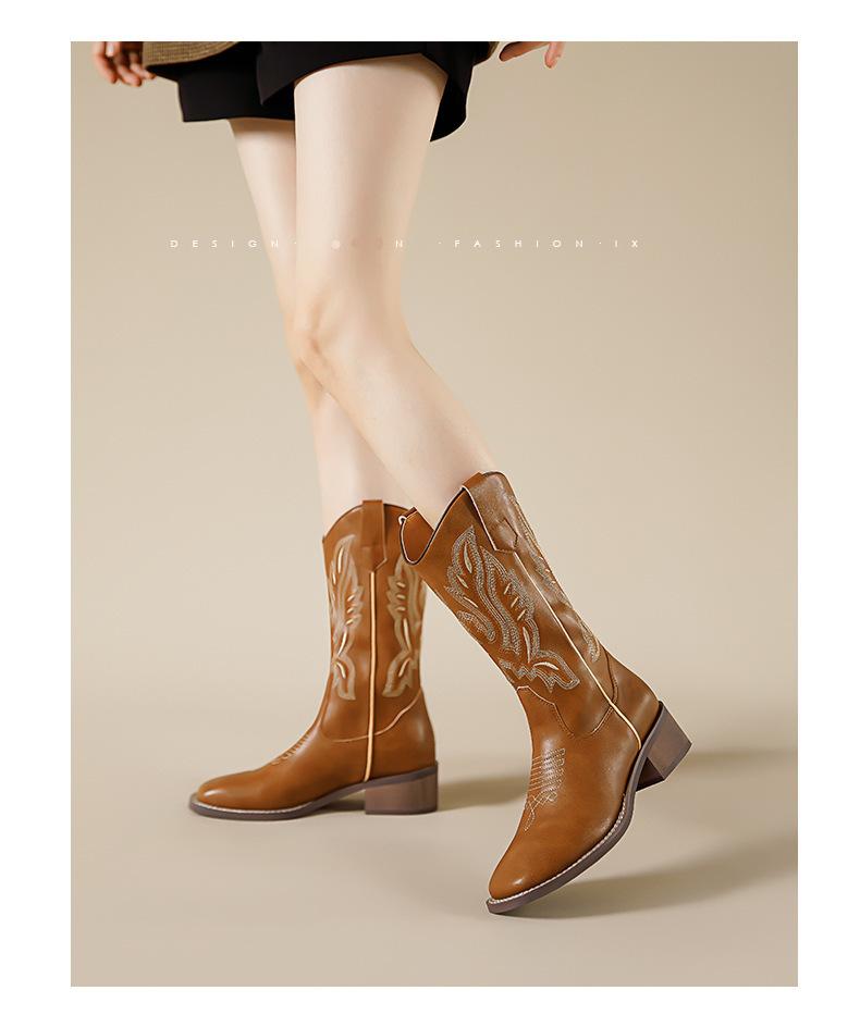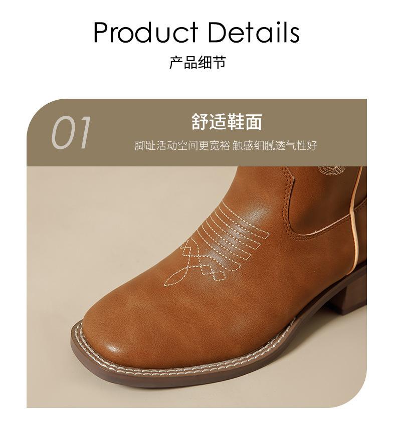 Nuevas Botas Vaqueras Retro de Estilo Británico Transfronterizo Bordado Botas de Caballero Mujer 2025 Millard Otoño Botas Martin