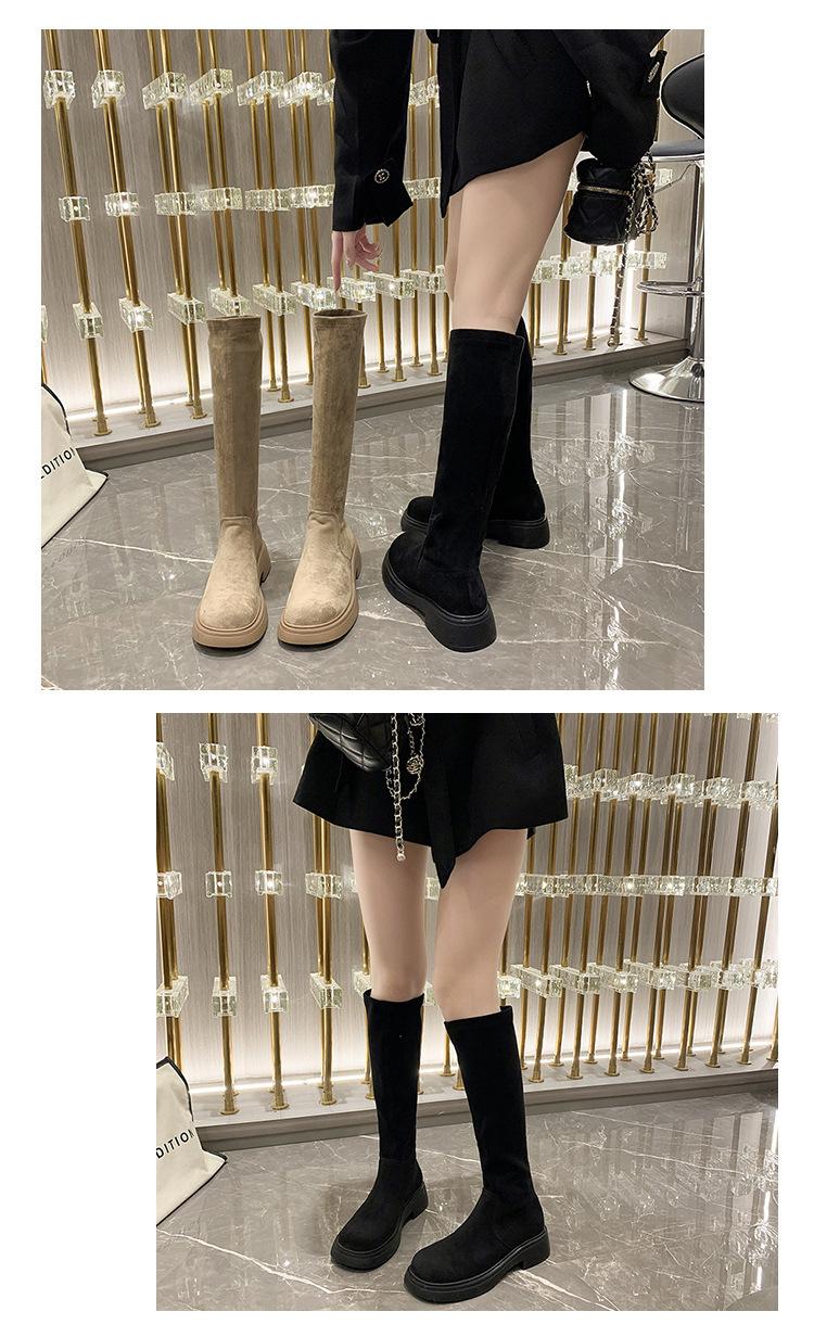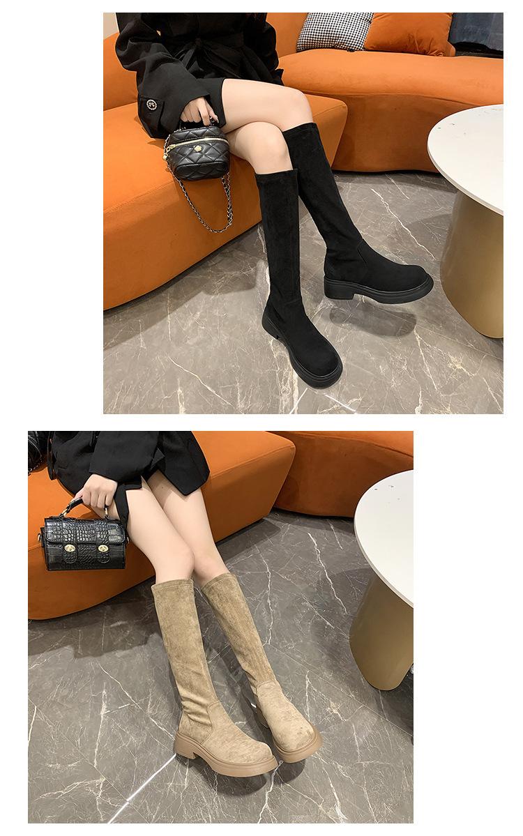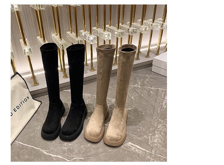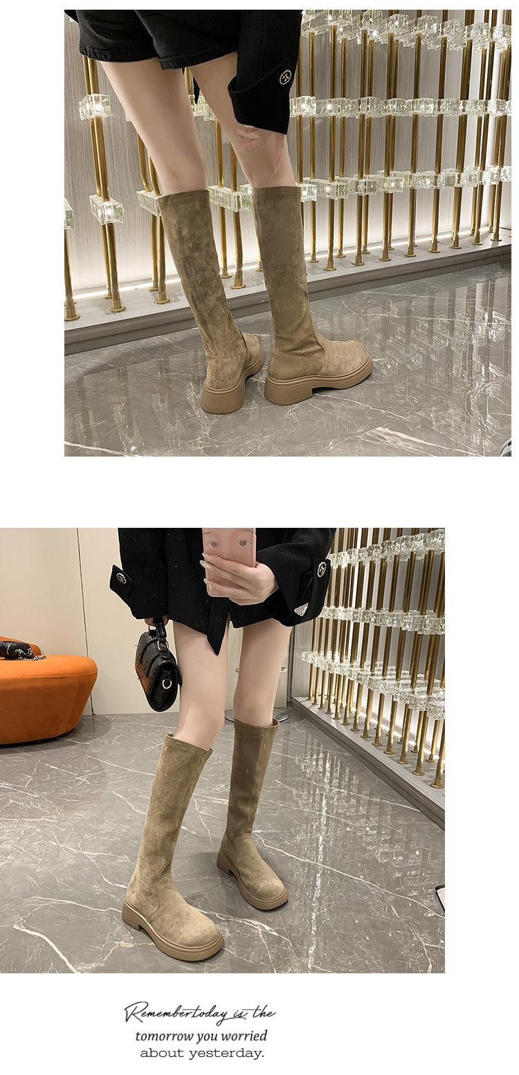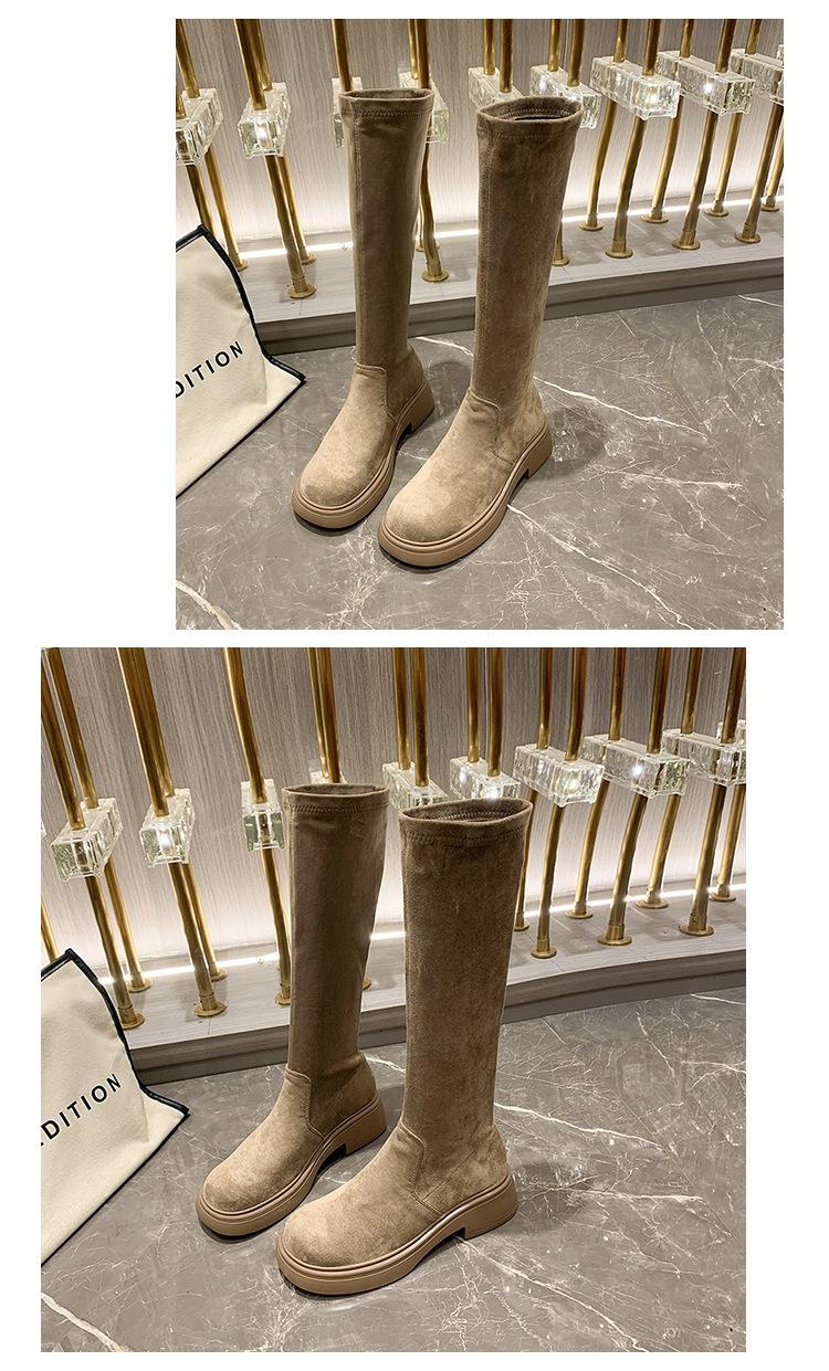 Botas de Gamuza por Encima de la Rodilla 2024 Otoño/Invierno Nueva Moda Versátiles Botas Largas Retro Botas Altas Forradas de Vellón Elásticas Tipo Caballero para Mujer