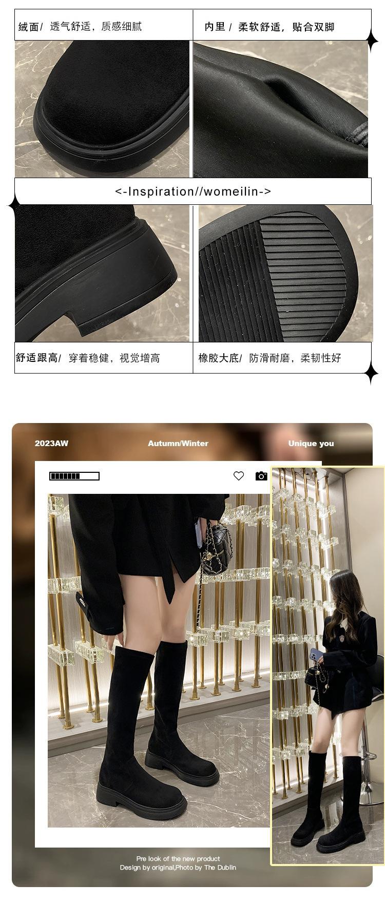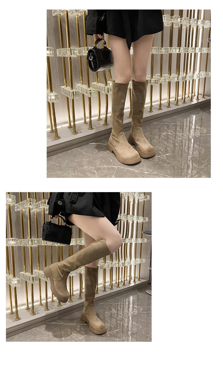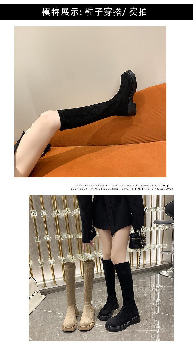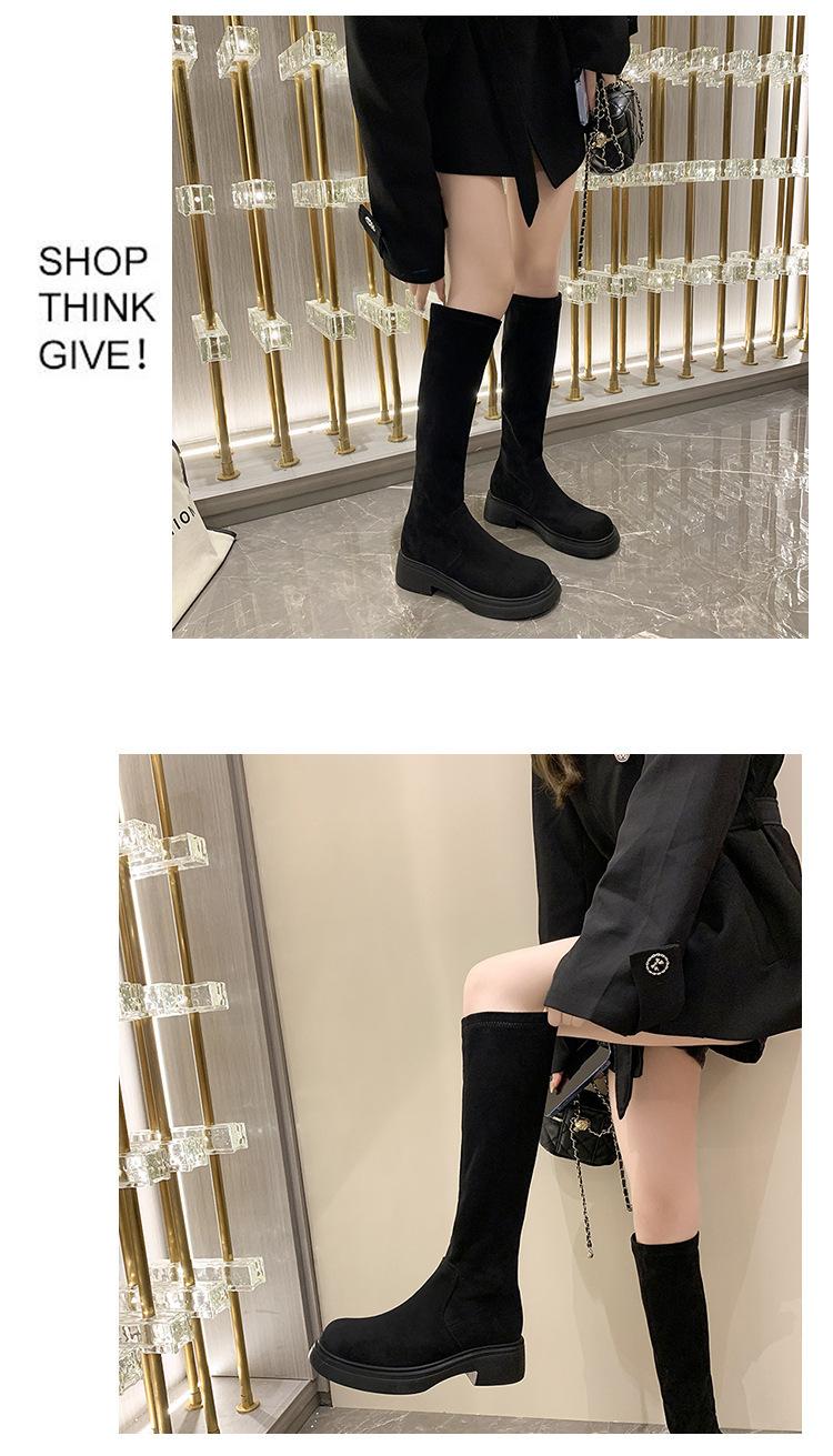 Botas de Gamuza por Encima de la Rodilla 2024 Otoño/Invierno Nueva Moda Versátiles Botas Largas Retro Botas Altas Forradas de Vellón Elásticas Tipo Caballero para Mujer