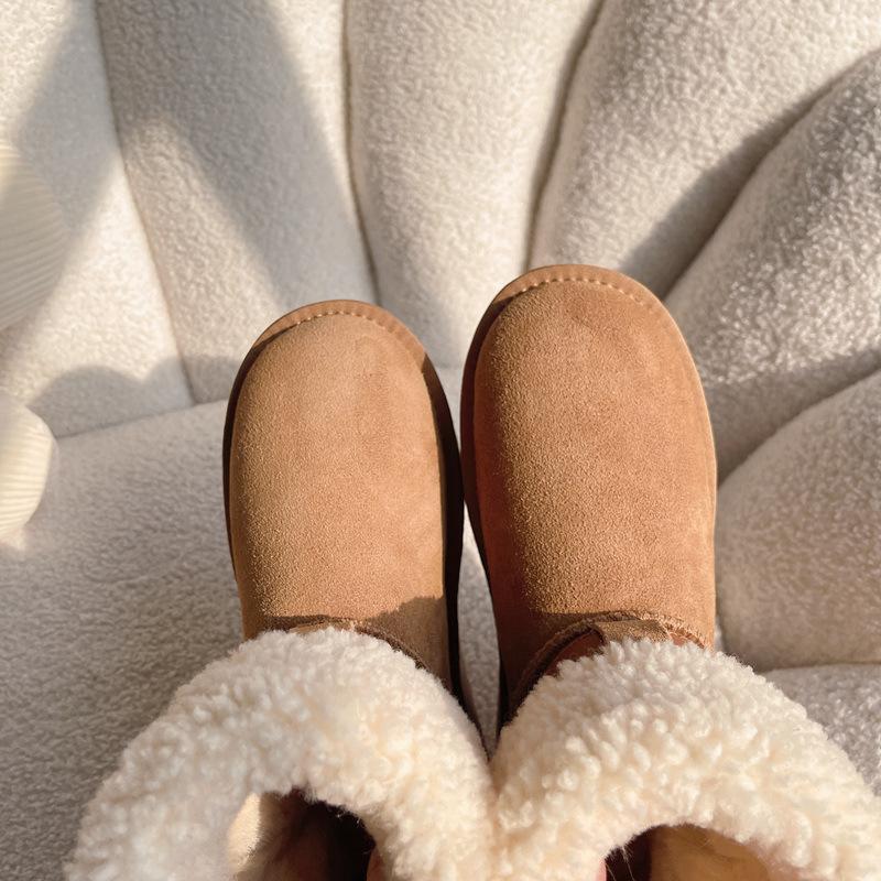 Pedido al por Mayor Invierno Nuevo Botas de Caballero de Suela Gruesa Hebilla de Cinturón Piel de Lana Rizada Una Pieza Botas de Nieve Espesor Medio-Becerro