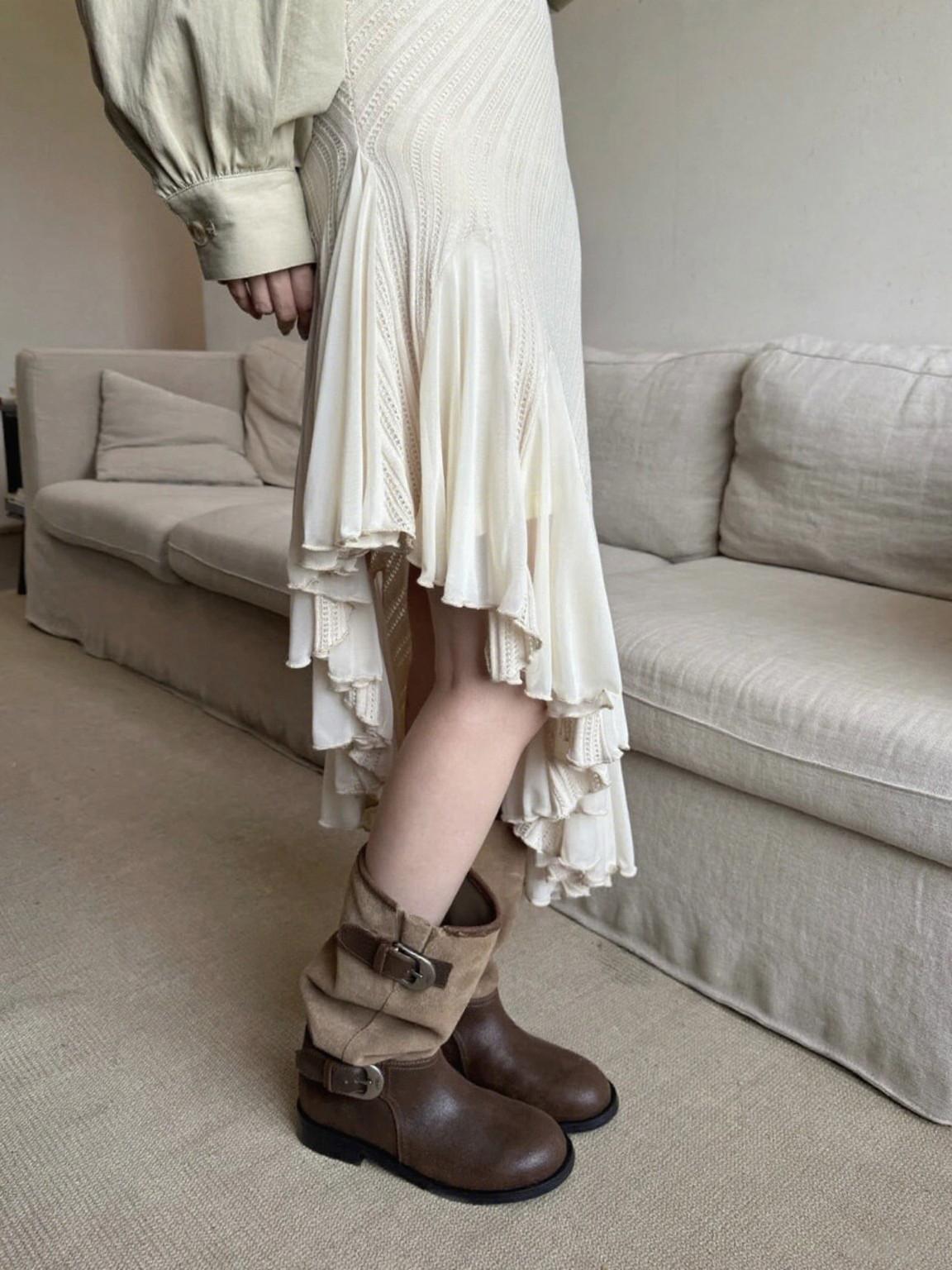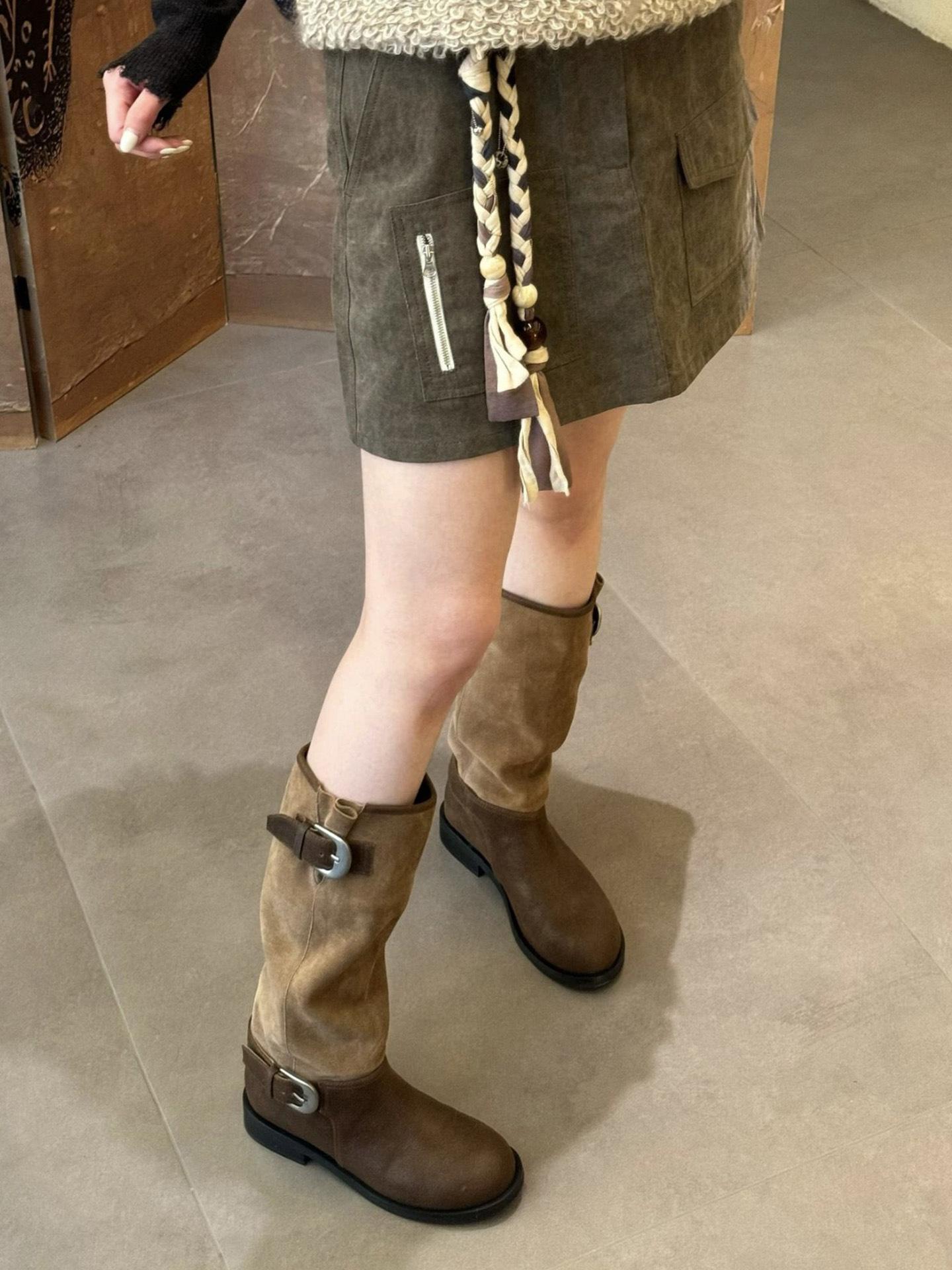 Botas de plataforma mujer 2025 otoño e invierno nuevas retro versátiles hebilla botas largas media pantorrilla botas largas tacón grueso botas de caballero