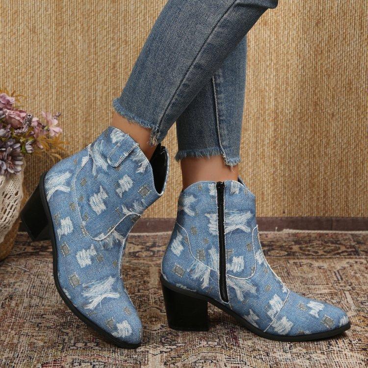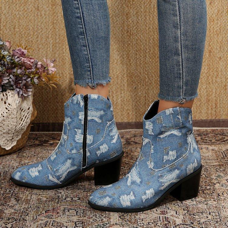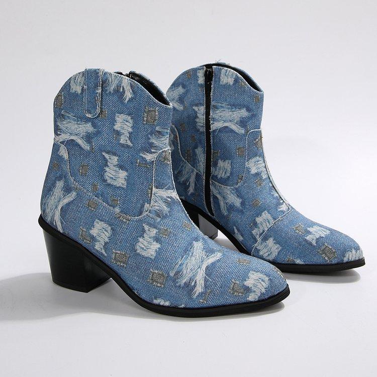 2025 Nuevo Estilo Transfronterizo Comercio Exterior Talla Grande Cómodas Botas Vaqueras Europeas y Americanas Venta al por Mayor Zapatos de Mujer Botas Martin