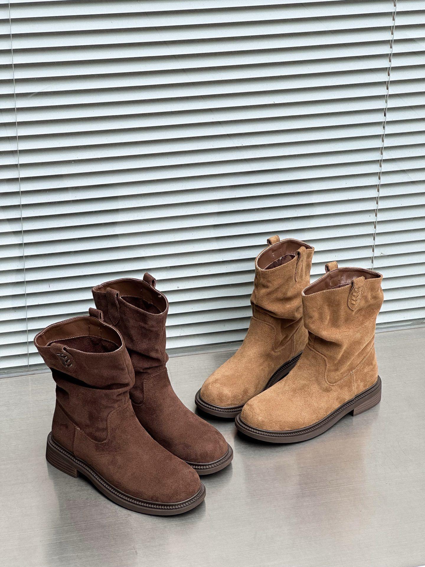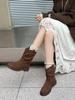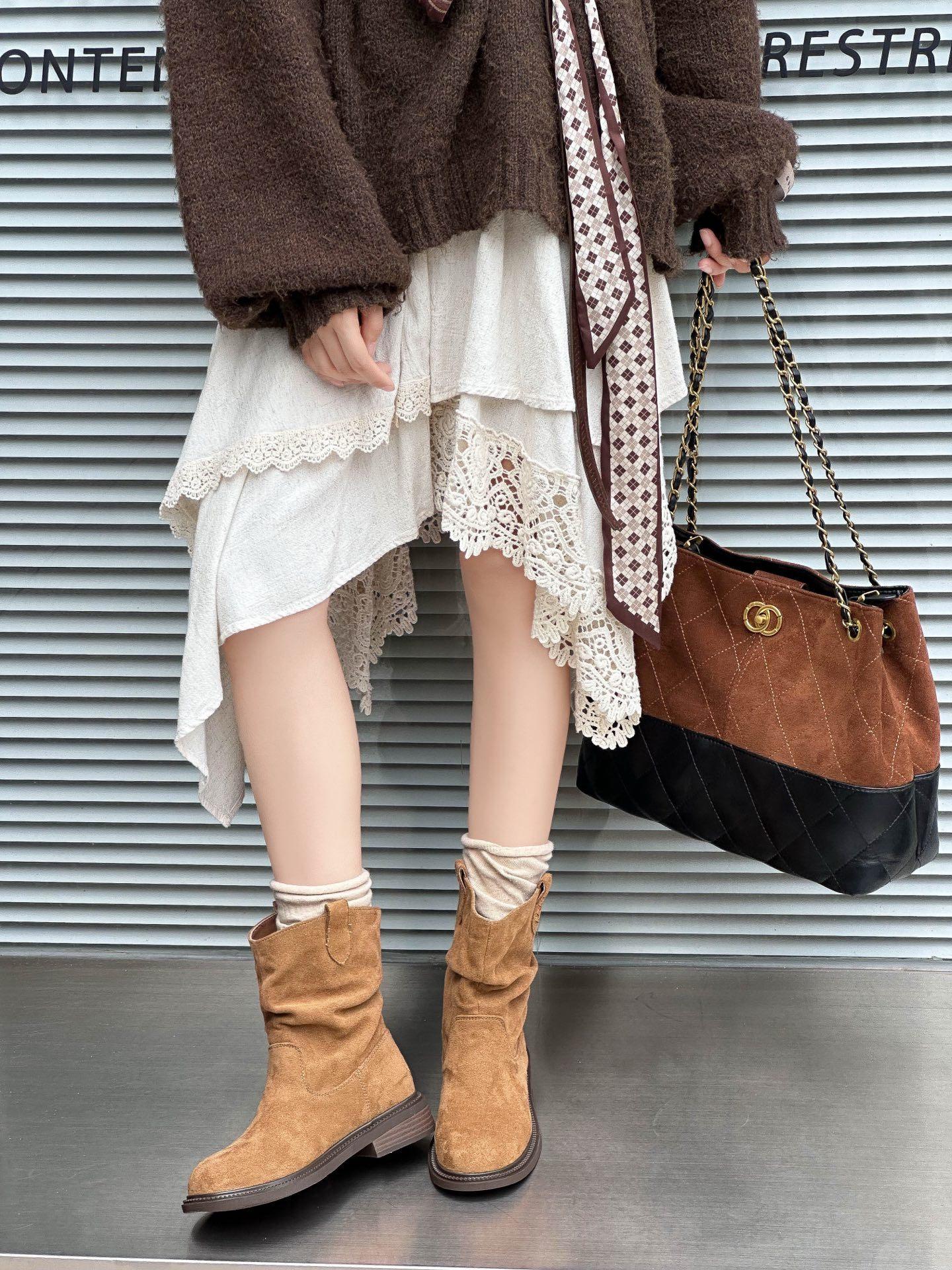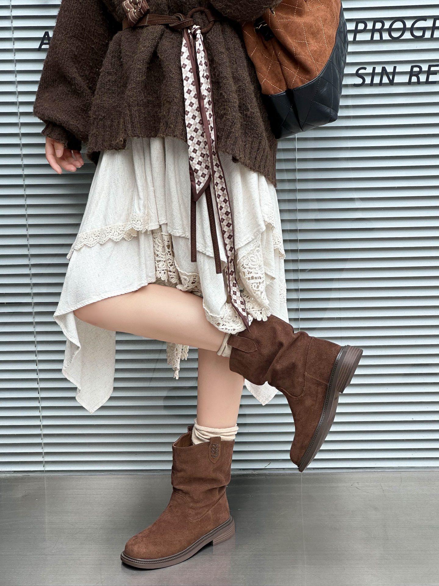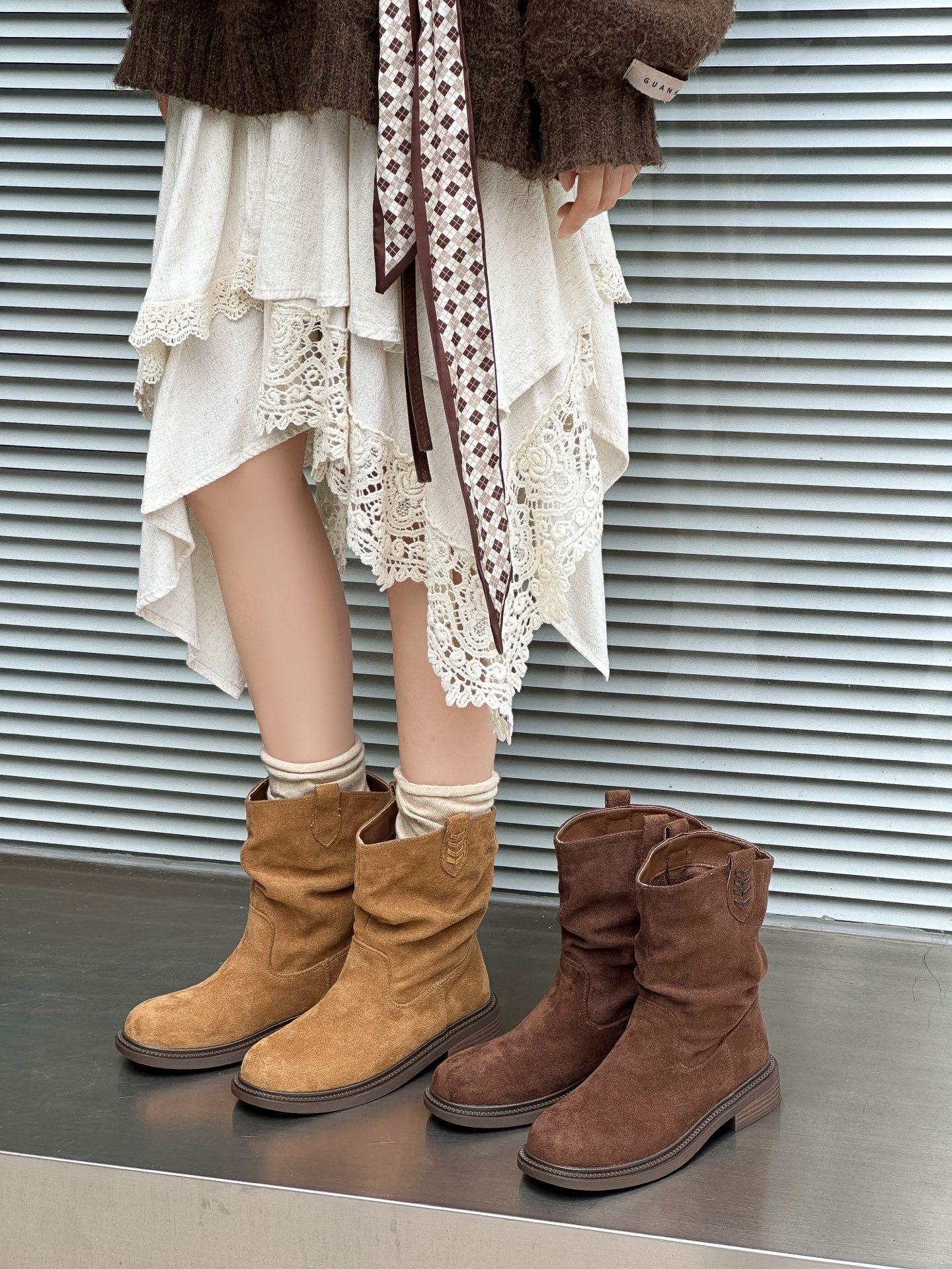Botas Martin Meilaide para mujer 2025 otoño nuevas supercalientes de media caña con suela gruesa vaqueras occidentales botines arrugados de caballero
