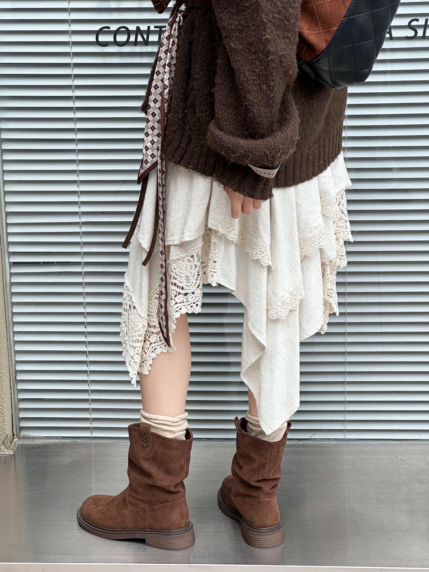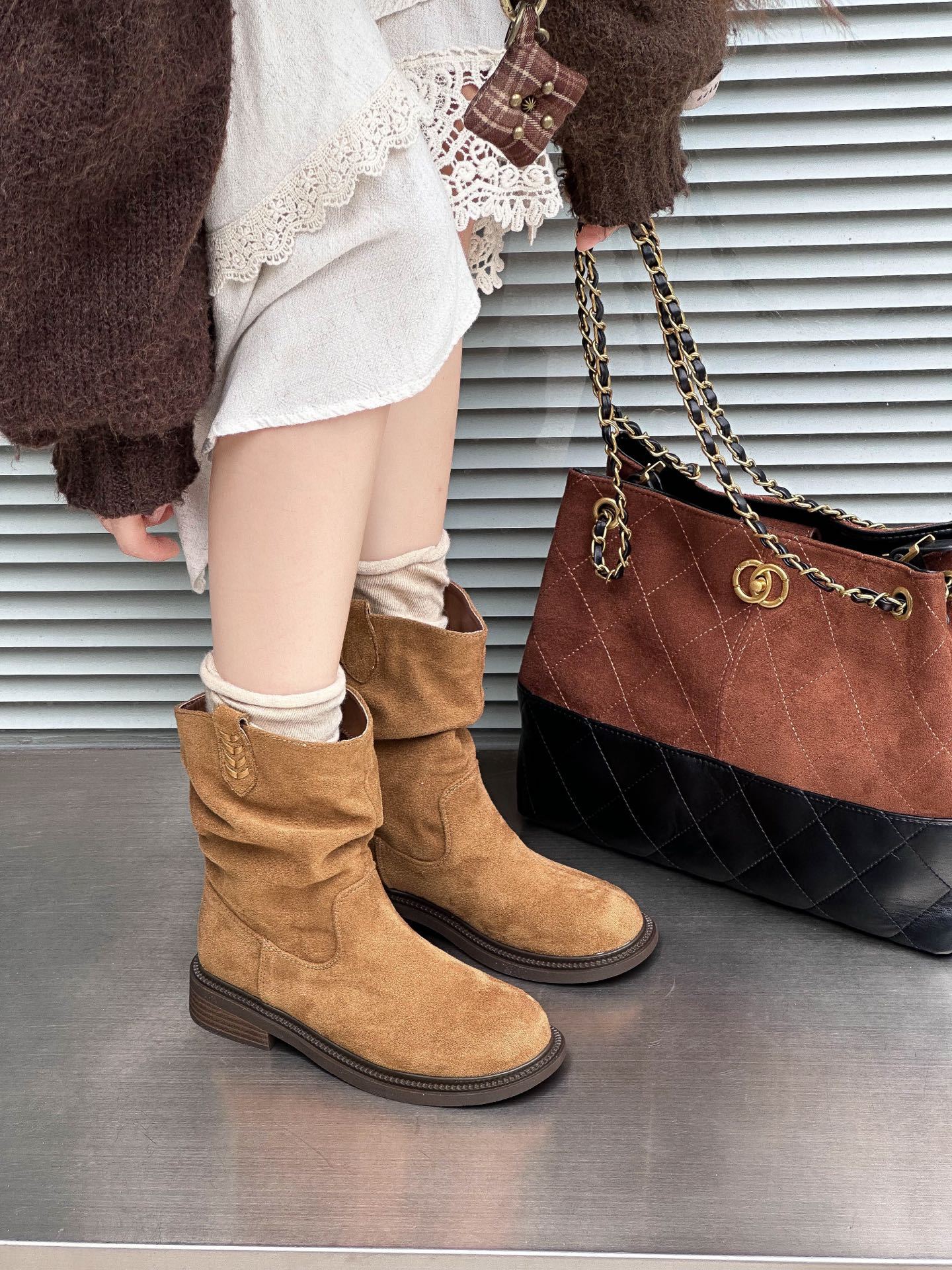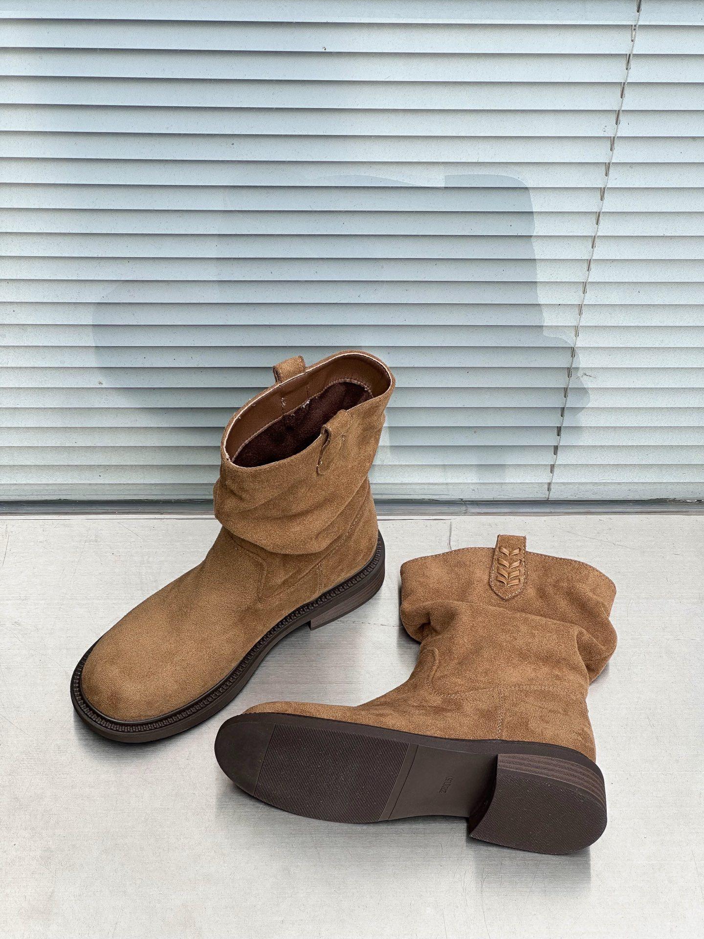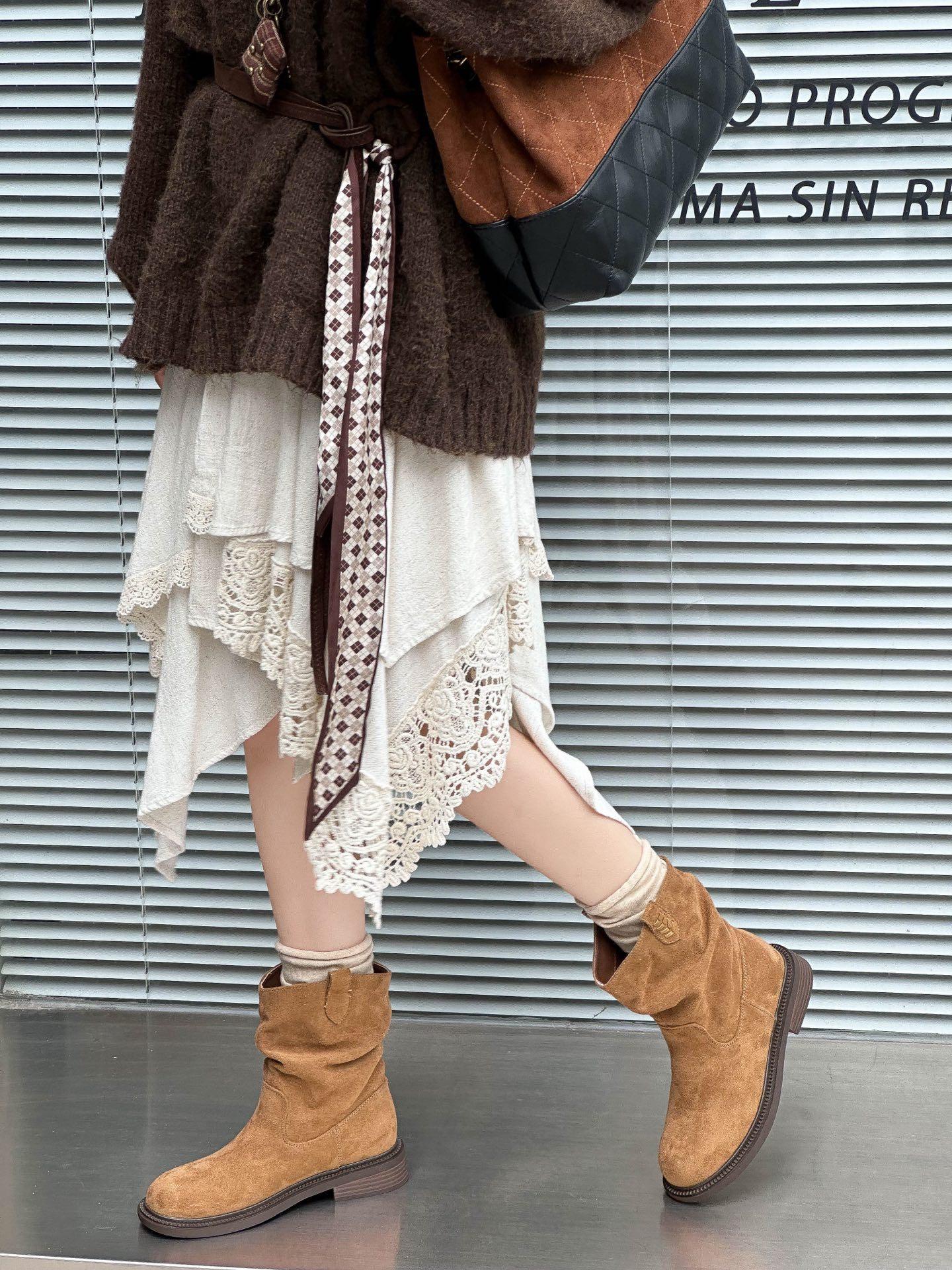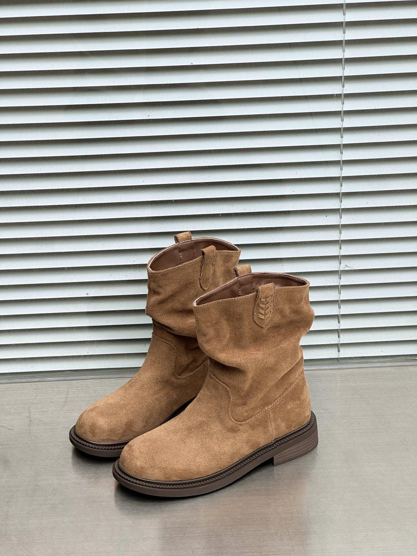 Botas Martin Meilaide para mujer 2025 otoño nuevas supercalientes de media caña con suela gruesa vaqueras occidentales botines arrugados de caballero